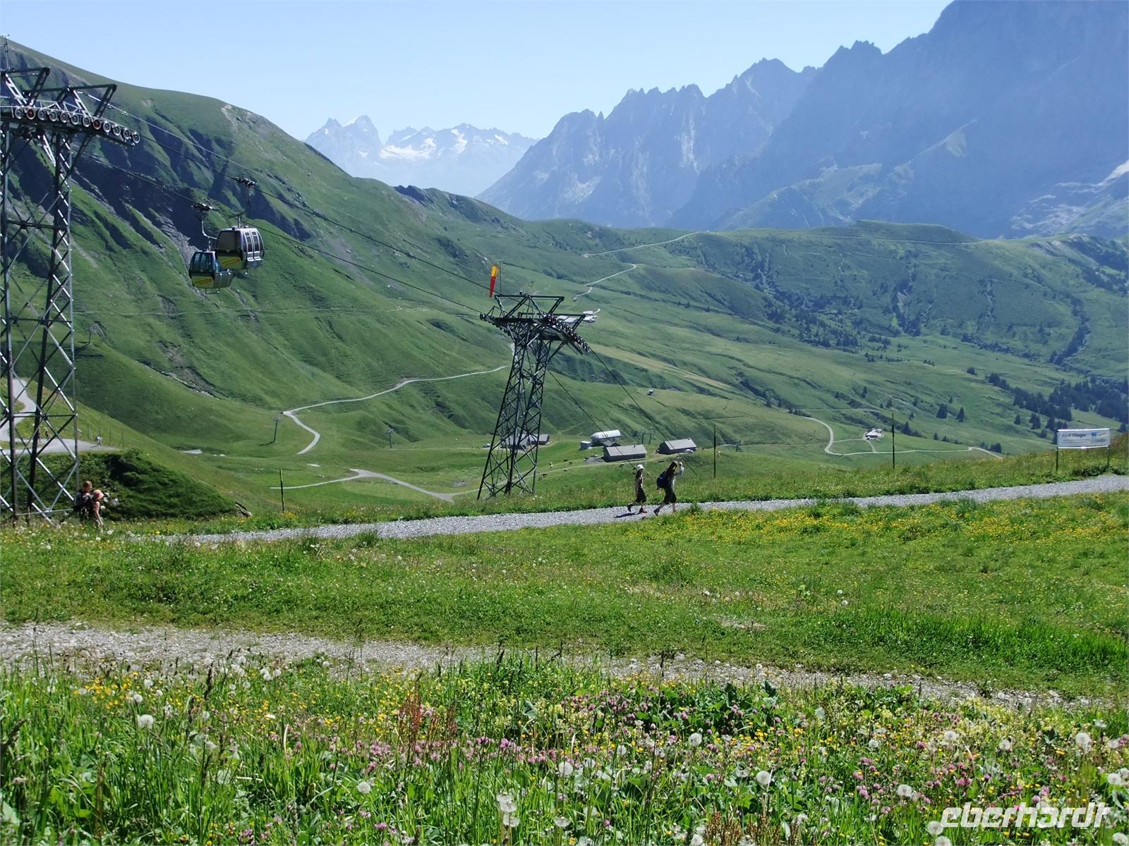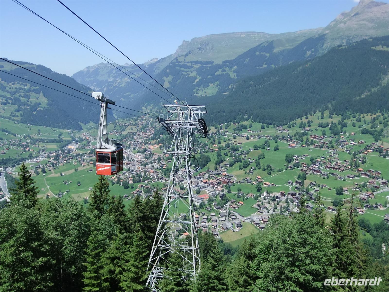Grindelwald steht heute auf unserem Ausflugsprogramm. Zug und Bus bringen uns in diesen bekannten Ort, wo der Fremdenverkehr eine lange Tradition hat. Nach einem kleinen Spaziergang durchs Zentrum fahren wir mit der Gondelbahn hinauf auf den 2168 m hohen First.