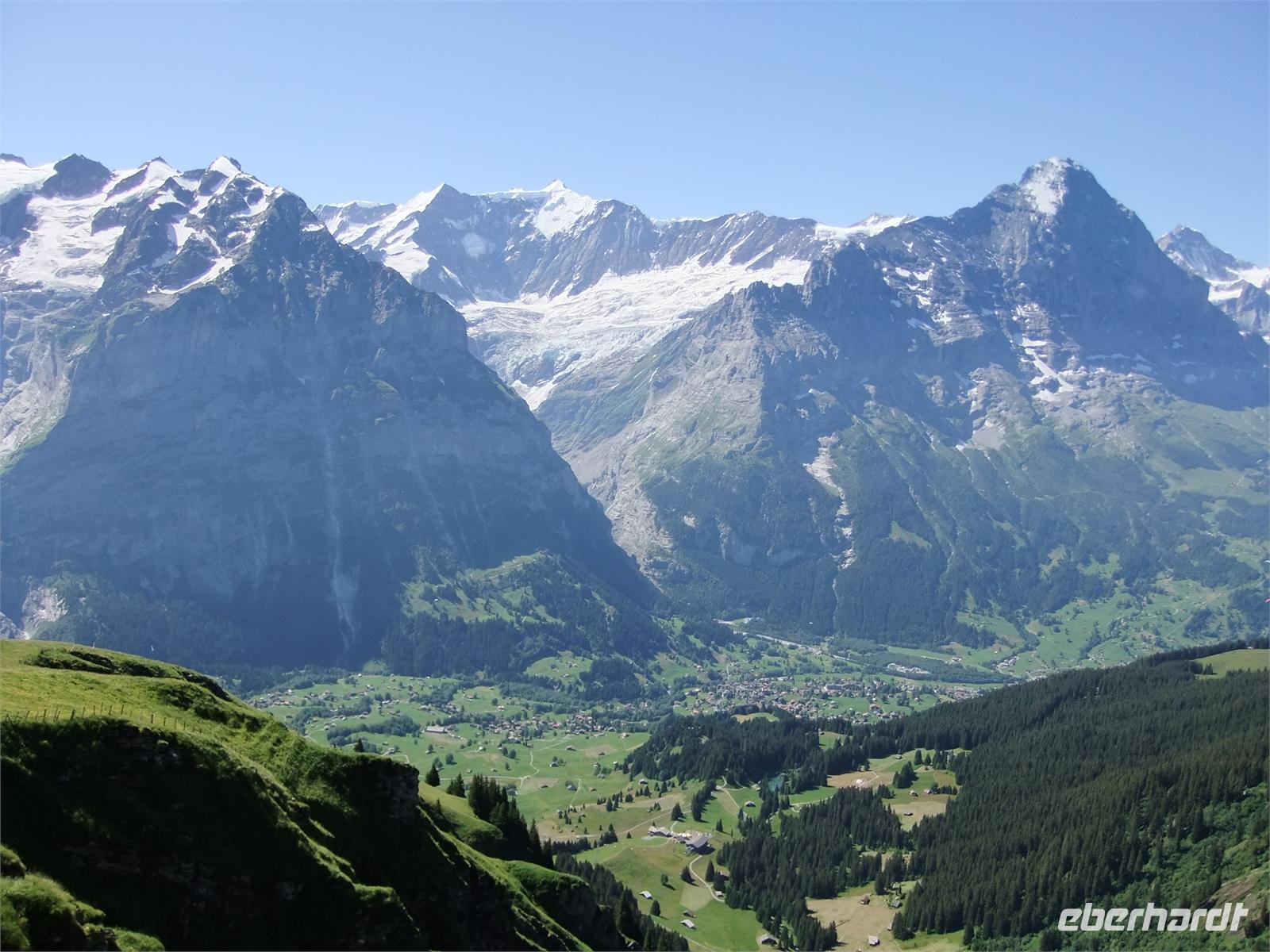 Der Ort liegt auf einer windgeschützten Sonnenterrasse in 1275 m Höhe und wird überragt von den gewaltigen Bergmassiven Eiger, Mönch und Jungfrau. Im Hotel "Silberhorn" werden wir bereits zum Abendessen, einem schmackhaften 5-Gang-Menü, erwartet.