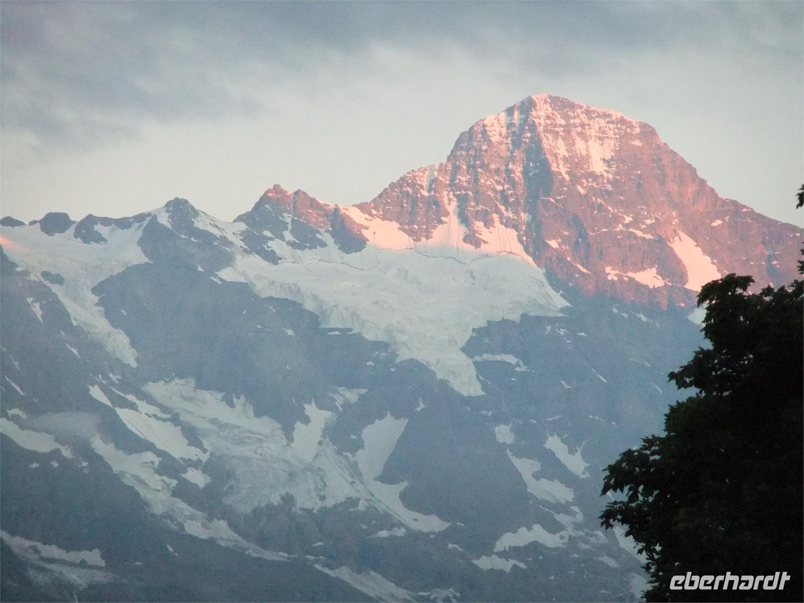 Vom Gipfel schauen wir auf eine Bergkulisse mit Wetterhorn, Schreckhorn, Eiger, Mönch und Jungfrau. Wieder in Grindelwald angekommen, fahre ich mit einigen Gästen noch mit der Luftseilbahn zum Pfingstegg. Von der Terrasse des Berghotels reicht der Blick weit ins Grindelwaldtal. Andere Gäste besuchen die wildromantische Gletscherschlucht am uneren Grindelwaldgletscher. Über Stege, durch Felsgalerien und Tunnel kann man ca. einen Kilometer ins Innere der Schlucht vordringen. Mit vielen neuen Eindrücken gehts zurück zum Hotel.