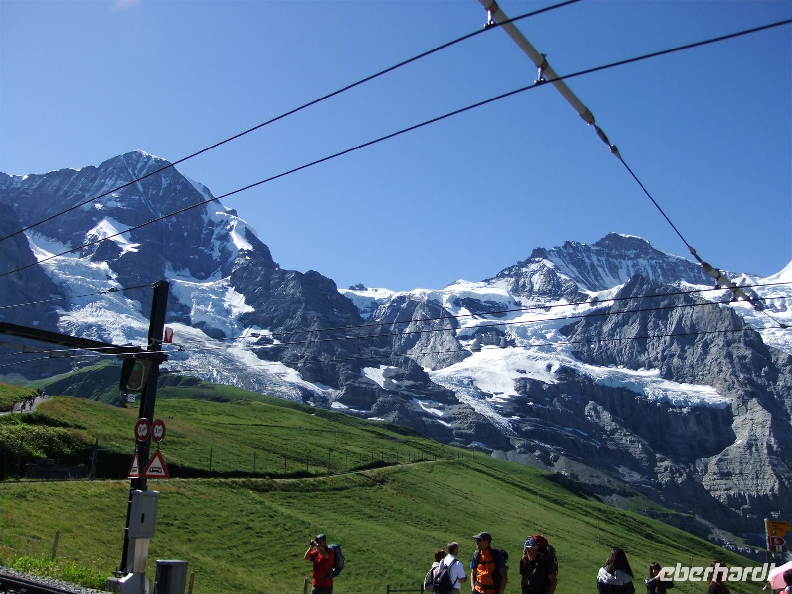 Heute soll's hoch hinauf gehen: das Jungfraujoch ist unser Ziel. Dazu fahren wir zuerst mit dem Zug auf die Kleine Scheidegg direkt am Fuße der weltberühmten Eigernordwand. Mit der Jungfraubahn geht es dann durch den Eiger zur höchstgelegenen Bahnstation Europas auf dem 3454 m hohen Jungfraujoch.