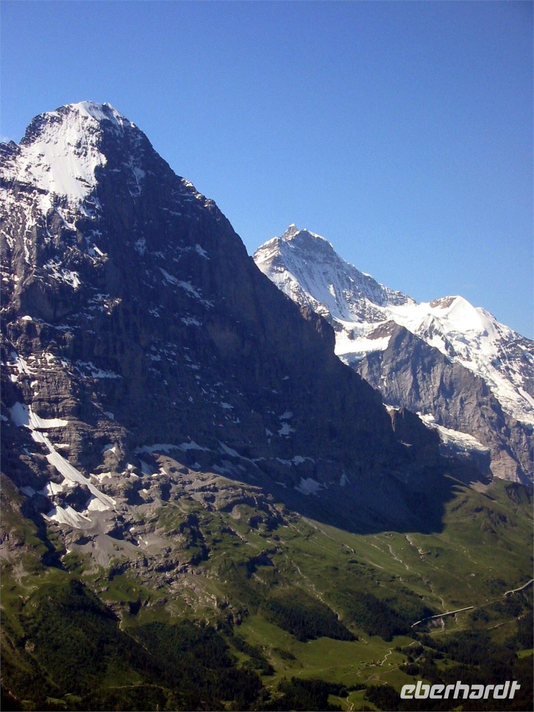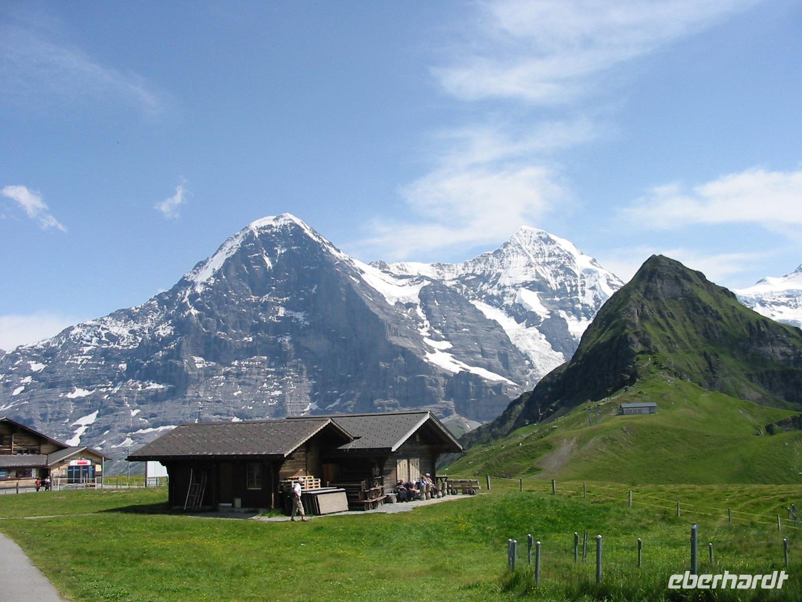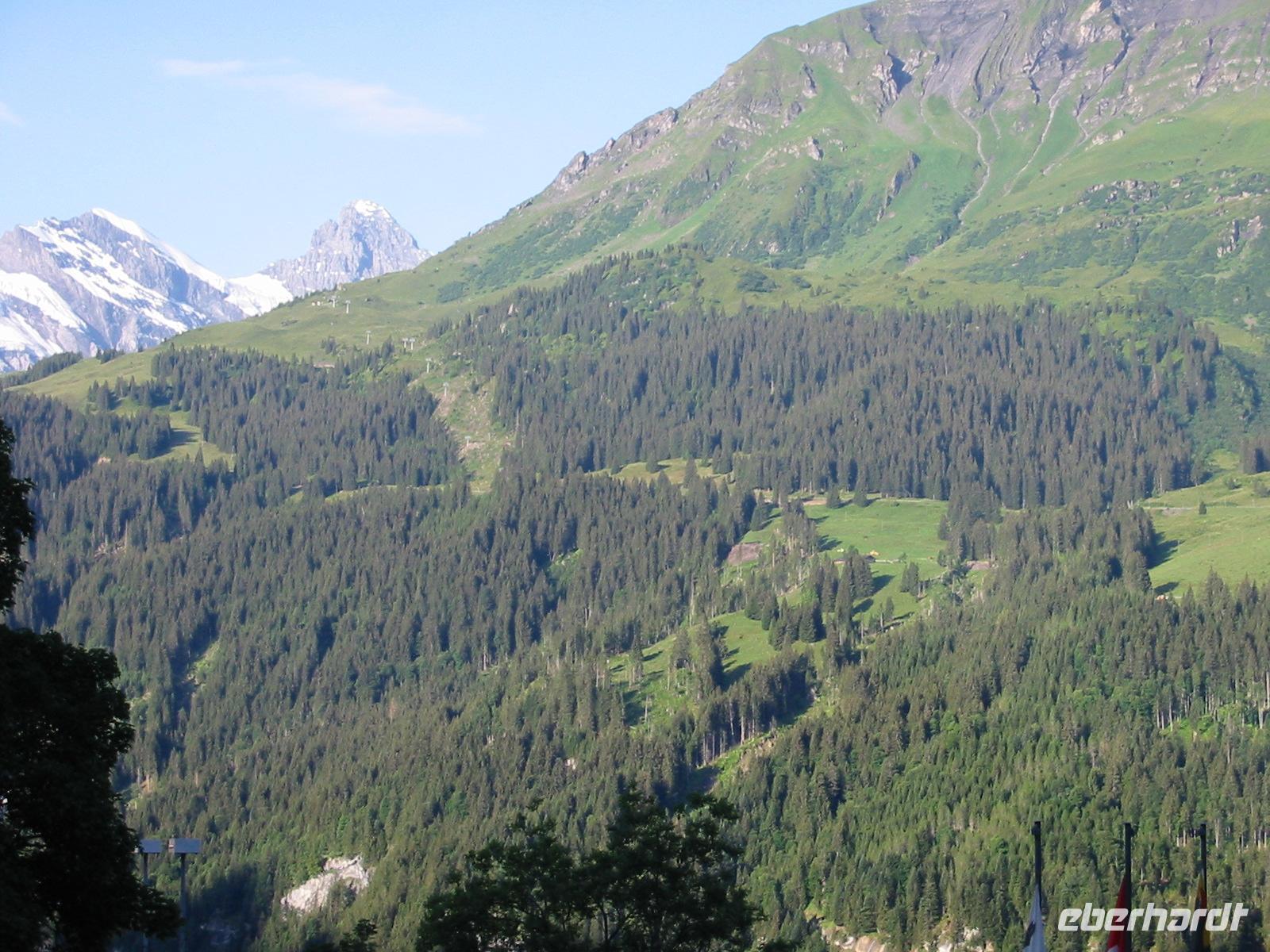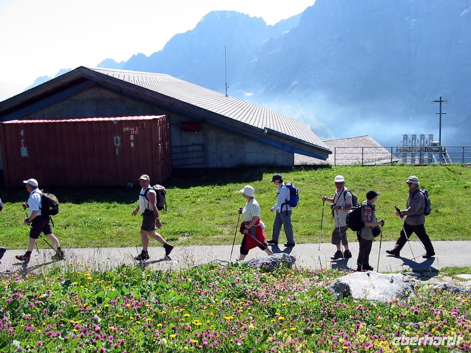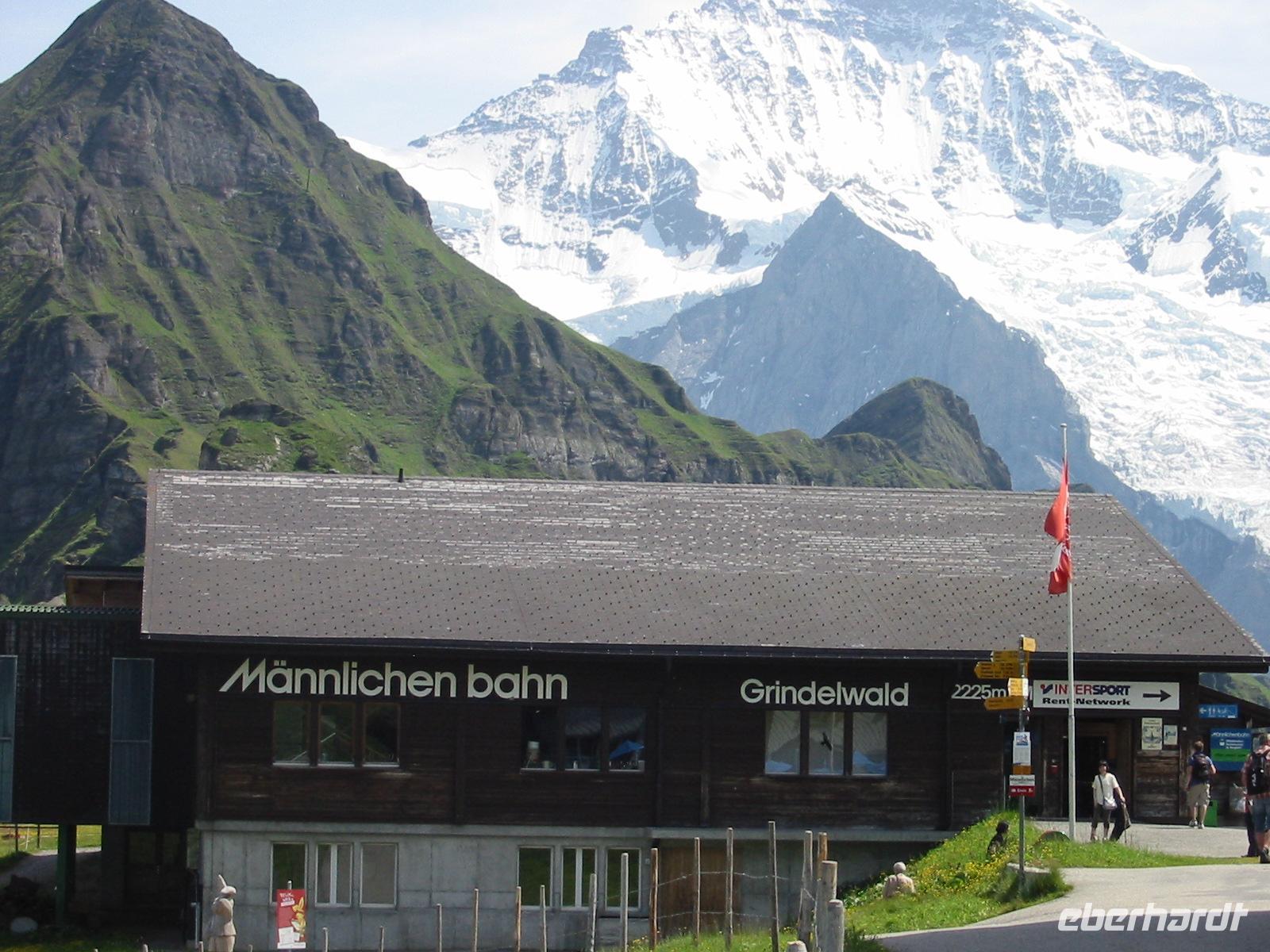 Hier oben verließ uns die Wandergruppe. Ihr Ziel war der Bachalpsee. Die meisten von uns wanderten entweder zur Kleinen Scheidegg oder fuhren wieder mit der Bahn nach Grindelwald. Um von hier weitere Ziele anzusteuern. So fuhren einige Gäste auf die Pfingstegg oder mit der längsten Gondelbahn Europas auf den 2227 m hoch gelegenen Männlichen. Von der Bergstation hat man eine sensationelle Aussicht auf Eiger, Mönch und Jungfrau, außerdem kann man von hier aus Wengen und Grindelwald sehen. Anschließend fährt die Luftseilbahn zurück nach Wengen.