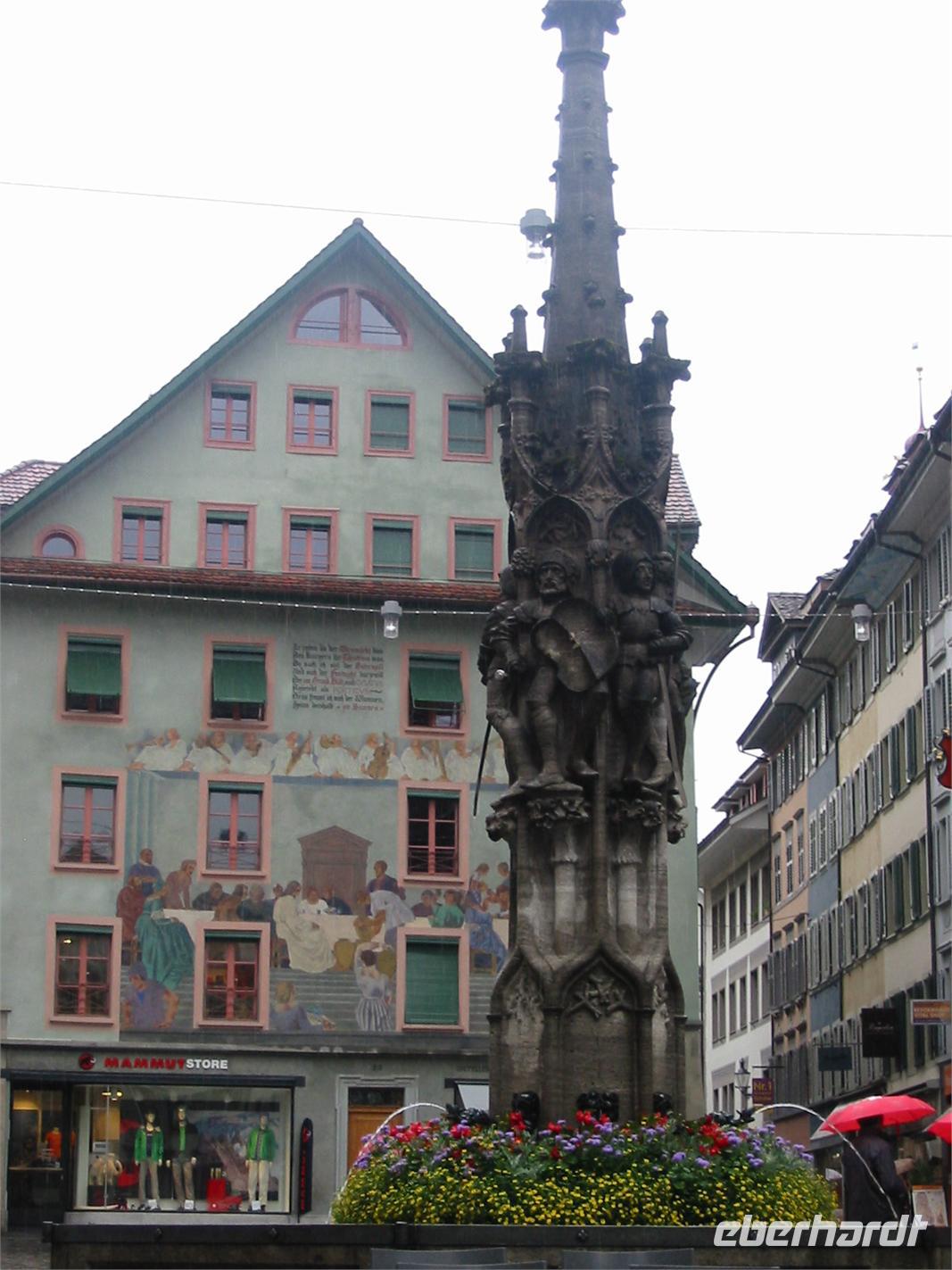 Weiter ging es in die Altstadt. Die wichtigsten Sehenswürdigkeiten sind sicherlich das Rathaus am Rathausplatz, die Brunnen am Kappellplatz und auf dem Kornmarkt. Alte, schön bemalte Häuser finden sich überall in der Altstadt.