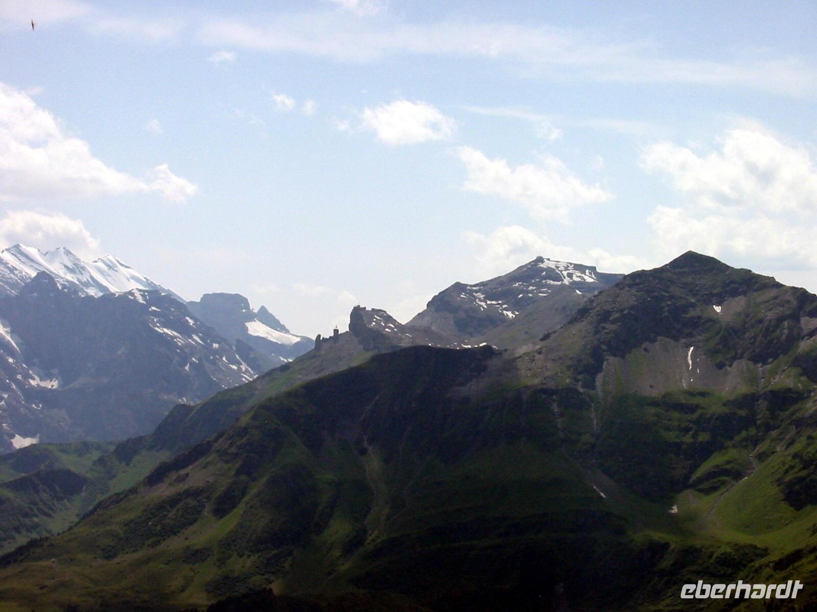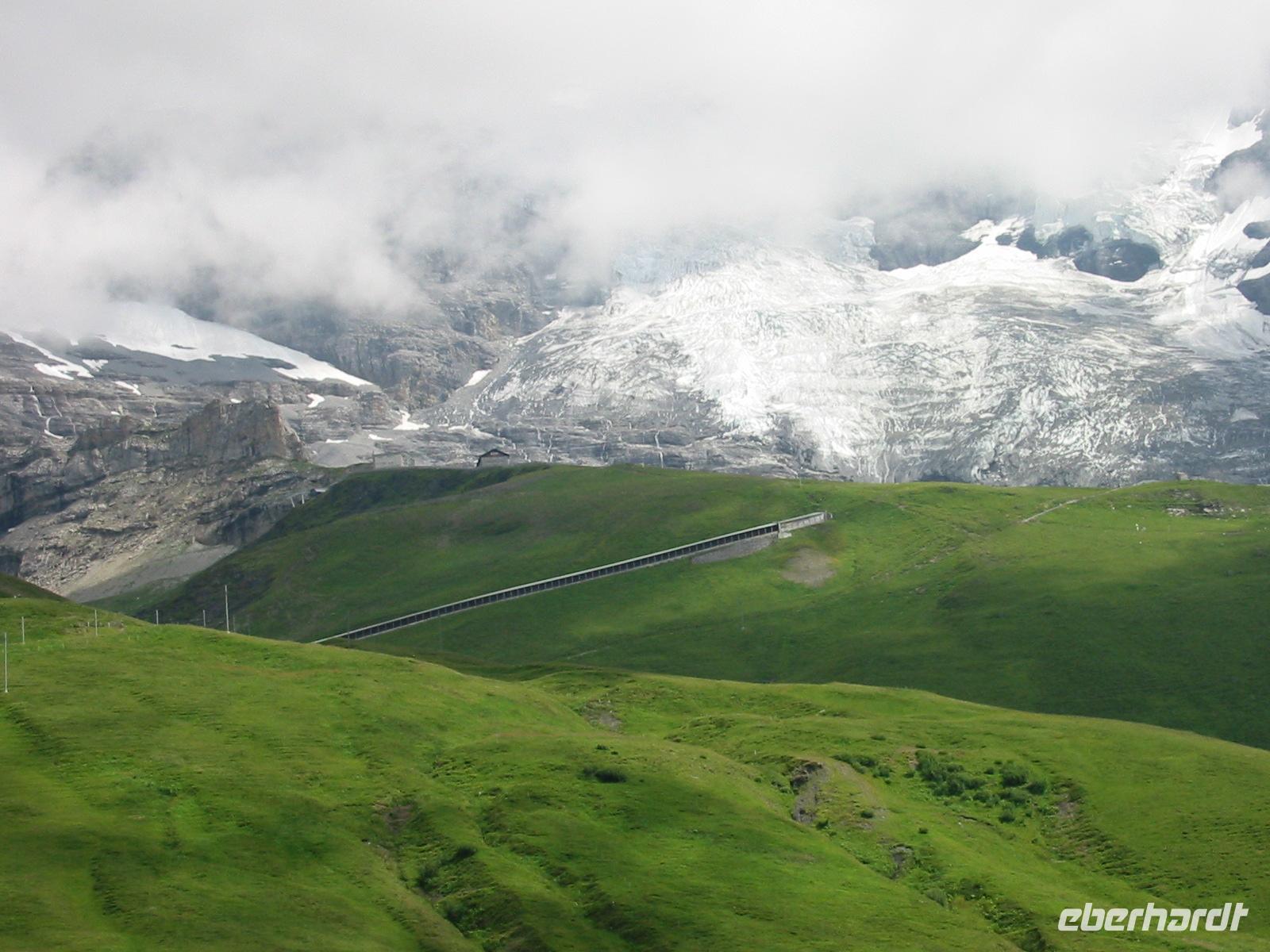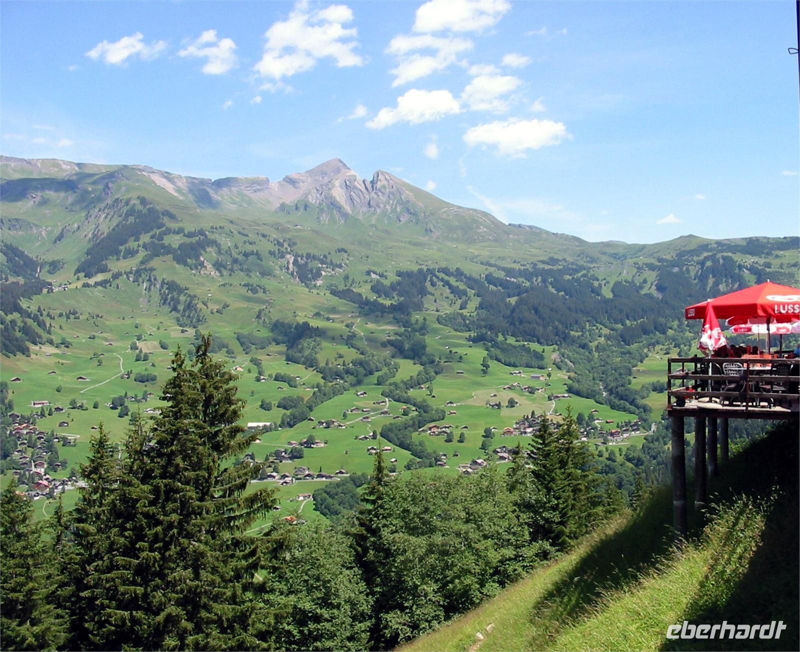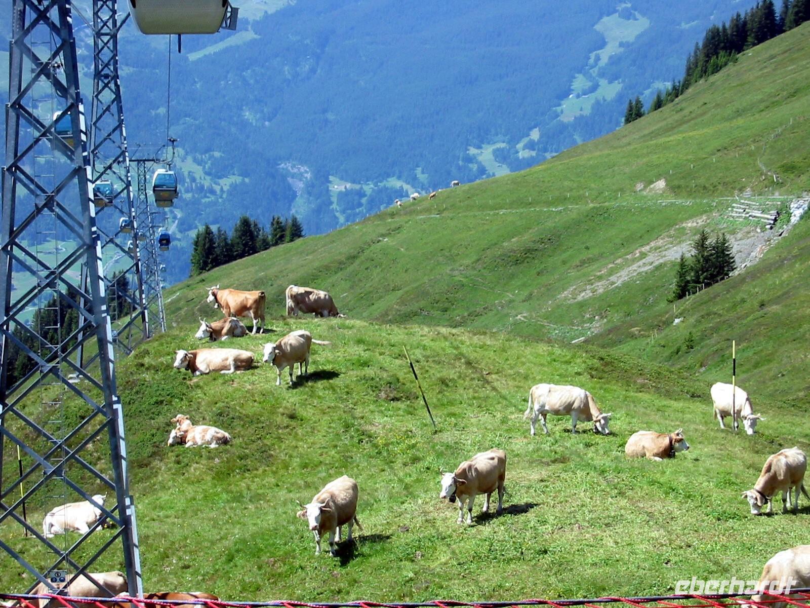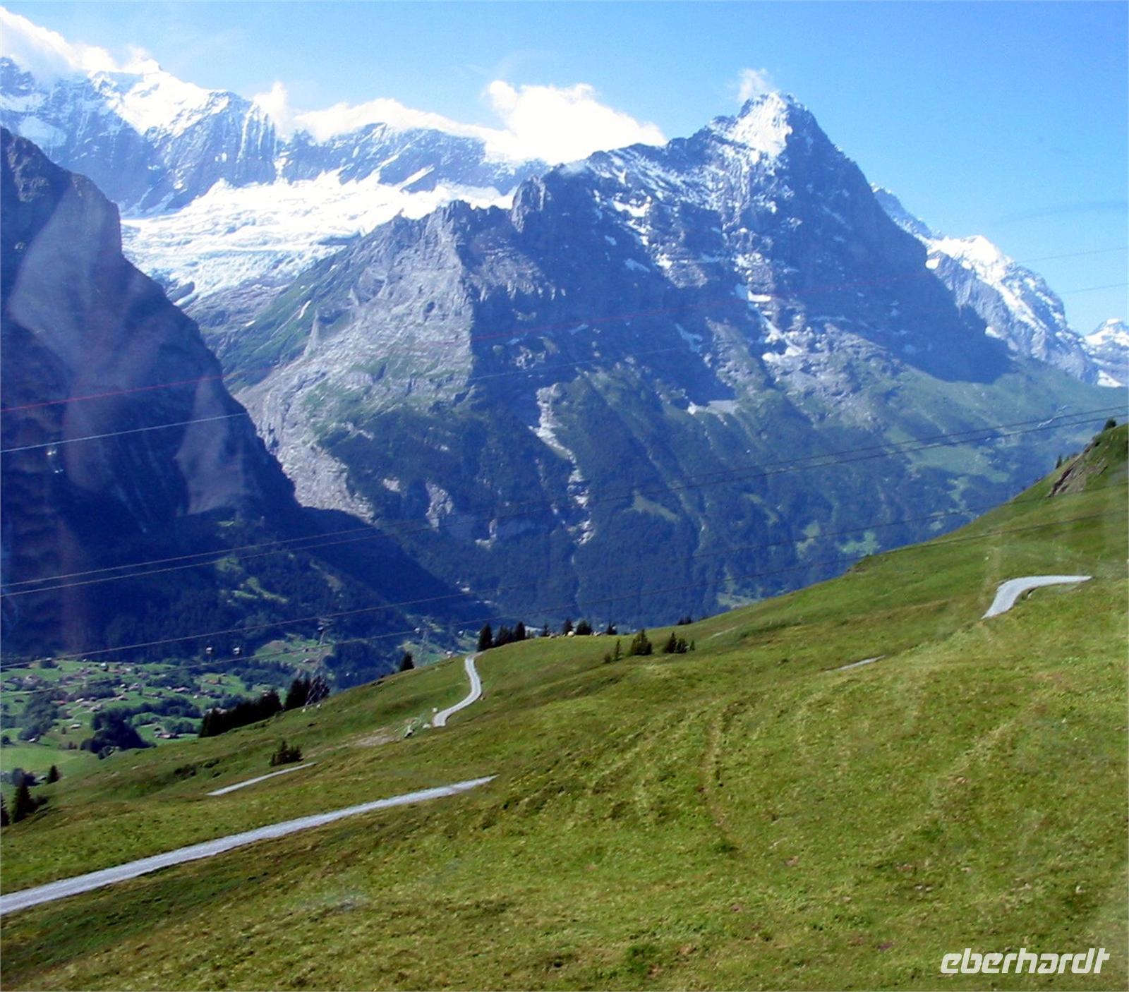 Von Grindelwald aus, kann man bequem hinauf zum First (2168 m) schweben. Mit einer Sechsergondelbahn, die über Bort und Schreckfeld zum First fährt, werden während der 25-minütigen Fahrt 5226 m Streckenlänge und 1100 Höhenmeter überwunden. Oben angekommen schweifte unser Blick über ein atemberaubendes Bergpanorama mit einigen der berühmtesten Berge der Welt. Sieben Viertausender, vom Schreckhorn bis zu Eiger, Mönch und Jungfrau begeisterten uns alle. Der First ist zu Recht als einer der schönsten Aussichtspunkte Europas bekannt und ein beliebter Startort für Paraglider und Deltasegler.