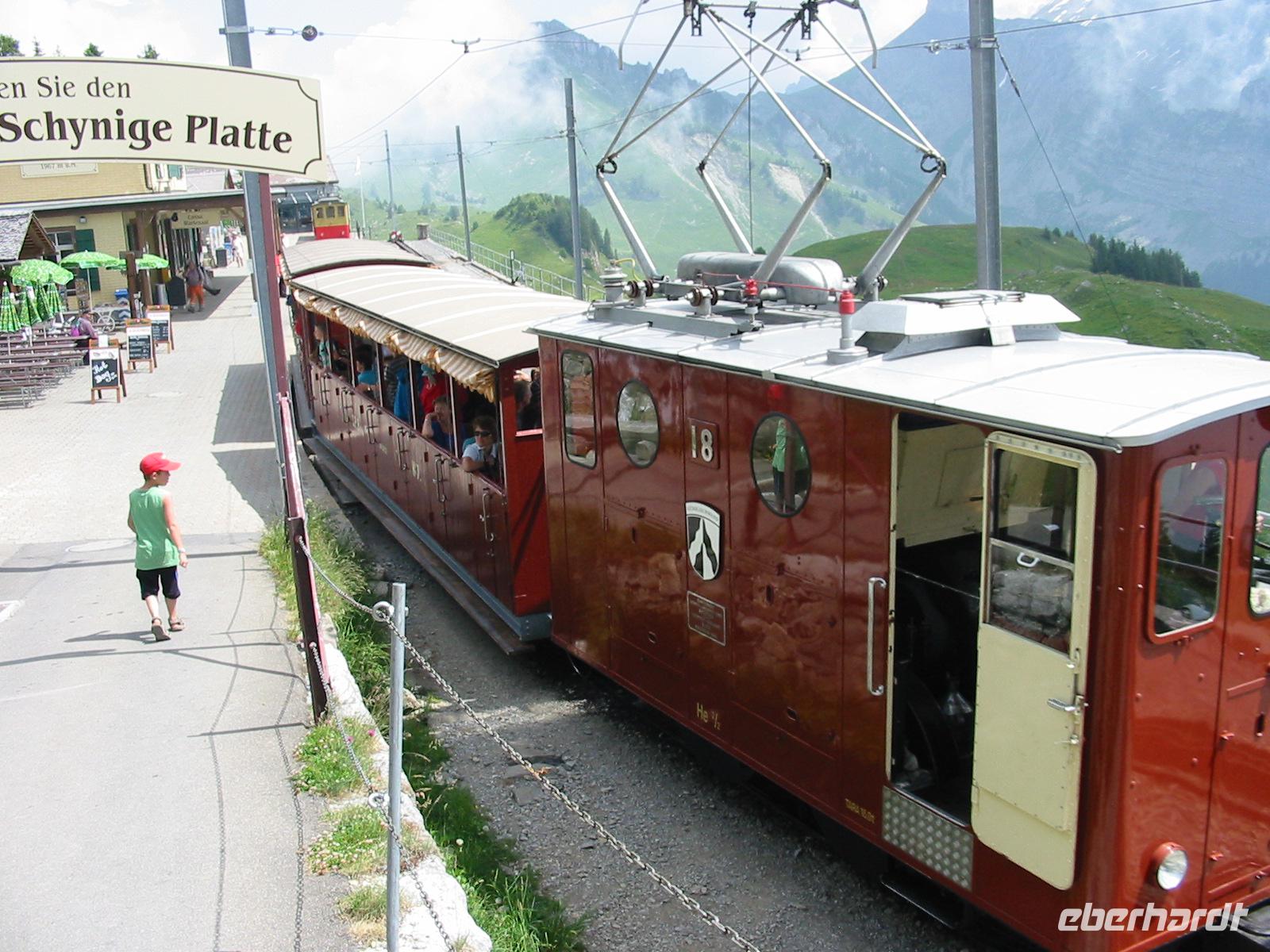 Die Bahn fährt von Wilderswil hinauf zur Schynige Platte, die ihren Namen durch die Schiefersteinplatten erhalten hat, die bei Sonne und Regen bis in das Tal scheinen. Unterwegs konnte man die Vielfalt der Natur genießen. Man fuhrt durch Wälder, an Alpweiden vorbei und hatte eine sagenhafte Aussicht auf die berühmten Landschaften des Berner Oberlandes mit Thuner- und Brienzersee und auf Eiger, Mönch und Jungfrau. Die 7255 km lange Zahnradstrecke der Bahn überwindet 1420 Höhenmeter. Einmalig ist der Szeneriewechsel nach der Durchfahrt des "Grätlitunnels" (5,6 km).