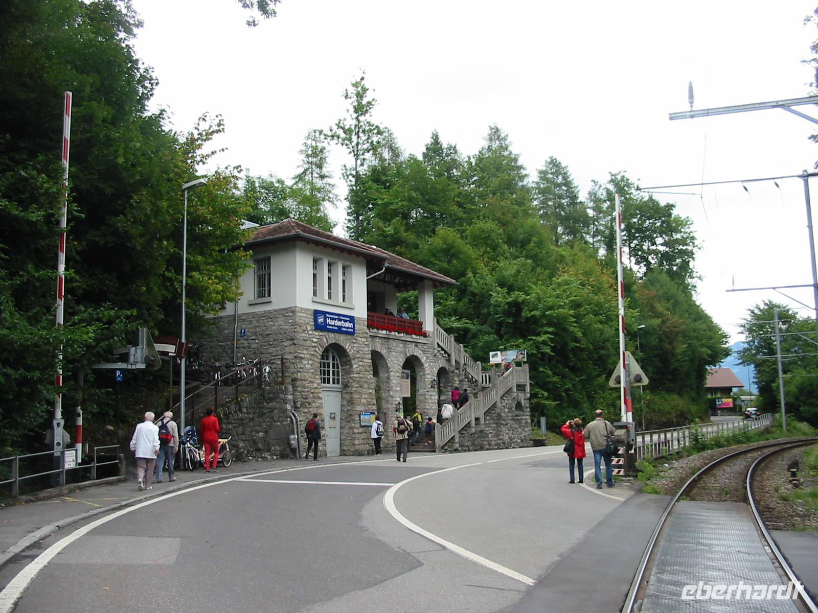 Nach einer mehr oder wenigen erholsamen Nacht und einem reichhaltigen Frühstück bekam jeder Gast den Jungfraubahnen-. Unser heutiges Ziel ist Interlaken mit dem Harder Kulm. Der Zug bringt uns wieder bis Lauterbrunnen und hier wartet Dieter bereits mit seinem Bus auf uns. Leider spielt auch heute das Wetter keine schöne Rolle. Hin und wieder lugte die Sonne hinter Wolken hervor.