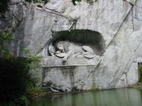 Unweit von Luzern konnten wir Luzerns Hausberg, den Pilatus, deutlich sehen. In Luzern angekommen, fuhren wir auf den Parkplatz am Inseli, ganz in der Nähe vom KKL (Kultur- und Kongresszentrum) und unsere Stadtführerin stieg in den Bus und wir fuhren zum Löwendenkmal. Der sterbende Löwe erinnert an die 1792 beim Tuileriensturm in Paris gefallenen Schweizergardisten. Die Inschrift zeigt die Namen der gefallenen und geretteten Offiziere der Schweizergarde und gibt die ungefähre Opferzahl (DCCLX = 760) und die ungefähre Anzahl der überlebenden (CCCL = 350) Soldaten an.
