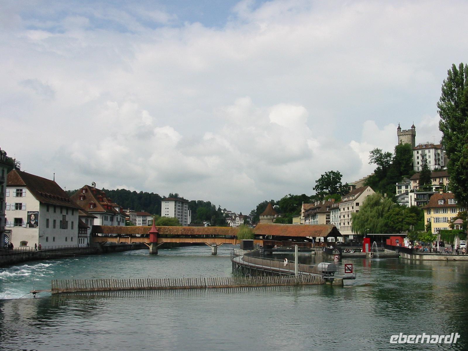 Nach der Besichtigung der Altstadt kamen wir zur Kappelbrücke, dem Wahrzeichen von Luzern. Die Brücke selbst brannte 1993 nieder und wurde nachher komplett wiederaufgebaut. Allerdings sind viele der bekannten Malereien innerhalb der Brücke verloren gegangen. In der Mitte der Brücke trohnt der Wasserturm.