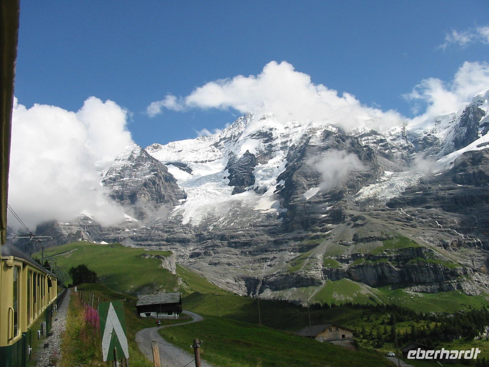 Die Jungfraubahn ist eine Zahnradbahn, die von der Kleinen Scheidegg durch Eiger und Mönch bis aufs Jungfraujoch führt. Sie überwindet dabei auf einer Länge von rund 9 Kilometer fast 1400 Höhenmeter. Etwas mehr als 7 Kilometer der Strecke liegen im Tunnel. Eine Fahrt dauert rund 50 Minuten. Aus Sicherheitsgründen verläuft ein großer Teil der Strecke im Fels. Bei den Zwischenstationen Eigerwand und Eismeer hielt der Zug fünf Minuten lang. Große Aussichtsfenster boten bereits ein unvergleichliches Panorama. Die Station Jungfraujoch ist die höchstgelegene Bahnstation Europas (Top of Europe).