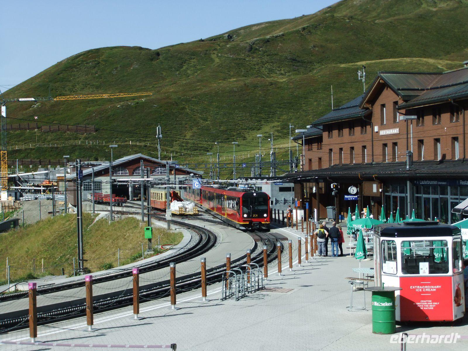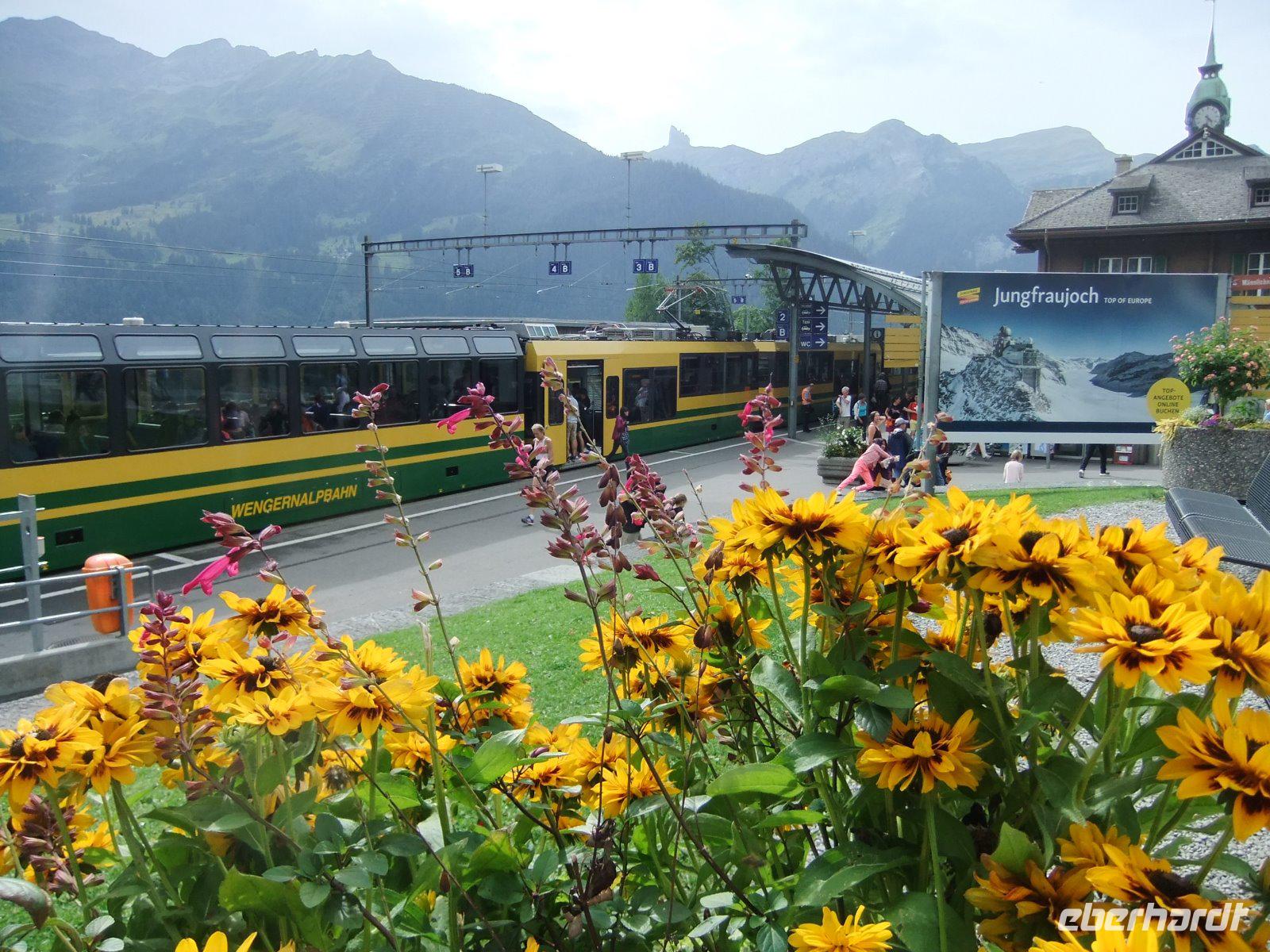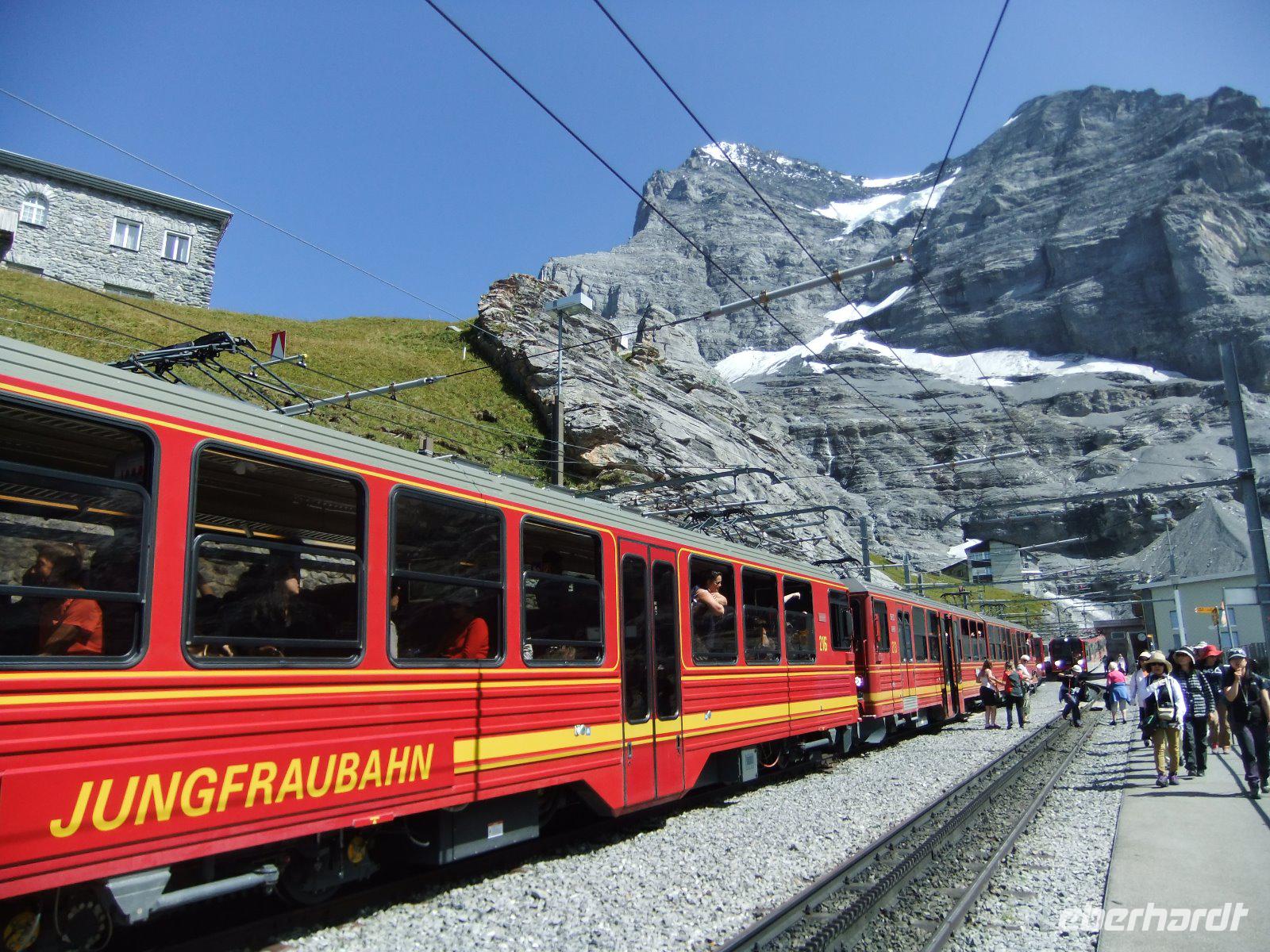 Schnell sind die Stunden auf dem Jungfraujoch vergangen. Die Jungfraubahn bringt uns wieder zur Station Kleine Scheidegg. Von hier aus geht es dann mit der Wengernalpbahn zurück zum Hotel. Ein toller Tag bei Traumwetter!