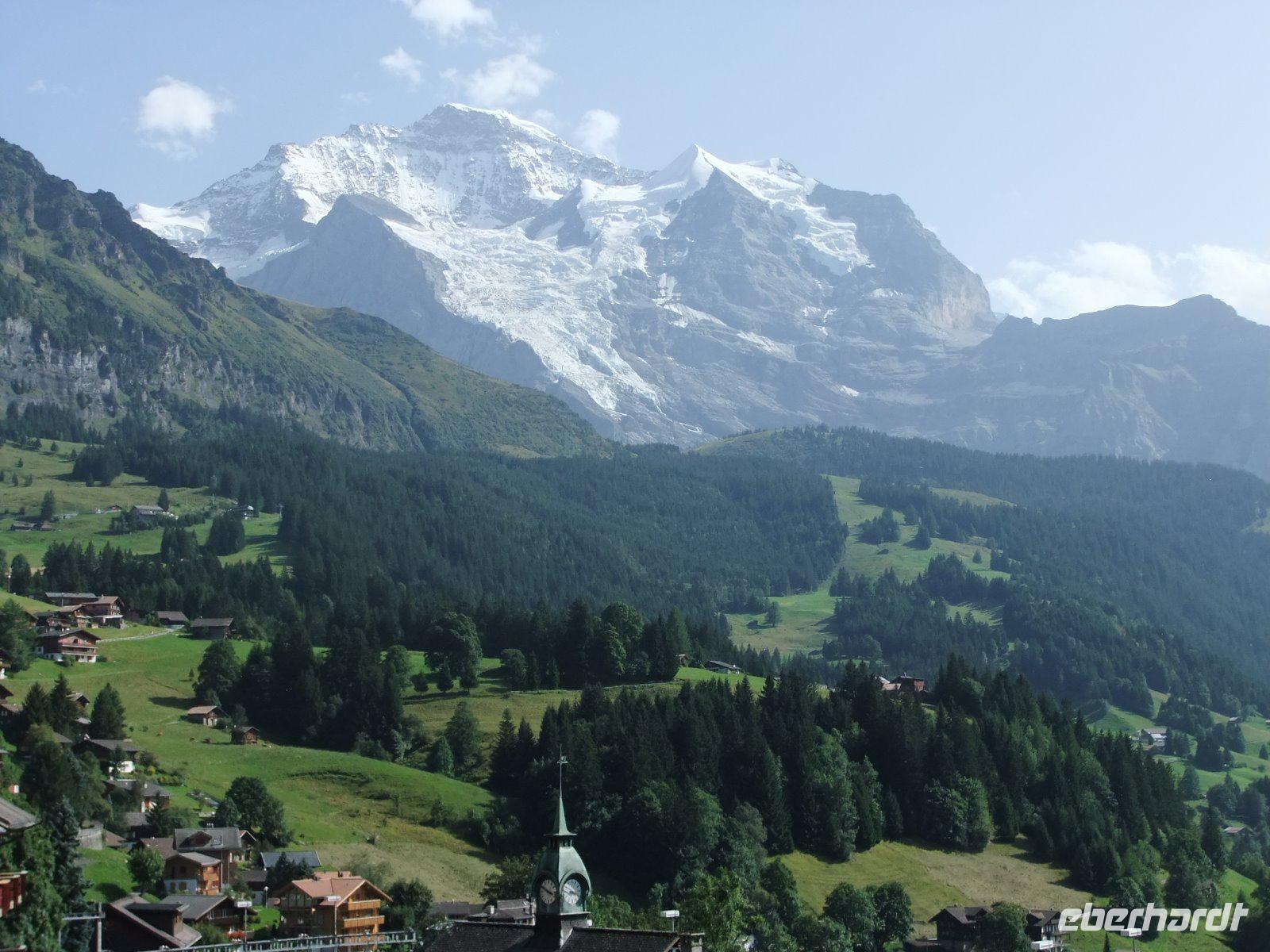 Anfangs kommen wir gut voran, doch für die Strecke hinter Ulm wird ein Stau von 12 Kilometern angesagt. So verlassen wir hier die Autobahn. In Lindau machen wir unsere letzte Pause auf deutschen Gebiet. Dann geht es durch den Pfändertunnel nach Österreich und am Grenzübergang Mäder/Kriessern bald auch in die Schweiz. Alle genießen die landschaftlich schöne Fahrt durch das Rheintal und entlang des Walen- und des Zürichsees. Wir kommen vorbei an Luzern, am Vierwaldstättersee, am Sarner See und am Lungernsee. Über den Brünigpass setzen wir die Fahrt fort und können bald den Brienzer See sehen. Nun müssen wir noch durch das Lütschinen- und das Lauterbrunnental. In Lauterbrunnen verlassen wir den Bus und fahren mit dem Zug hinauf nach Wengen. Vom Bahnhof sind es nur wenige Schritte bis zum Hotel „Victoria-Lauberhorn", wo man uns schon erwartet. Schnell sind die Zimmer bezogen und wir treffen uns zum Abendessen. Mit einem phantastischen Blick auf das Jungfraumassiv endet der Tag.