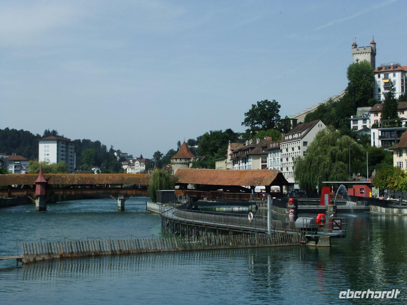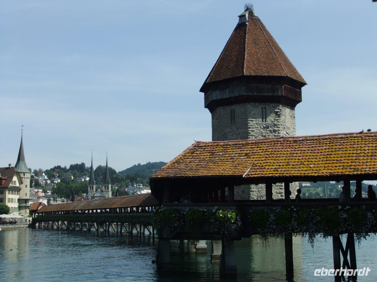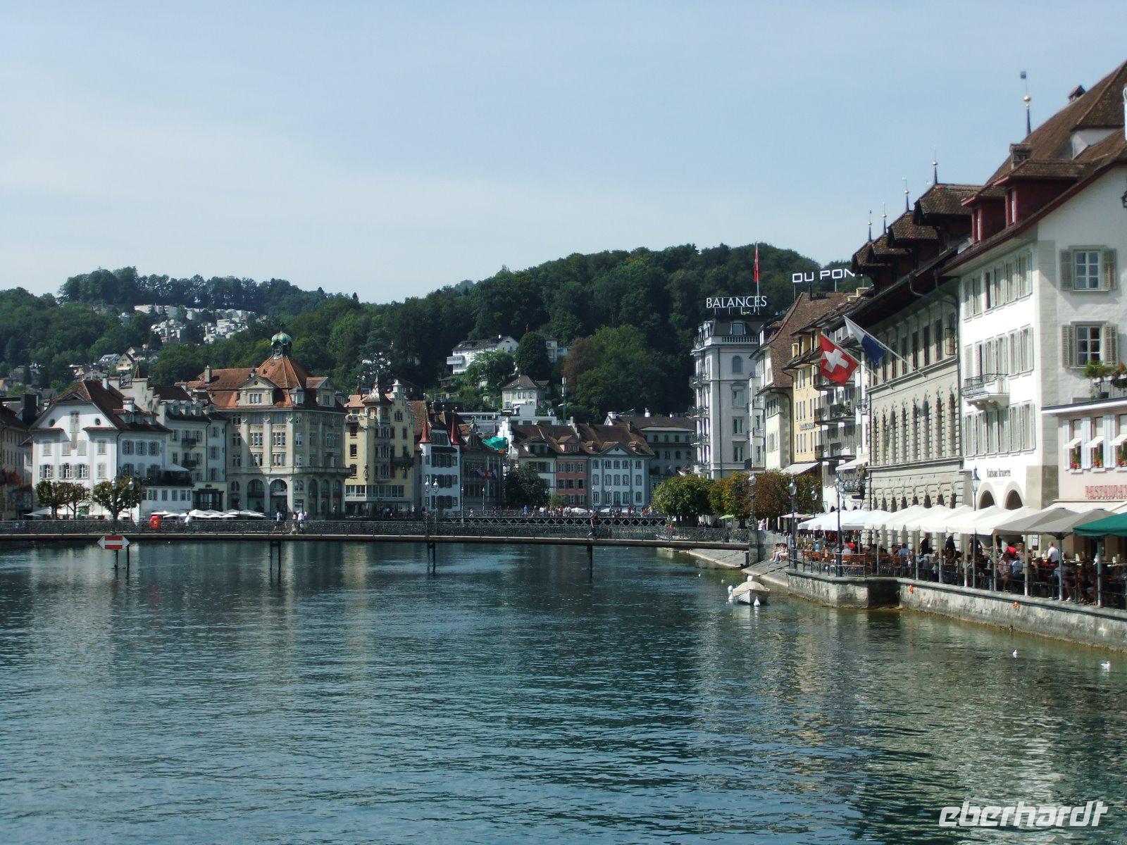 Heute geht es mit dem Bus nach Luzern. Dabei fahren wir durch das Lütschinental Richtung Interlaken, weiter entlang des Brienzesees und über den Brünigpass. Am Ausblick Lungernsee wir ein kurzer Halt zum Fotografieren gemacht. Dann erreichen wir bald Luzern. Wir spazieren durch den Inseli-Park und treffen uns dann mit Stadtführerin Susy. Sie zeigt uns als erstes den „sterbenden Löwen von Luzern". Er wurde zum Andenken an den Heldentod der 1792 in Paris gefallenen Schweizer in eine 20 Meter hohe Sandsteinwand gehauen. Dann erkunden wir Luzern zu Fuß. Wir beginnen mit einem kleinen Rundgang durch die Altstadt mit malerischen Gassen und freskengeschmückten Häusern. Weiter geht es zur weltbekannten Kapellbrücke, ist sie doch das Wahrzeichen der Stadt und die älteste gedeckte Holzbrücke der Welt. Wir überqueren auf ihr die Reuss und kommen zur Jesuitenkirche. Von hier hat man auch einen schönen Blick zum gegenüberliegenden Rathaus. Weiter geht es zum „Nadelwehr". Dabei handelt es sich um eine Einrichtung zur Regelung des Wasserabflussmenge und damit des Wasserstandes des Vierwaldstätter Sees. Bald kommen wir wieder in die Altstadt. Die verbleibende Zeit nutzen die Gäste noch zum Besuch der Hofkirche, einen Bummel entlang des Vierwaldstätter Sees oder zur Einkehr in eines der vielen Restaurants am Reussufer.