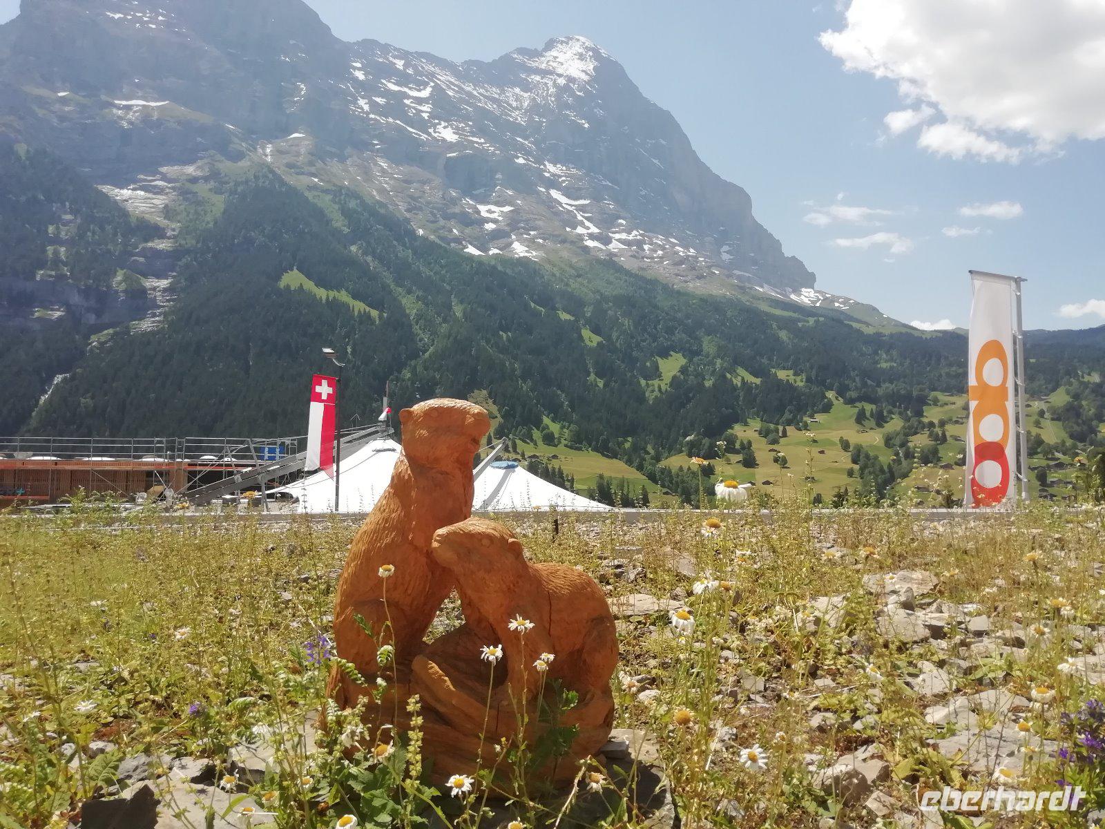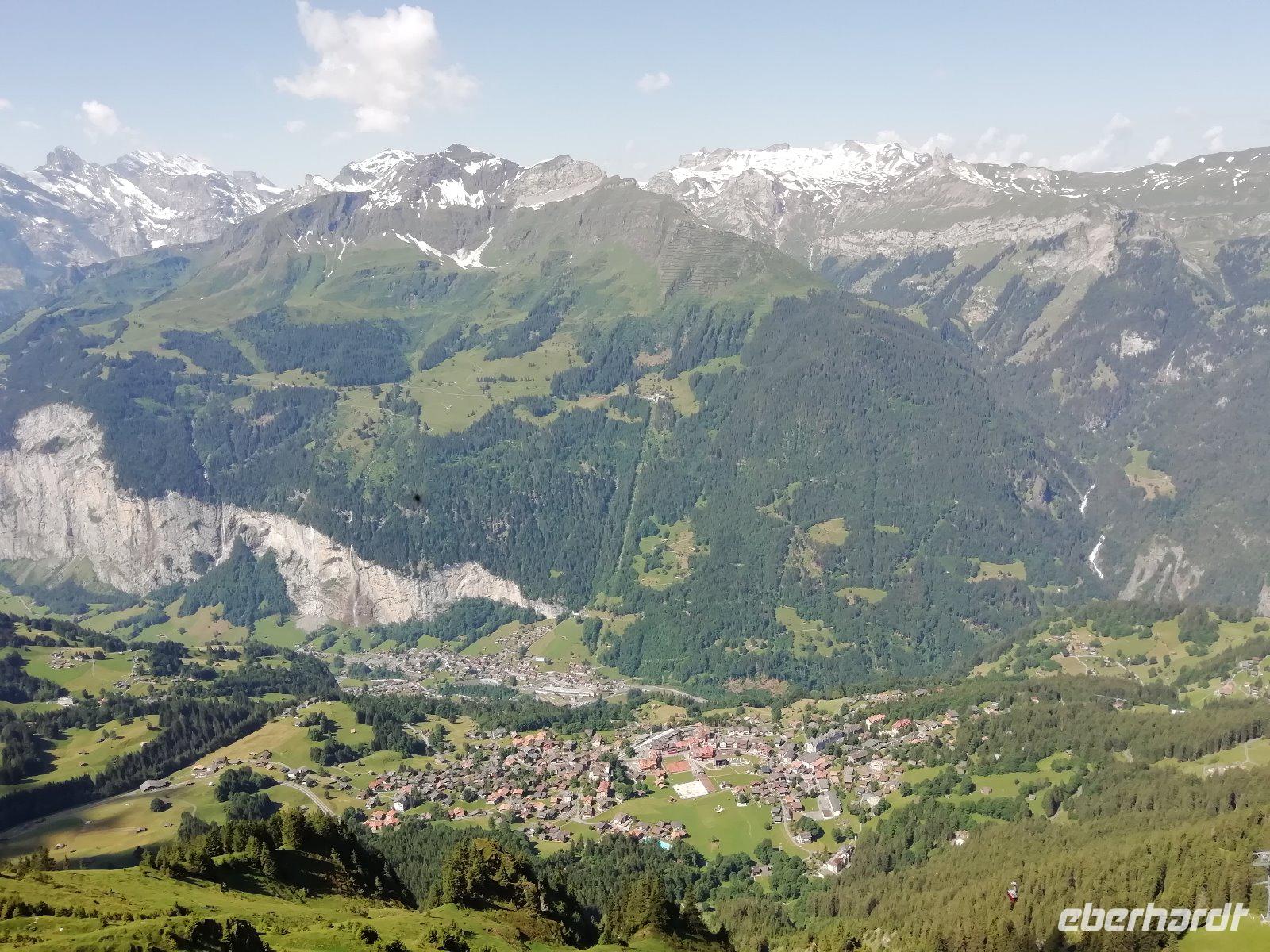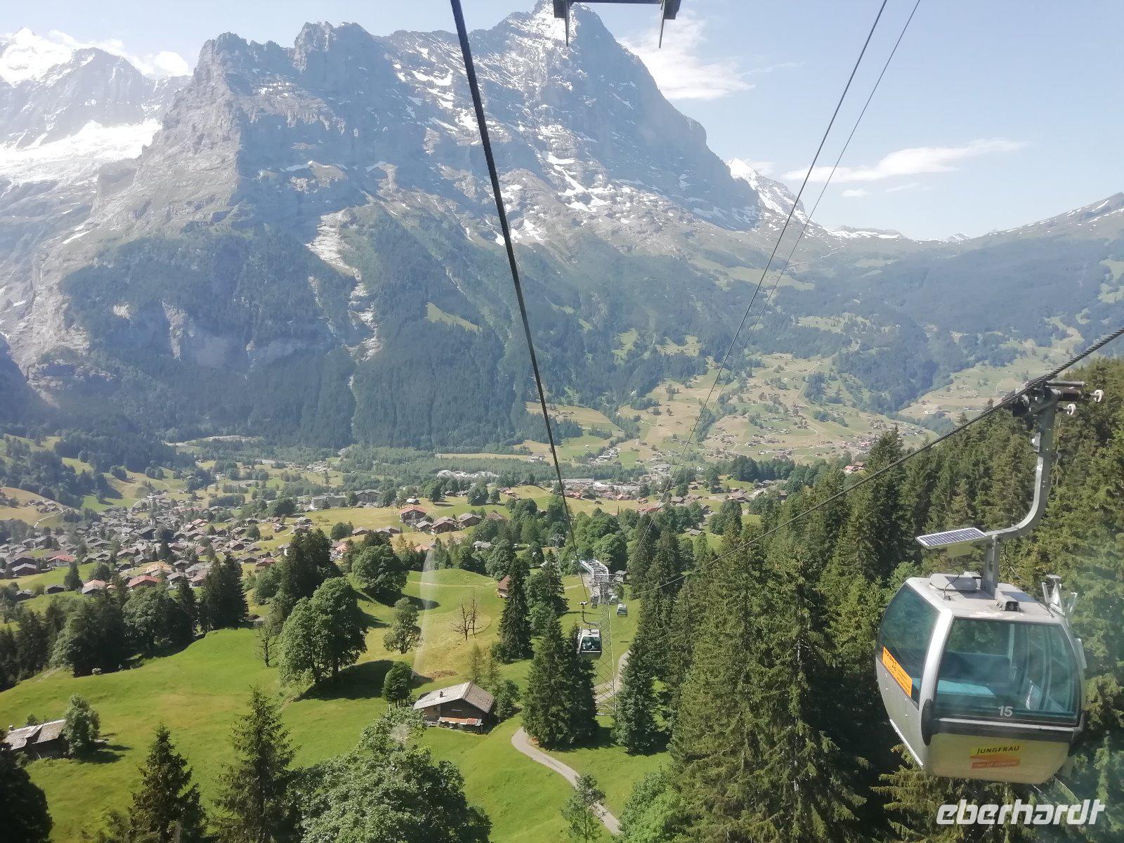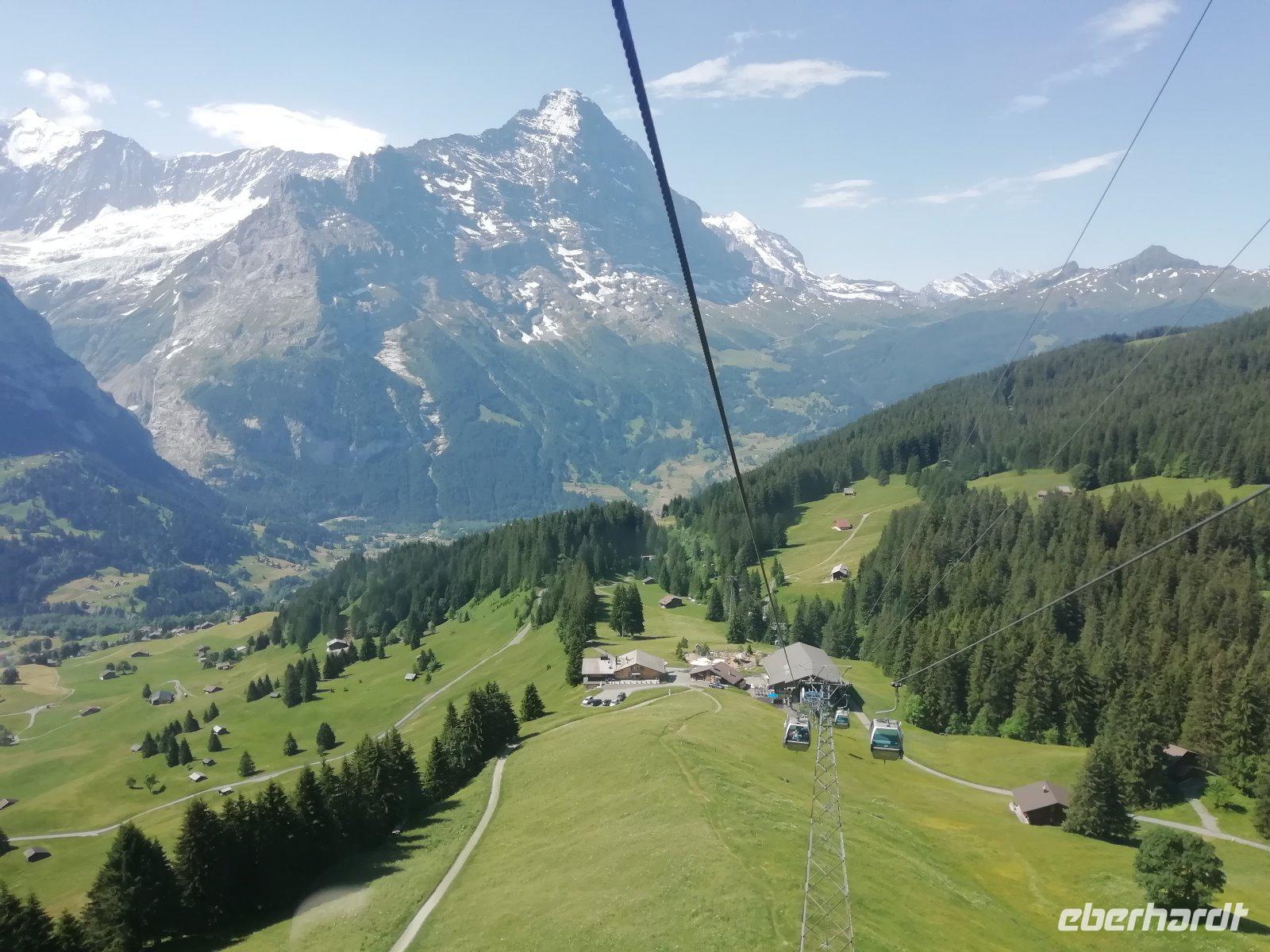 Zwar kann man mit dem First Flieger, dem First Gleiter, dem Trottibike oder einem Mountain Car einen Teil der Abfahrt vom First absolvieren, wir entscheiden uns aber alle wieder für die Seilbahn. Unten in Grindelwald empfängt uns wieder die hochsommerliche Hitze. Nach einem Spaziergang durch das Gletscherdorf zum Bahnhof geht es mit dem Bus zurück. In Lauterbrunnen nutzen einige noch die Zeit für einen Abstecher zum Staubbachwasserfall.