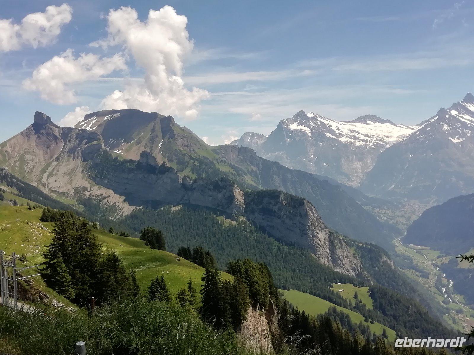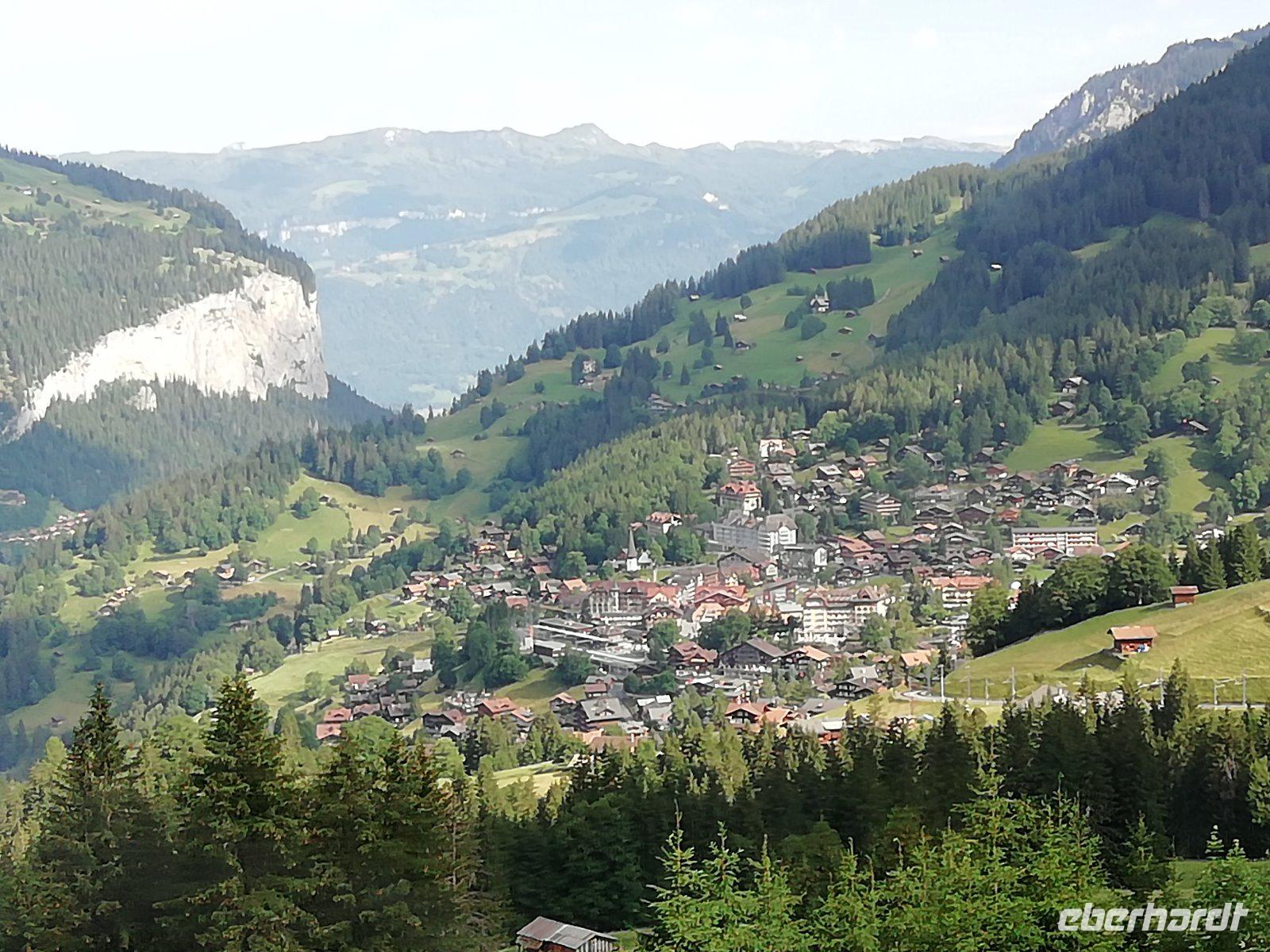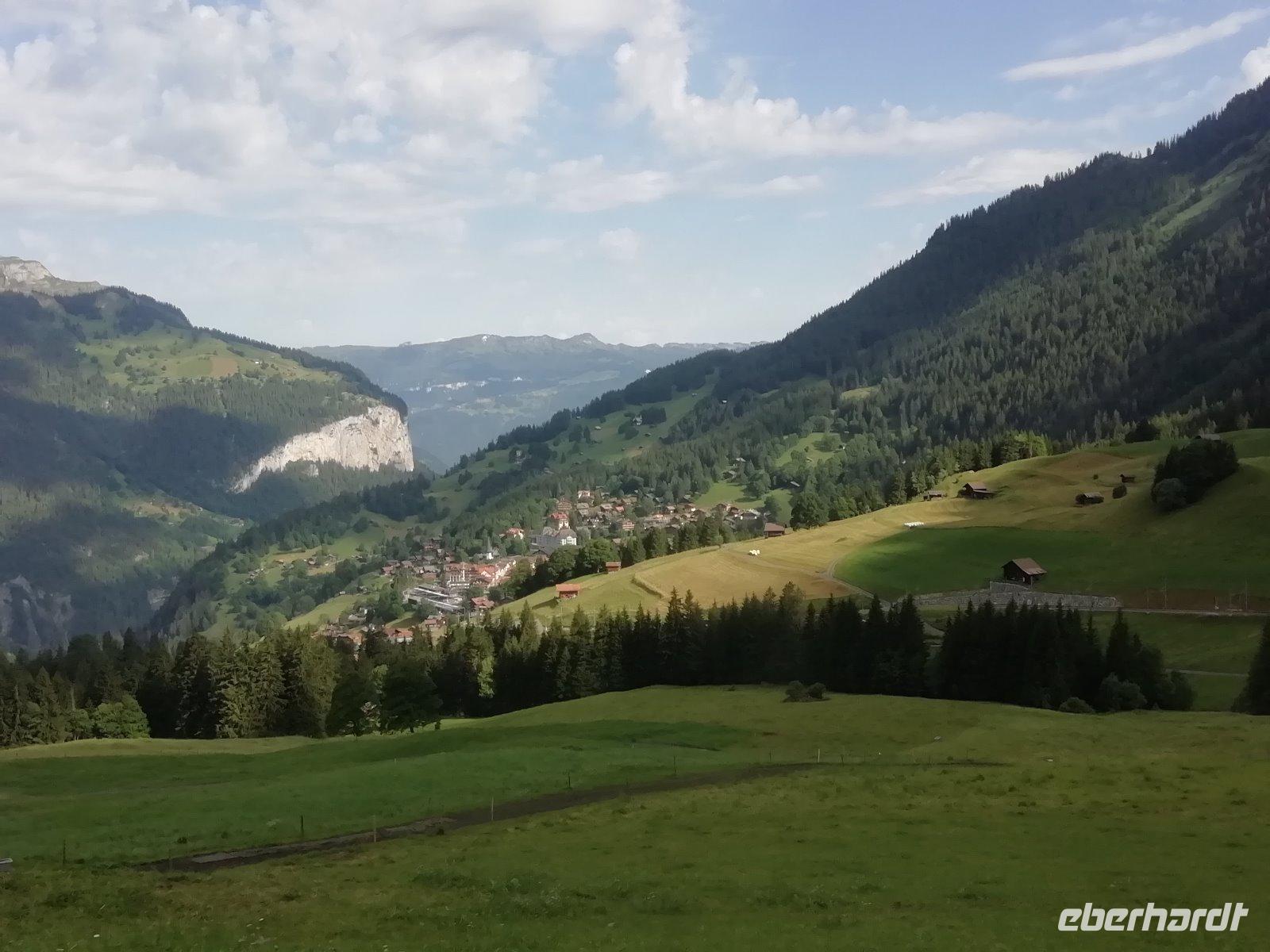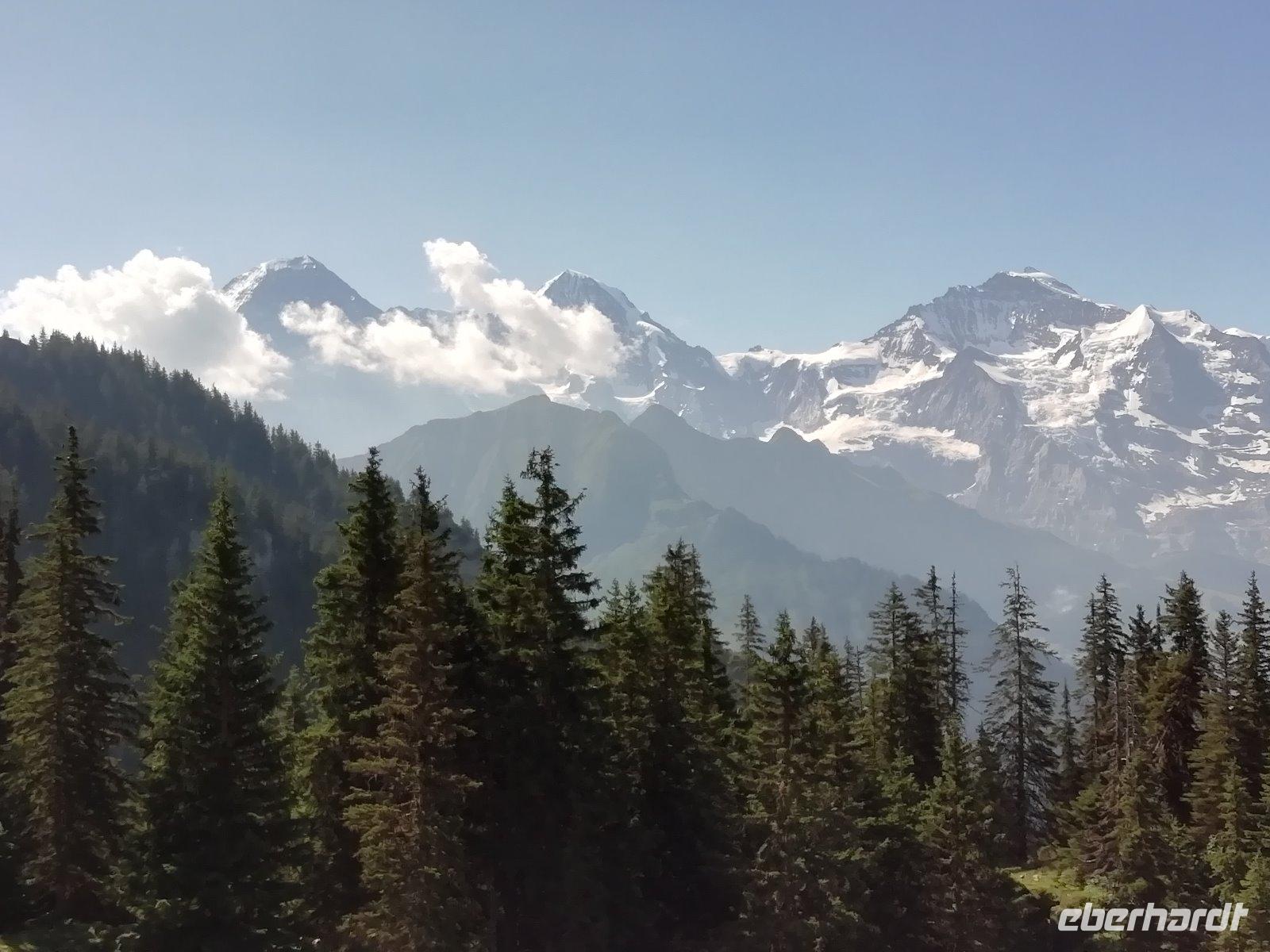 Anfangs kommen wir gut voran, doch an einer Baustelle vor dem Virnbergtunnel gibt es Stau, fast eine Stunde verlieren wir hier an Zeit. In Lindau machen wir unseren letzten Halt auf deutschem Gebiet. Dann geht es durch den Pfändertunnel nach Österreich und am Grenzübergang Lustenau/Au bald auch in die Schweiz. Alle genießen die landschaftlich schöne Fahrt durch das Rheintal und entlang des Walen- und des Zürichsees. Wir kommen vorbei an Luzern, am Vierwaldstättersee, am Sarner See und am Lungernsee. Über den Brünigpass setzen wir die Fahrt fort und können bald den Brienzer See sehen. Nun müssen wir noch durch das Lütschinen- und das Lauterbrunnental. In Lauterbrunnen verlassen wir den Bus und fahren mit dem Zug hinauf nach Wengen. Vom Bahnhof sind es nur wenige Schritte bis zum Hotel „Victoria-Lauberhorn", wo man uns schon erwartet. Schnell sind die Zimmer bezogen. Nun erwartet uns ein köstliches Buffet, dass wir mit Blick auf das Jungsfraumassiv genießen. Obwohl es ein langer und sehr heißer Tag war, unternehmen einige Gäste noch einen Erkundungsspaziergang durch den Ort.
