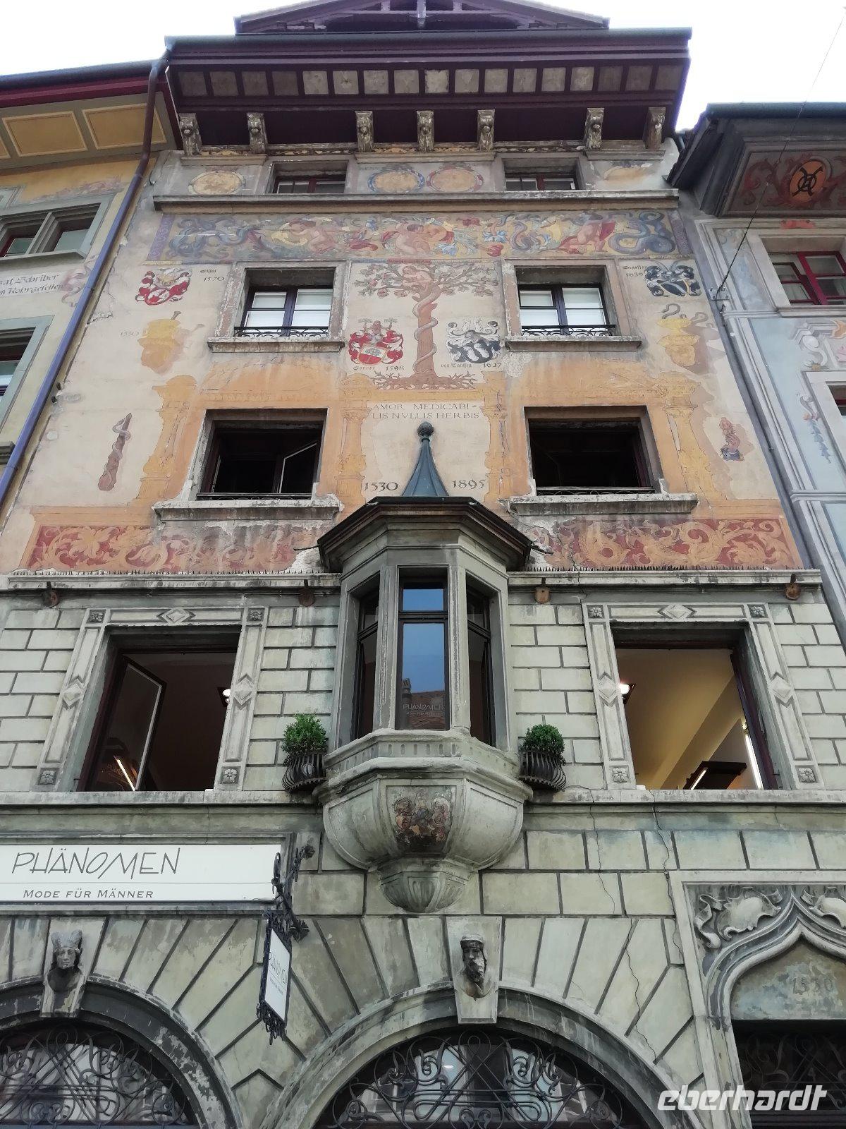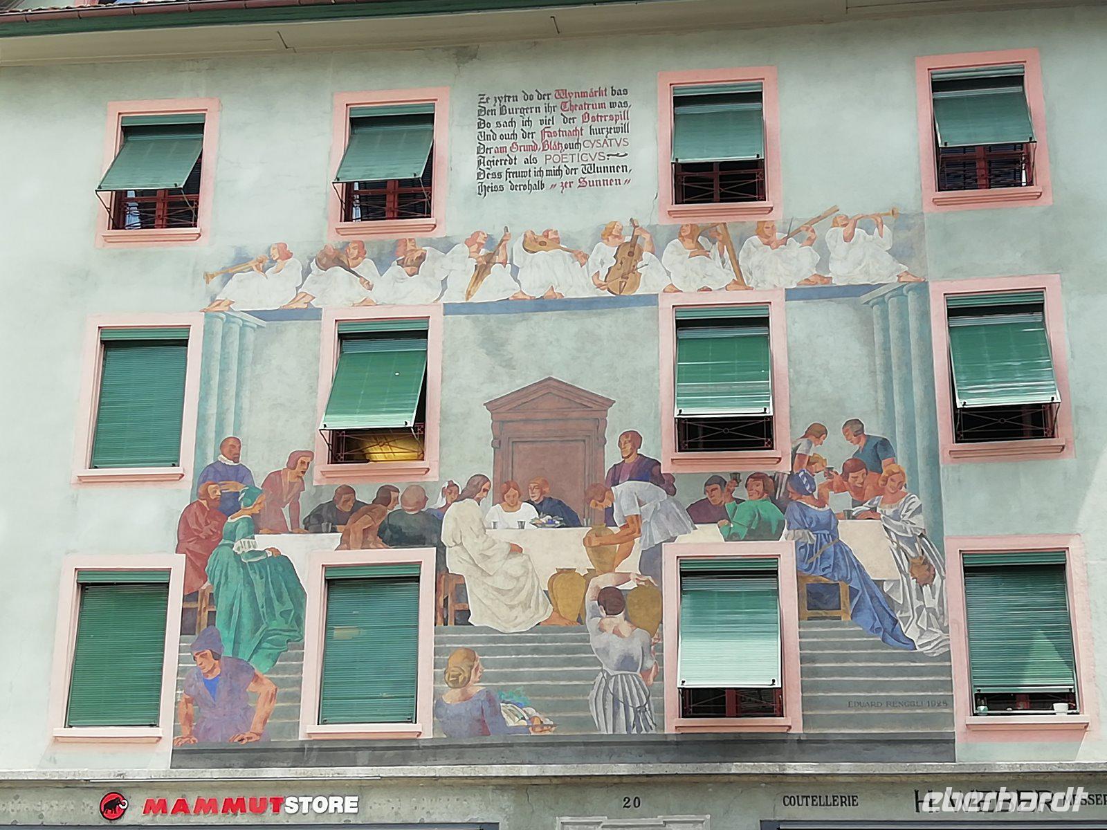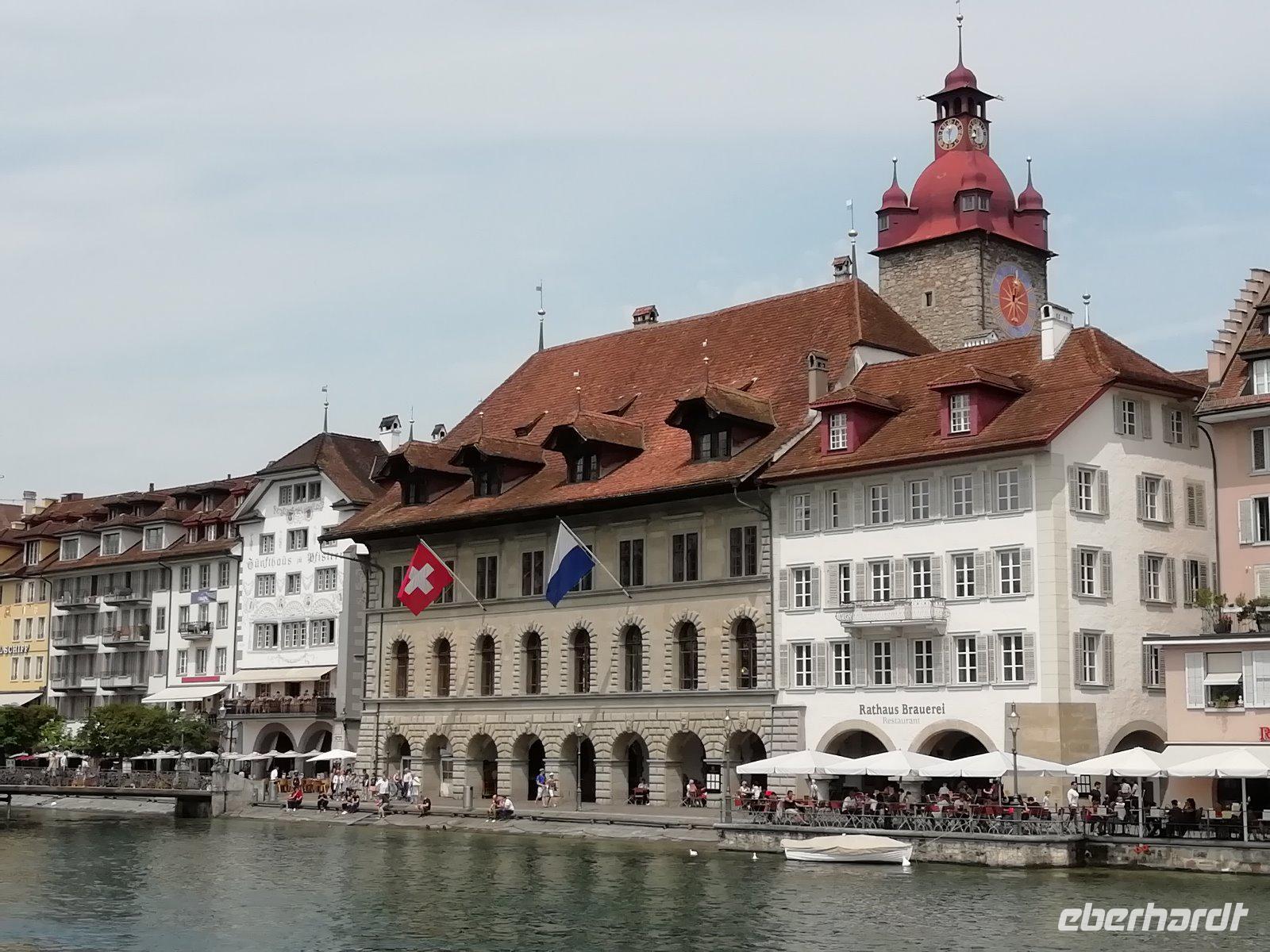 Heute geht es mit dem Bus nach Luzern. Dabei fahren wir durch das Lütschinental Richtung Interlaken, weiter entlang des Brienzersees und über den Brünigpass. Am Ausblick Lungernsee wird ein kurzer Halt zum Fotografieren gemacht. Dann erreichen wir bald Luzern. Am Löwenplatz treffen wir uns mit Stadtführerin Christina. Sie zeigt uns als erstes den „sterbenden Löwen von Luzern". Er wurde zum Andenken an den Heldentod der 1792 in Paris gefallenen Schweizer in eine 20 Meter hohe Sandsteinwand gehauen. Dann erkunden wir Luzern zu Fuß. Wir beginnen mit dem Wahrzeichen der Stadt: der weltbekannten Kapellbrücke. Dabei erfahren wir Interessantes zur Geschichte der ältesten gedeckten Holzbrücke der Welt. Wir überqueren auf ihr die Reuss und kommen zur Jesuitenkirche. Von hier hat man auch einen schönen Blick zum gegenüberliegenden Rathaus. Wegen Reinigungsarbeiten ist die Kirche leider geschlossen, doch Christina zeigt uns Bilder vom Innenraum. Weiter geht es zum „Nadelwehr". Dabei handelt es sich um eine Einrichtung zur Regelung der Wasserabflussmenge und damit des Wasserstandes des Vierwaldstätter Sees. Über die Spreuerbrücke gelangen wir wieder in die Altstadt mit malerischen Gassen und freskengeschmückten Häusern. Die verbleibende Zeit nutzen die Gäste noch für einen Bummel entlang des Vierwaldstätter Sees oder lassen sich bei der Hitze einen Eisbecher am Reussufer schmecken.