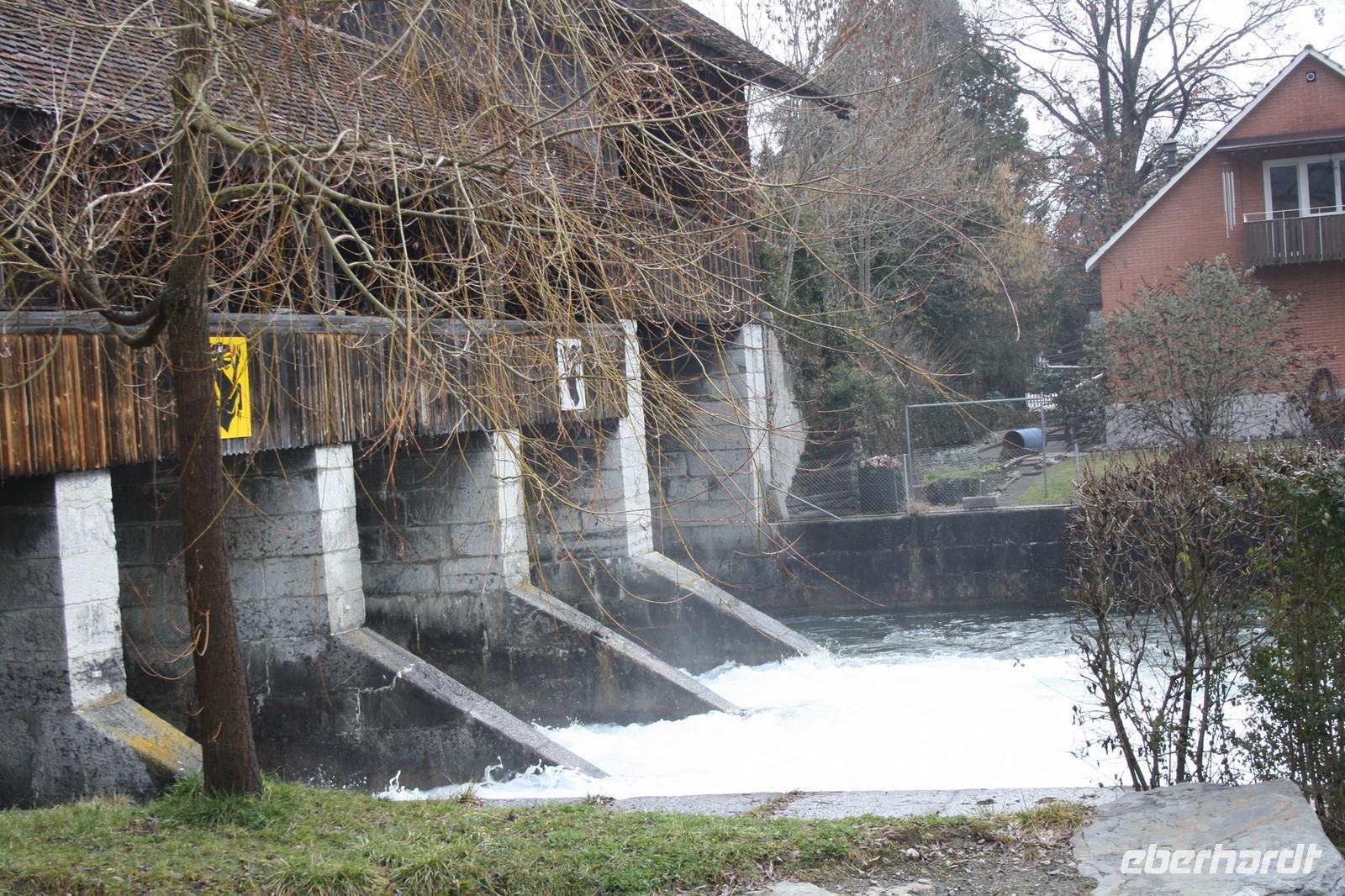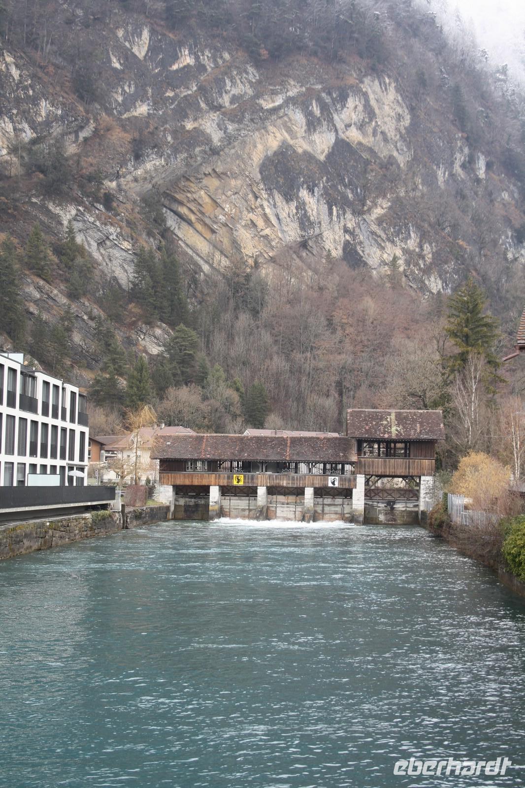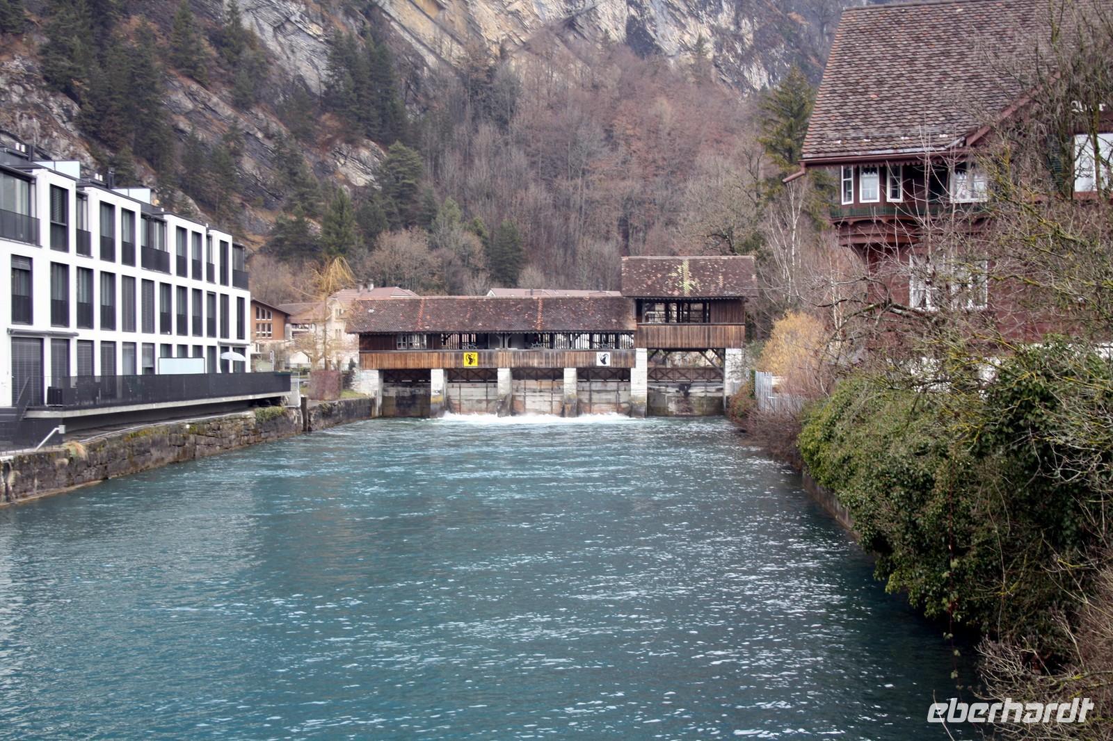 Auf dem Heimweg gingen wir an der Aare entlang und überquerten das Wasserwehr Interlaken.