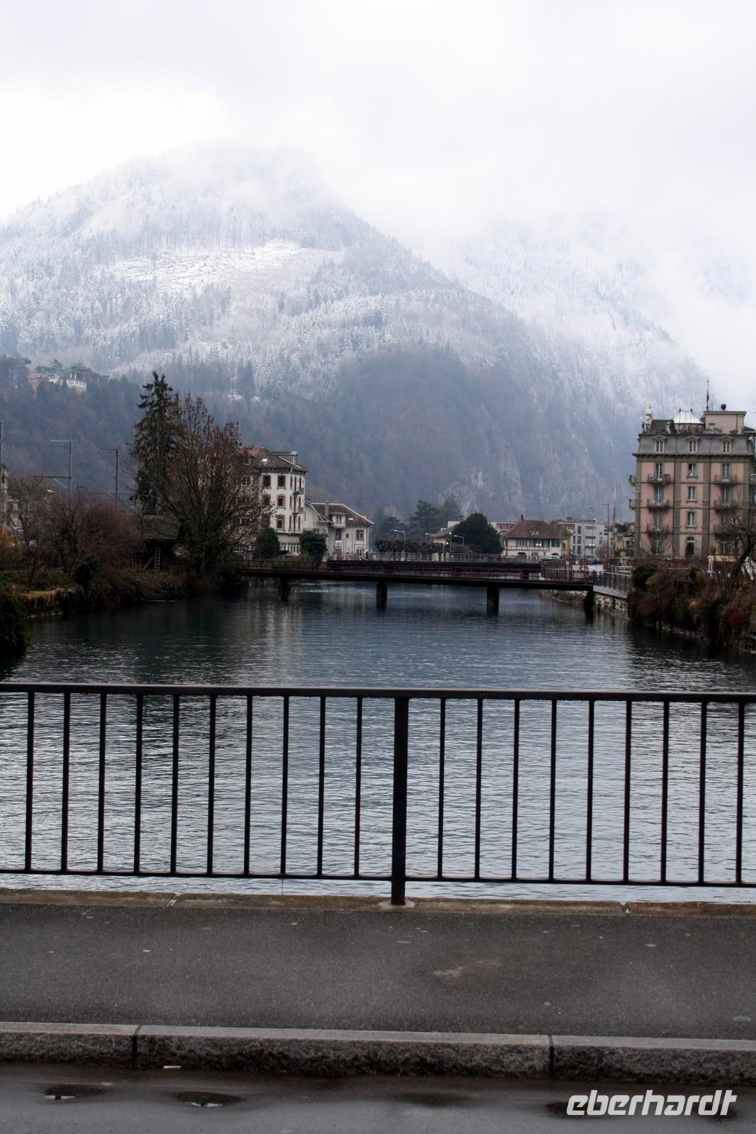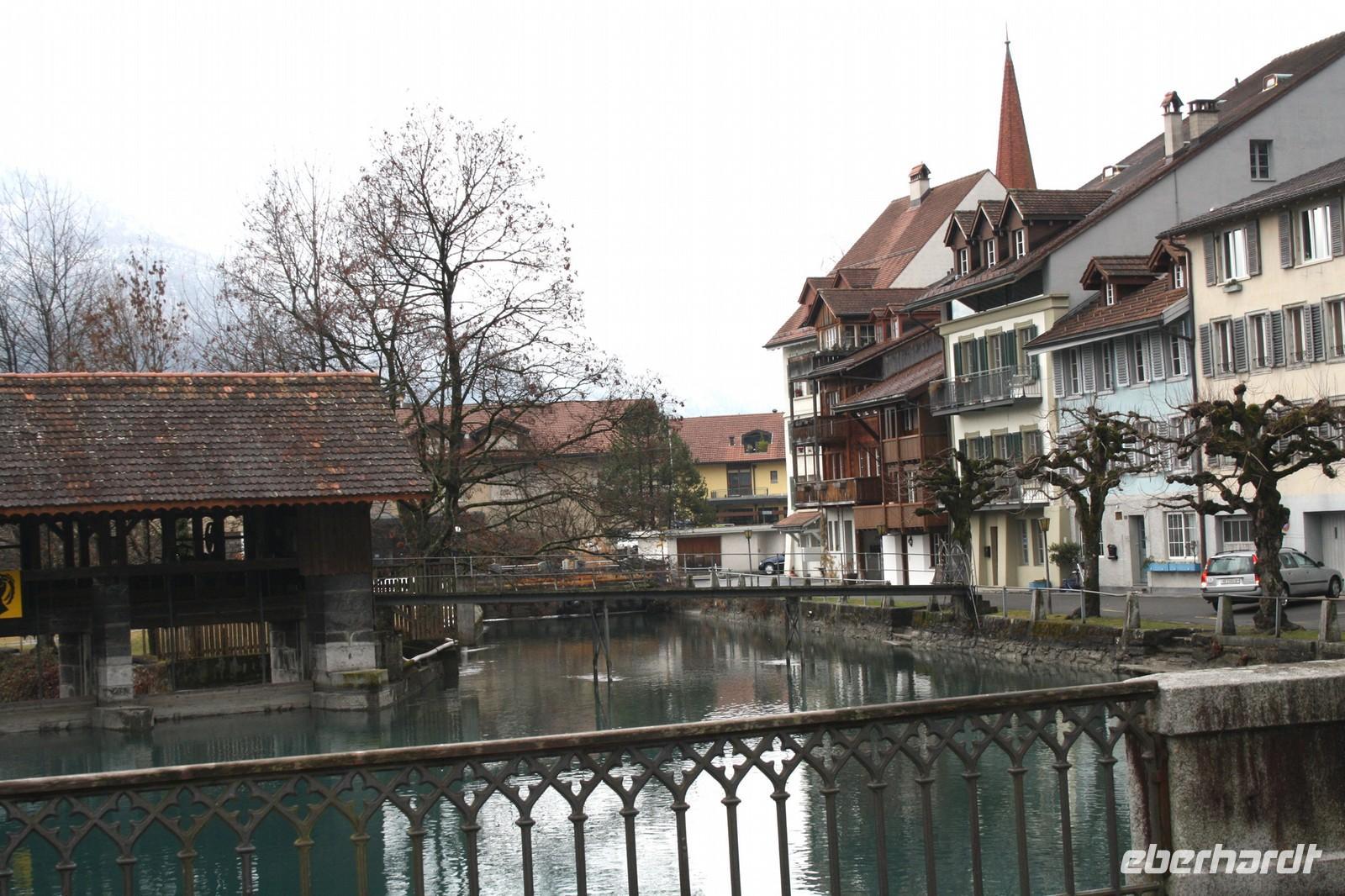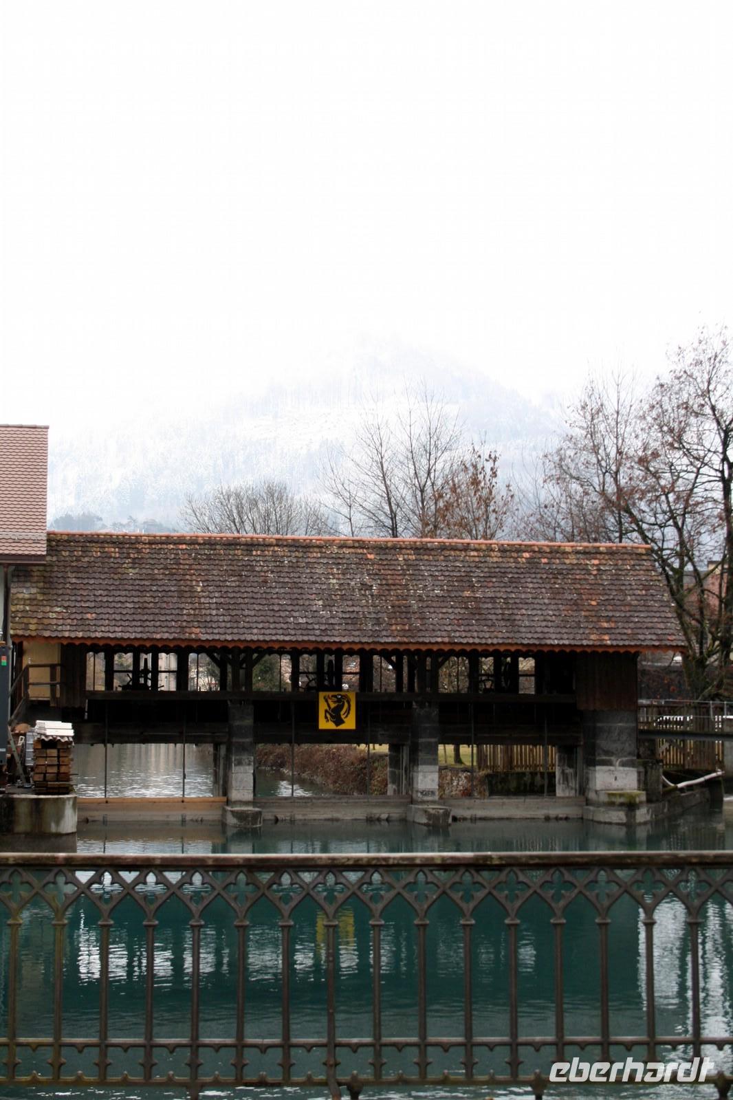 Auf dem Heimweg gingen wir an der Aare entlang und überquerten das Wasserwehr Interlaken.