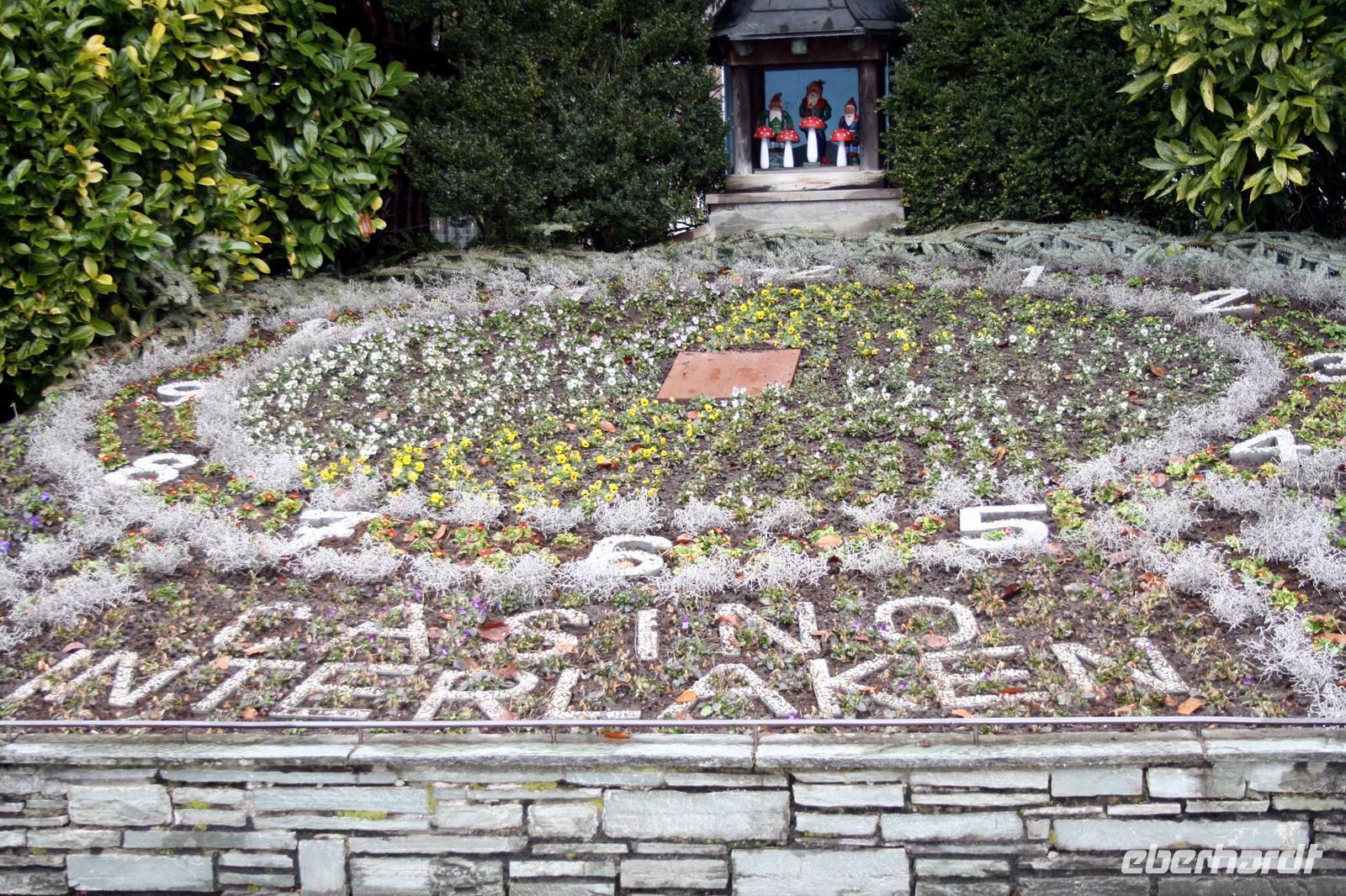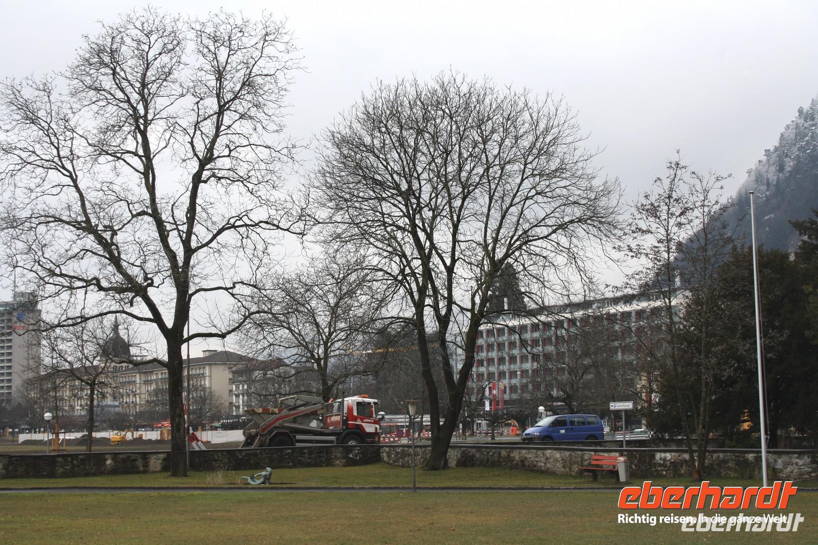 Wir gingen zum Mittelpunkt des Ortes, dem Höheweg. Von Interlaken-West bis Interlaken-Ost erstreckt er sich mit vielen Hotels, Restaurants, Geschäften und Souvenirläden. Herzstück dieser Straße ist die Höhematte, wo sich der Blick über die Wiese hinweg auf die Berge öffnet, mit der einzigartigen Sicht auf die Jungfrau.