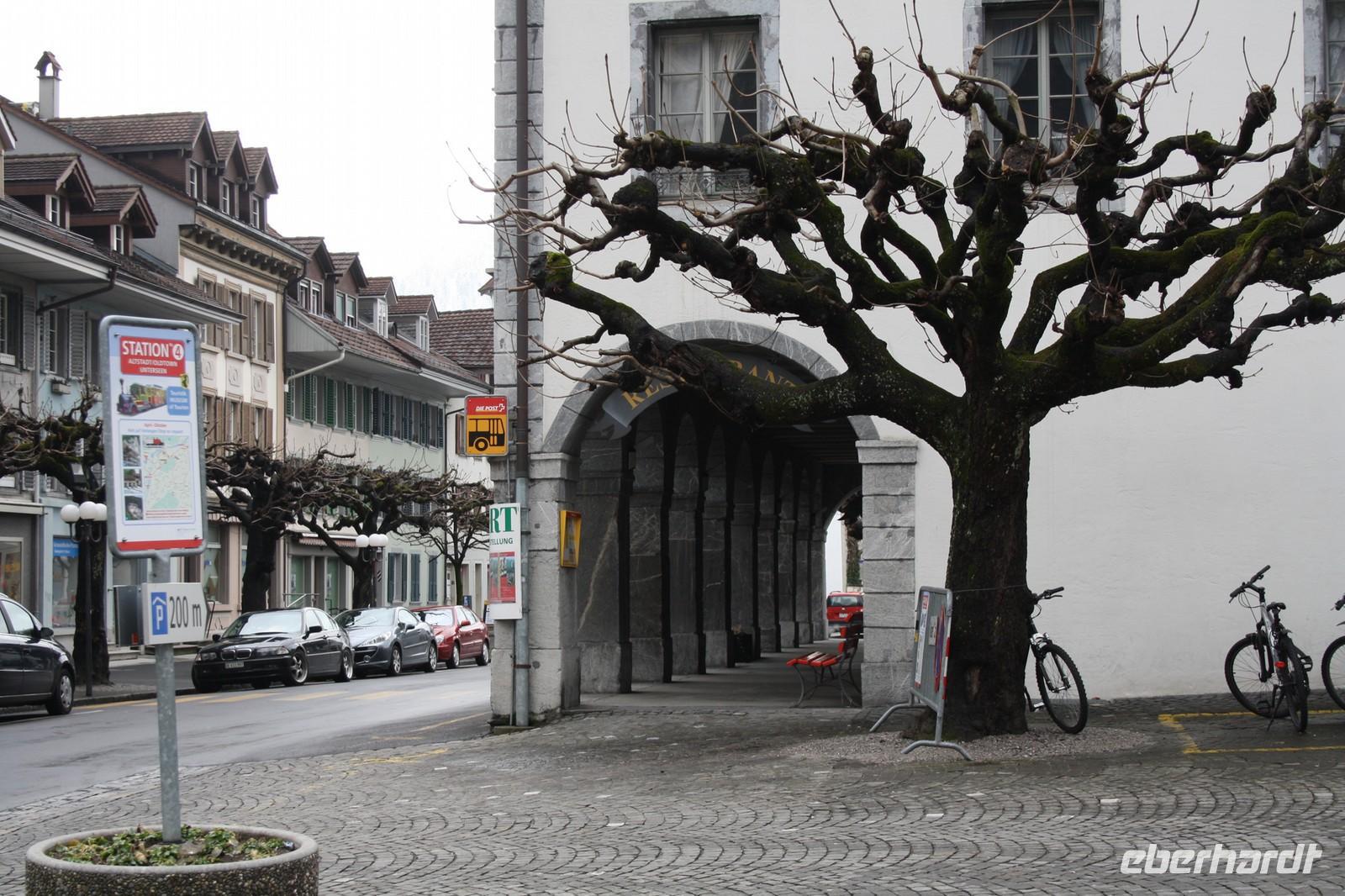Zu Interlaken gehört auch die Gemeinde Unterseen. Dort, auf dem Stadthausplatz, erzählte Herr Äberhardt, dass dieser Platz Zeugnis gibt von der mittelalterlichen Städtebaukunst