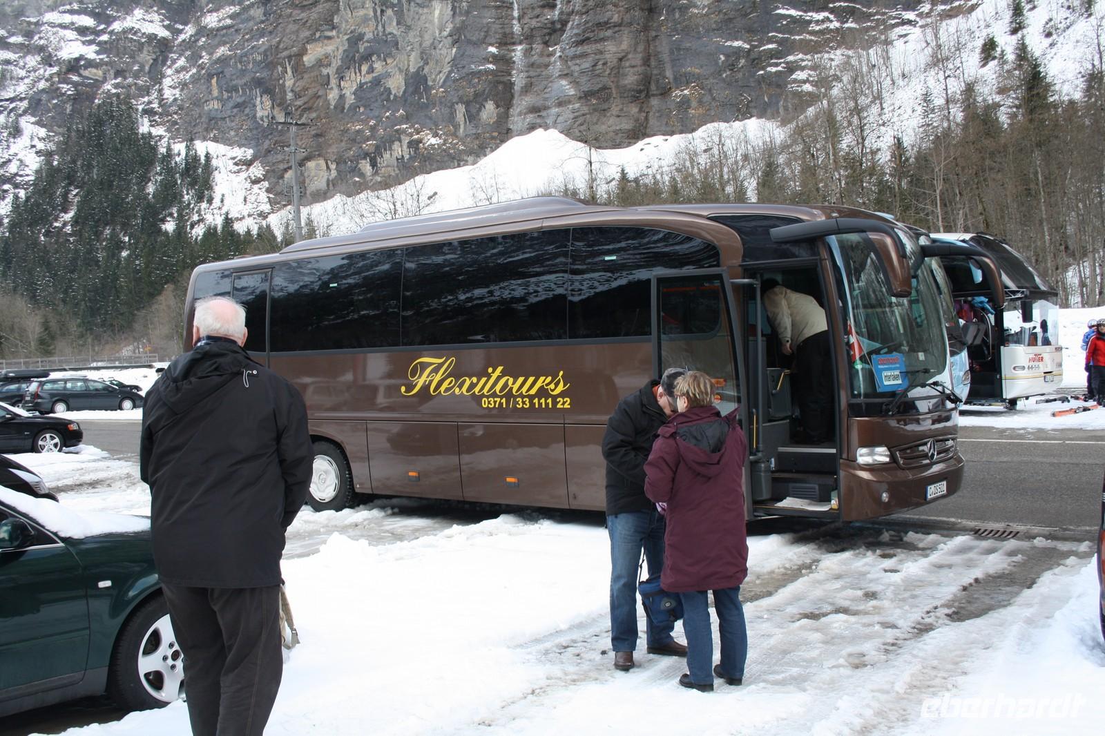 Wir konnten uns kaum von dem wunderschönen Anblick trennen, doch in Stechelberg wartete Busfahrer Ingo mit Würstchen und Glühwein auf uns. Im Tal war nichts mehr von Sonnenschein zu sehen.