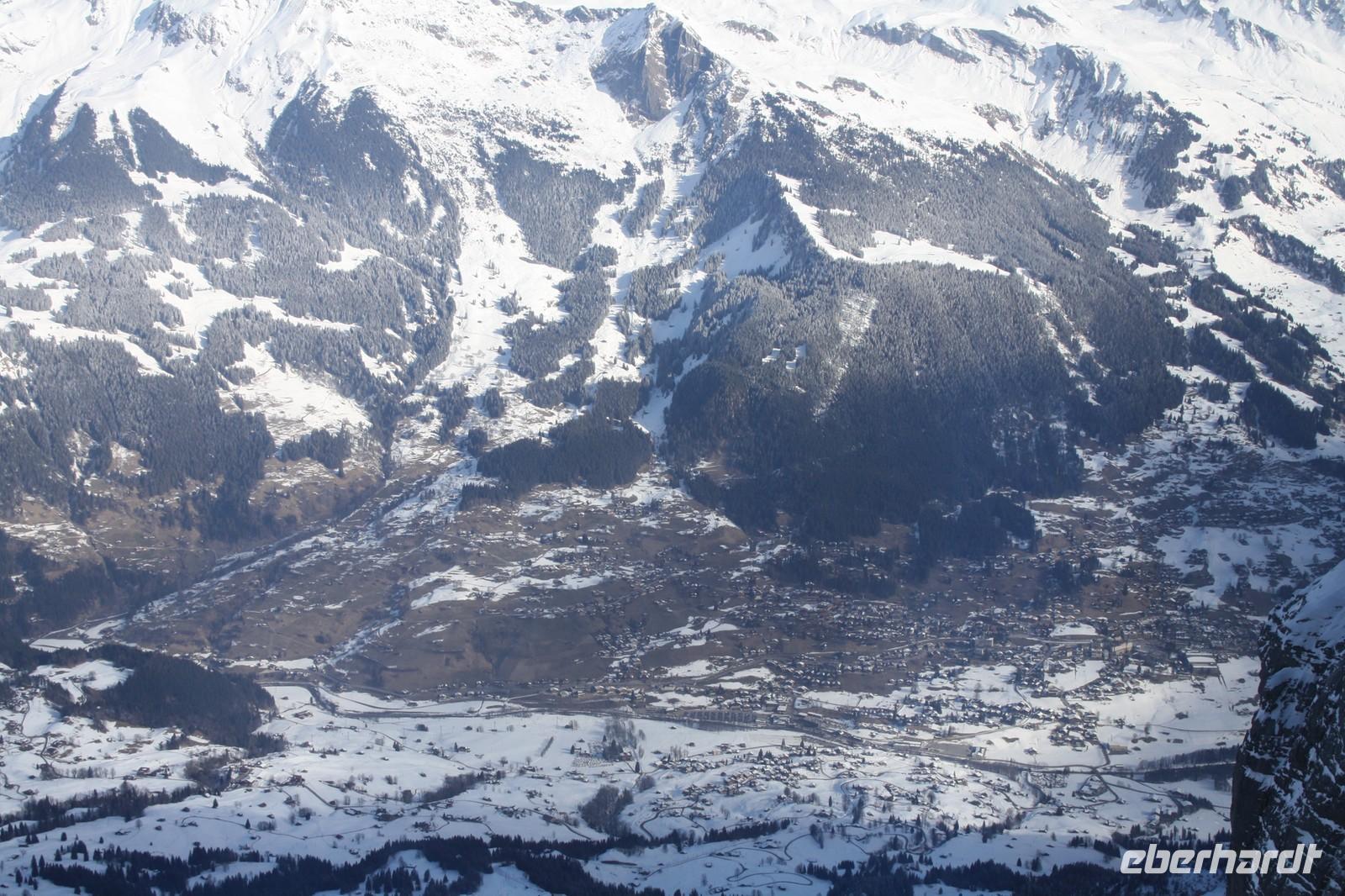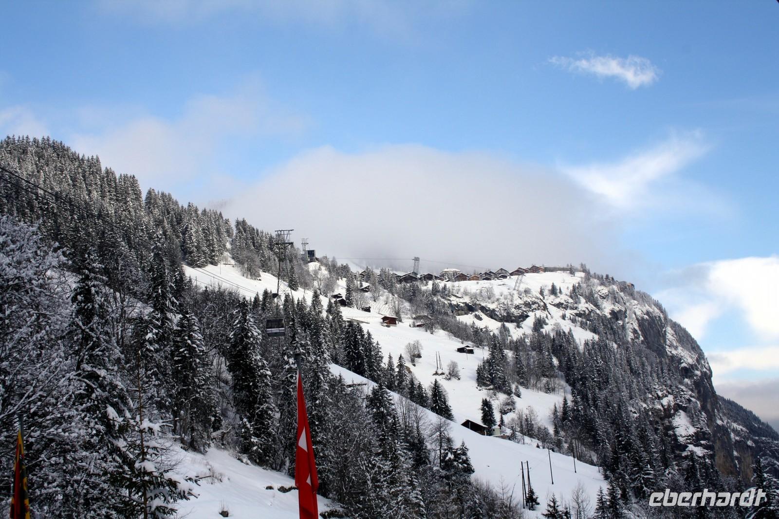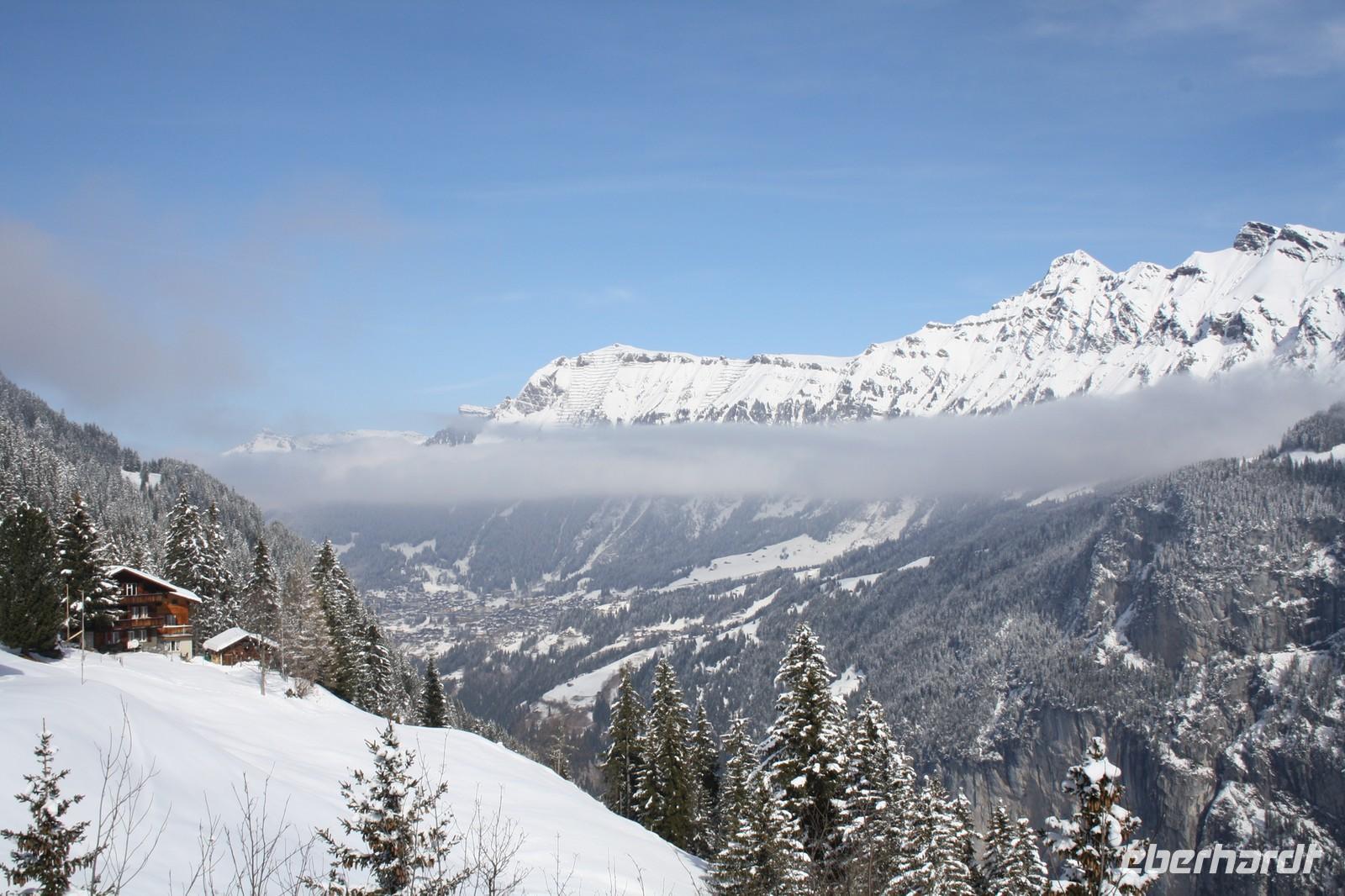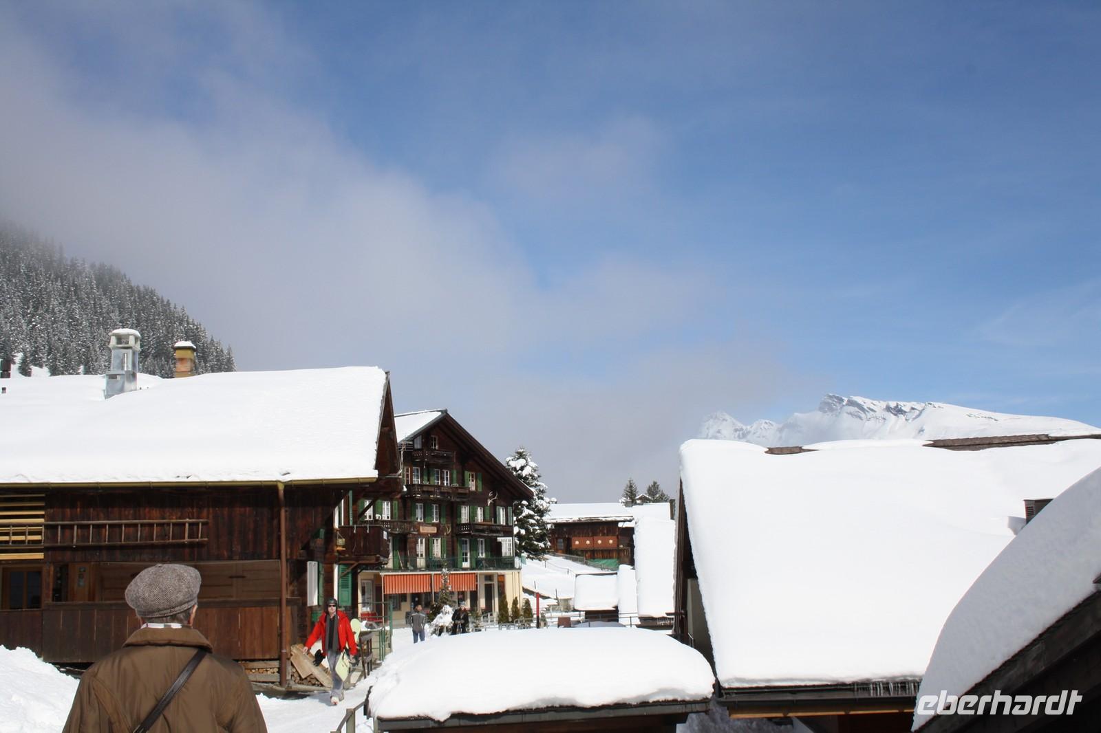 Einen Stopp legten wir in Mürren ein und spazierten bei herrlichem Winterwetter durch den Ort und genossen die Sonne und den Blick ins Lauterbrunnental sowie das "Dreigestirn".
