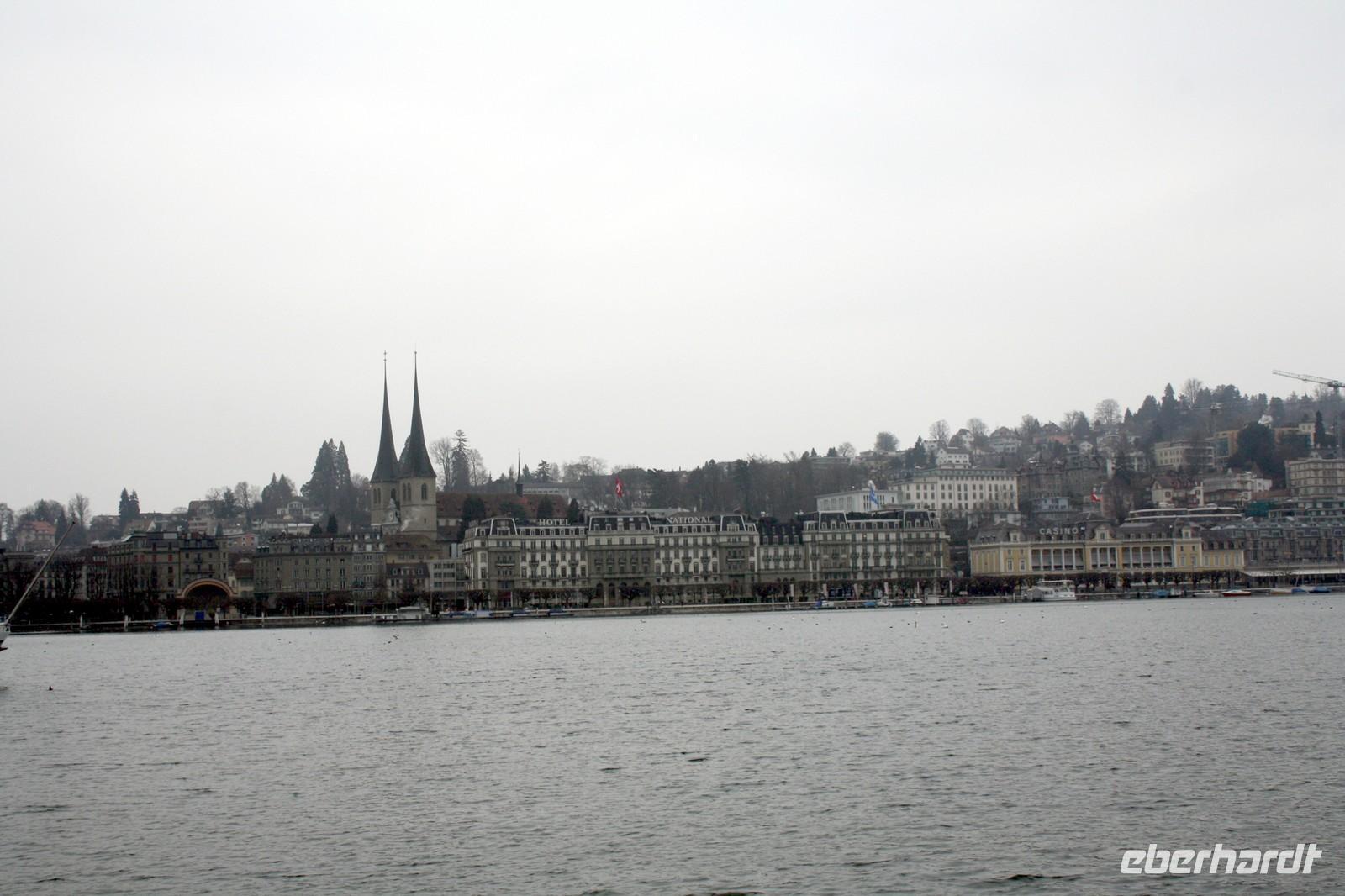 Die Fahrt nach Luzern führte durch das Haslital, über den Brünigpass (1008 Meter) nach Luzern. Leider war die Sicht nicht optimal, denn dunkle Wolken und dicker Nebel hingen am Himmel. Aber Frau Weise konnte uns wieder mit Wissenswertem wie z.B.