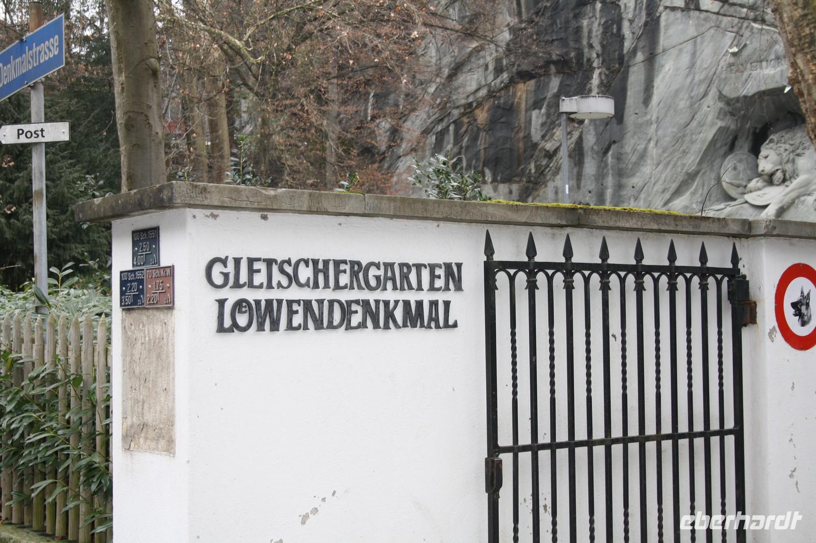 Nicht weit vom Panorama entfernt besichtigten wir das Löwendenkmal. Der sterbende Löwe erinnert an die 1792 beim Tuileriensturm in Paris gefallenen Schweizergardisten. Die Inschrift zeigt die Namen der gefallenen und geretteten Offiziere der Schweizergarde und gibt die ungefähre Opferzahl (DCCLX = 760) und die ungefähre Anzahl der überlebenden (CCCL = 350) Soldaten an.