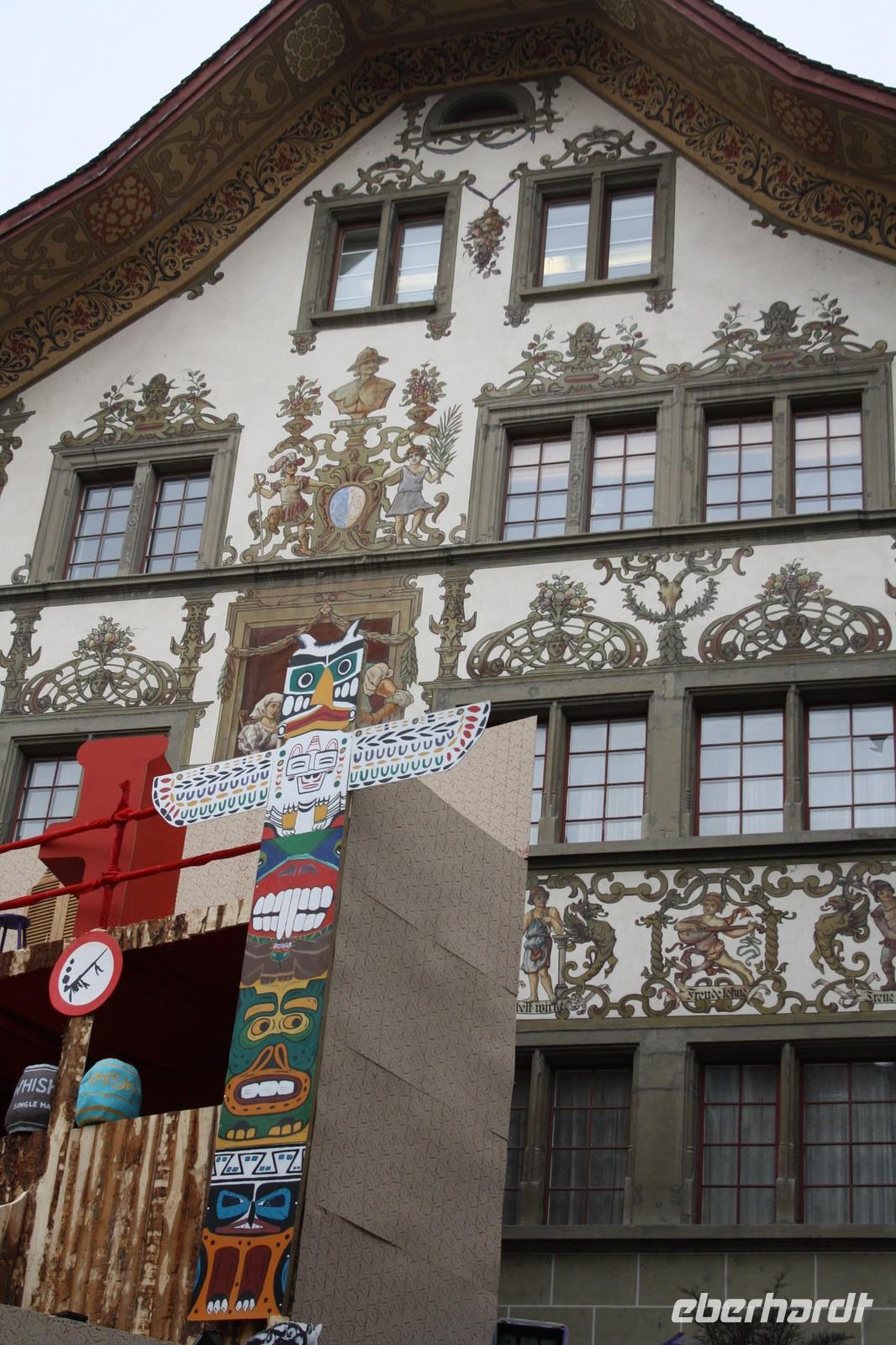 Weiter ging es in die Altstadt. Die wichtigsten Sehenswürdigkeiten sind sicherlich das Rathaus am Rathausplatz, die Brunnen am Kappellplatz und auf dem Kornmarkt. Alte, schön bemalte Häuser finden sich überall in der Altstadt. Außerdem stand die Altstadt ganz im Zeichen der am nächsten Tag beginnenden Fastnacht.