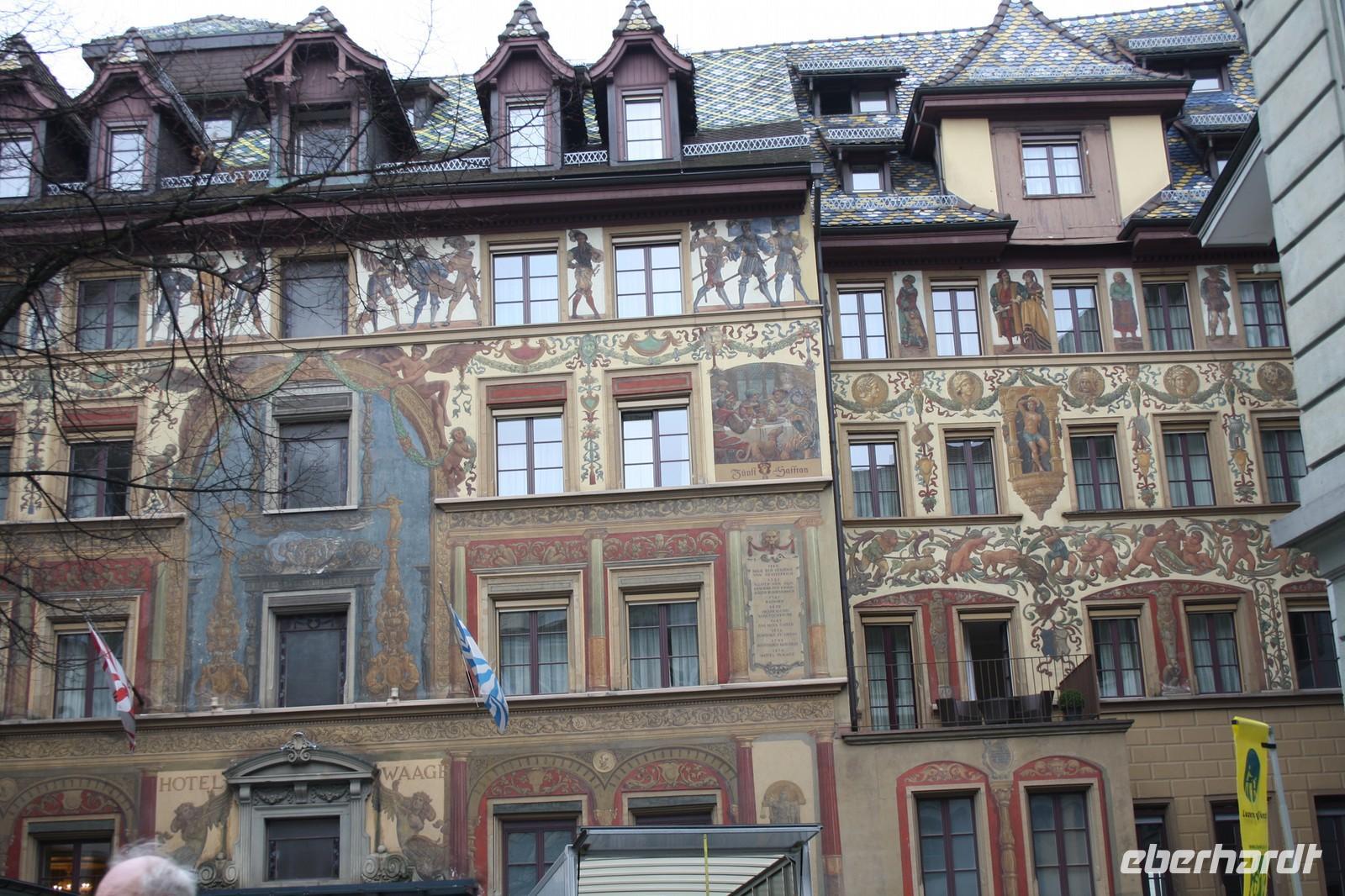 Die Jesuitenkirche, der erste sakrale Bauwerk im Barockstil in der gesamten Schweiz, war nun unser Ziel. Hier befindet sich die Originalkutte des Schweizer Heiligen, Bruder Klaus. Wir besichtigten das Innere, erfuhren aus der Geschichte dieser Kirche und wärmten uns bei der Gelegenheit etwas auf. Nach dem zweistündigen Stadtrundgang konnte jeder Gast Luzern selbständig erkunden. Die Einen labten sich in einem der vielen Cafes, die Anderen gingen shoppen und eine kleine Gruppe besuchte die Sammlung Rosengart. Dort werden Bilder der privaten Sammlung der Familie Rosengart ausgestellt. Es waren weit über 300 Werke von Pablo Picasso, Joan Mirò, Marc Chagall, Henri Matisse, Georges Braque, Fernand Lèger und Paul Klee zu sehen.