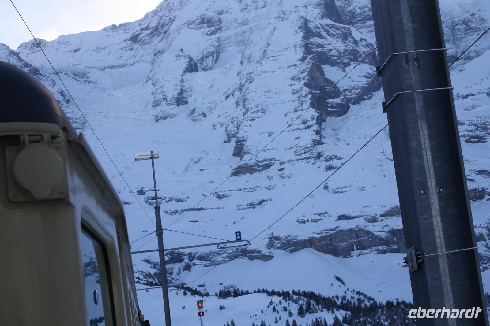 An diesem Tag blieb unser Bus stehen, denn das Ziel war das Jungfraujoch (3454m). Vom Bahnhof Interlaken-Ost stiegen wir in den reservierten Waggon der Jungfraubahn nach Lauterbrunnen. Hier hieß es umsteigen in den Zug zur Kleinen Scheidegg.