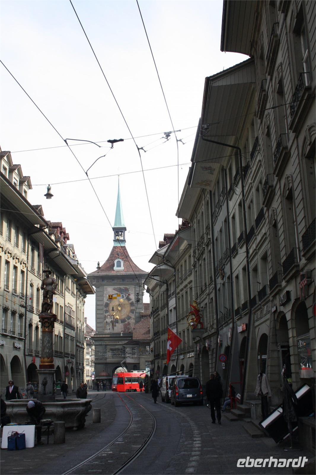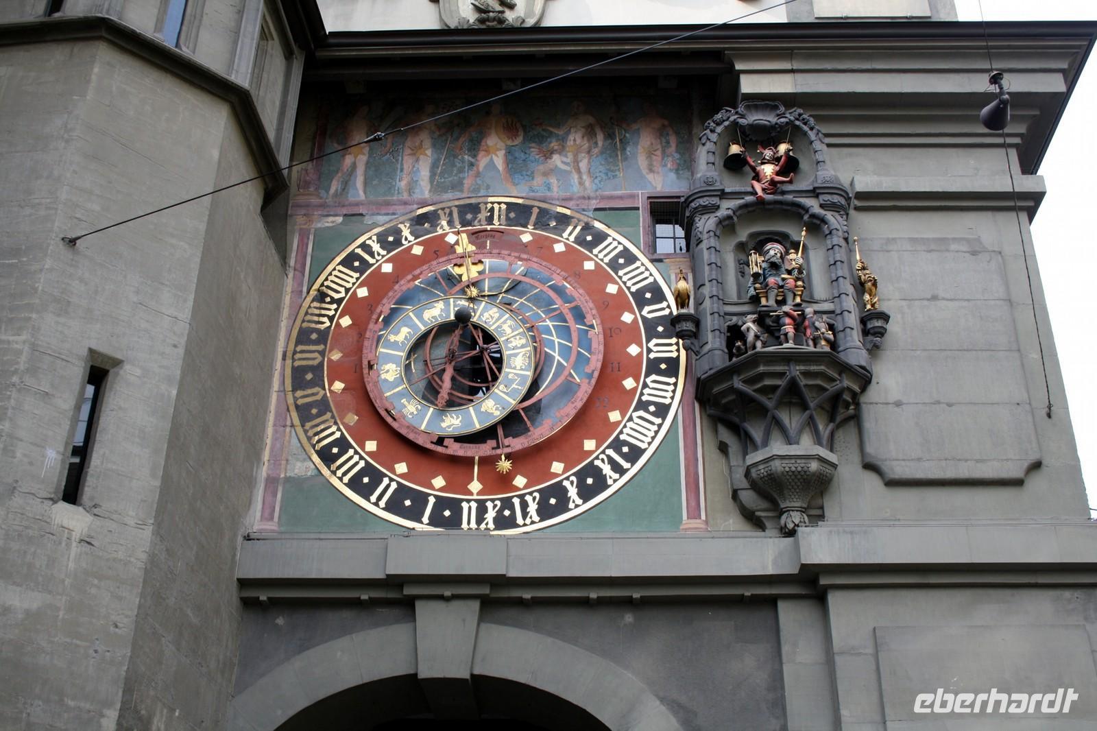 Am Casinoplatz stiegen wir aus dem Bus und liefen zum Zytglogge. Die Stundenschläge, beide Turmuhren, das Figurenspiel und die astronomische Uhr werden von einer gemeinsamen Mechanik angetrieben. Über dem Tordurchgang befindet sich die astronomische Uhr von 1405.