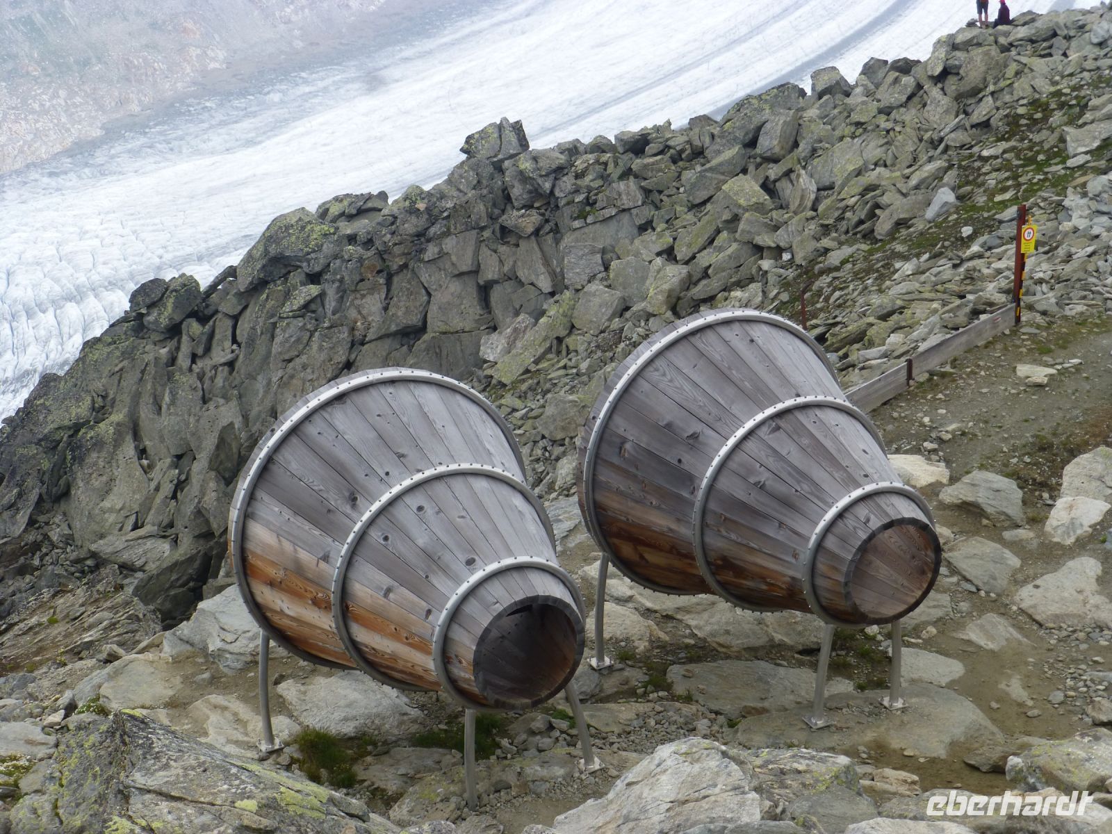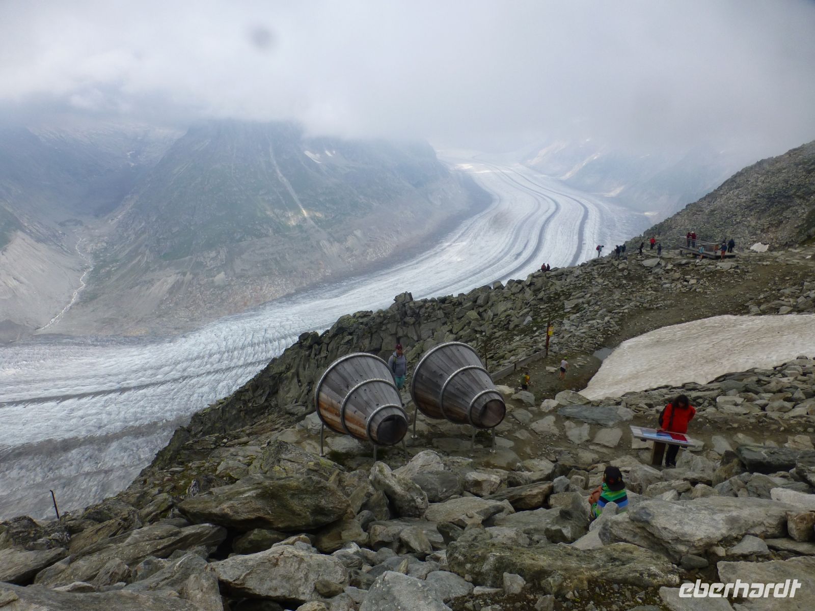 Beeindruckend ist der Blick vom Ausguck über den Aletschgletscher. Man schaut bis zum Eggishorn, wo wir vor einigen Tagen standen, fasziniert von der Natur und dem Gletscher. Es ist ausreichend Zeit, alles anzusehen, doch die Natur schlägt alle vom Menschen ersonnen Attraktionen, die unter „Fun“ summiert werden können.