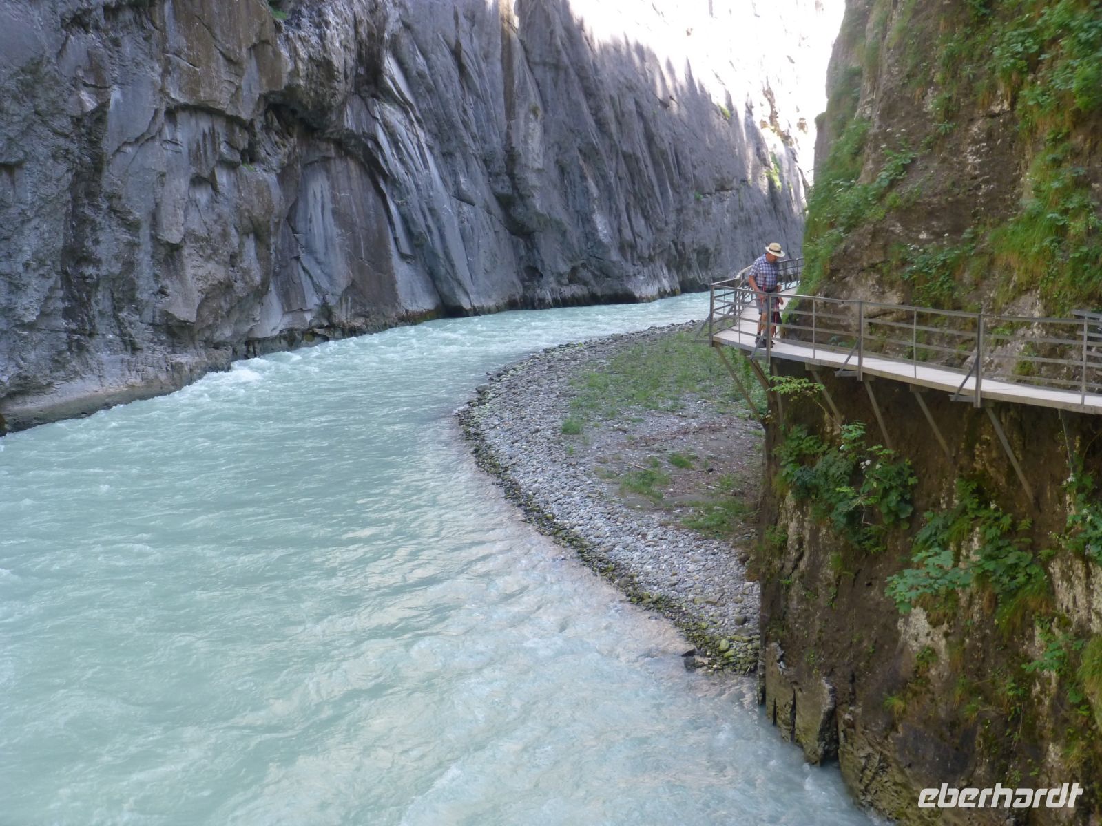 Die nächste Station ist die Aareschlucht. Die Aare ist der wasserreichste Zufluss des Rheins. Mehr als Mosel und Main zusammen. Die Schlucht ist 200 Meter tief und über Stege, die im Fels verankert sind, zu erleben. Ein Naturschauspiel – wir nehmen einen Ausschnitt wahr in rund einer Stunde. Ein Wimpernschlag in der Erdgeschichte.