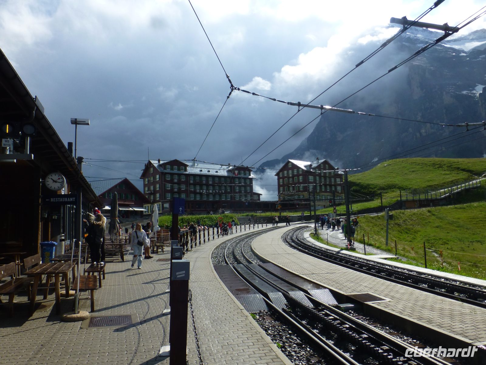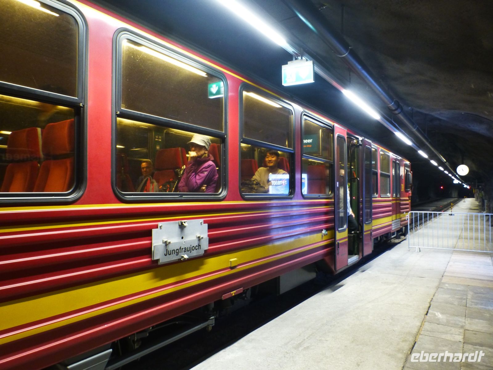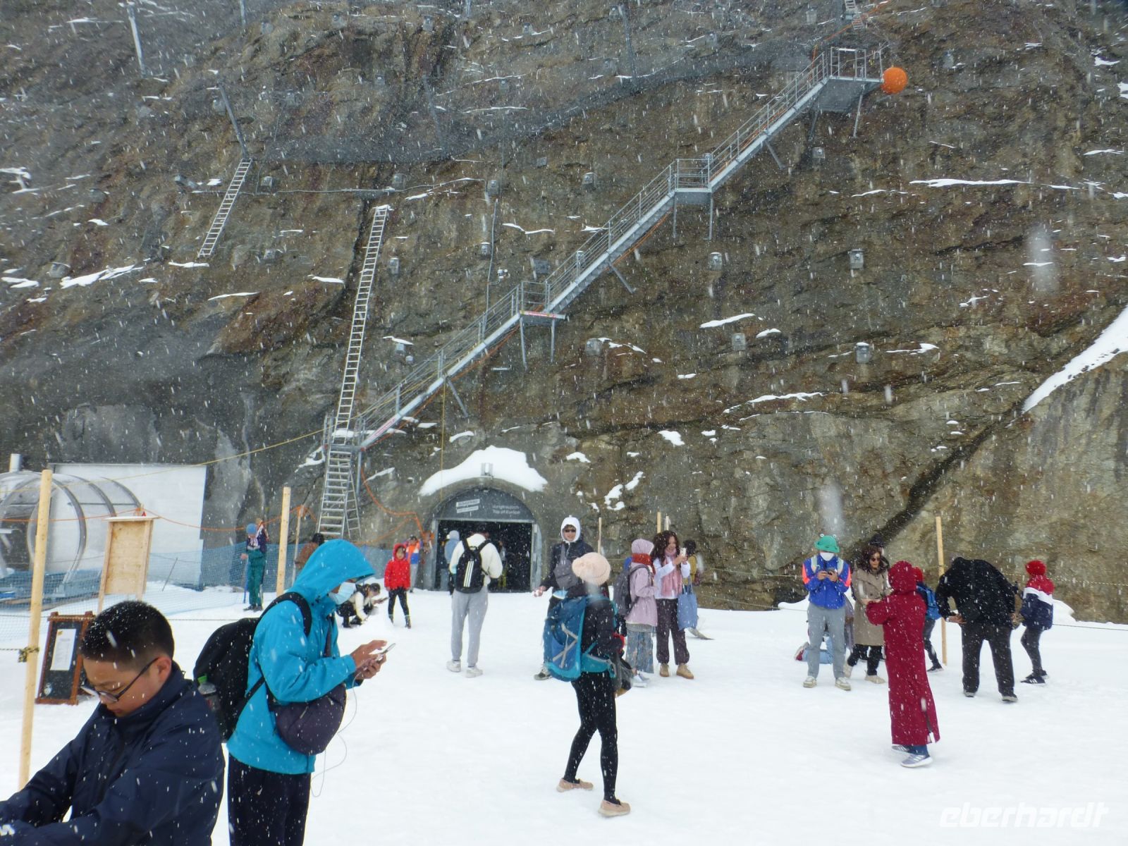 Die Logistik der Bahn ist bemerkenswert. Alles ist getaktet und aufeinander abgestimmt. Wir sind oben und verstreuen uns, sehen uns erst um 14.30 Uhr für die Abfahrt wieder. Es ist unglaublich, was für große Räume in den Fels gehauen worden ist, um das Ziel noch attraktiver zu machen. Allein die Fahrt ist eine technische Meisterleistung, denn rund 10 km führen auf der Innenseite der Eiger Nordwand nach oben. 1912 ist die Strecke eröffnet worden. Welche Vision, über zehn Jahre an dieser Strecke zu bauen.