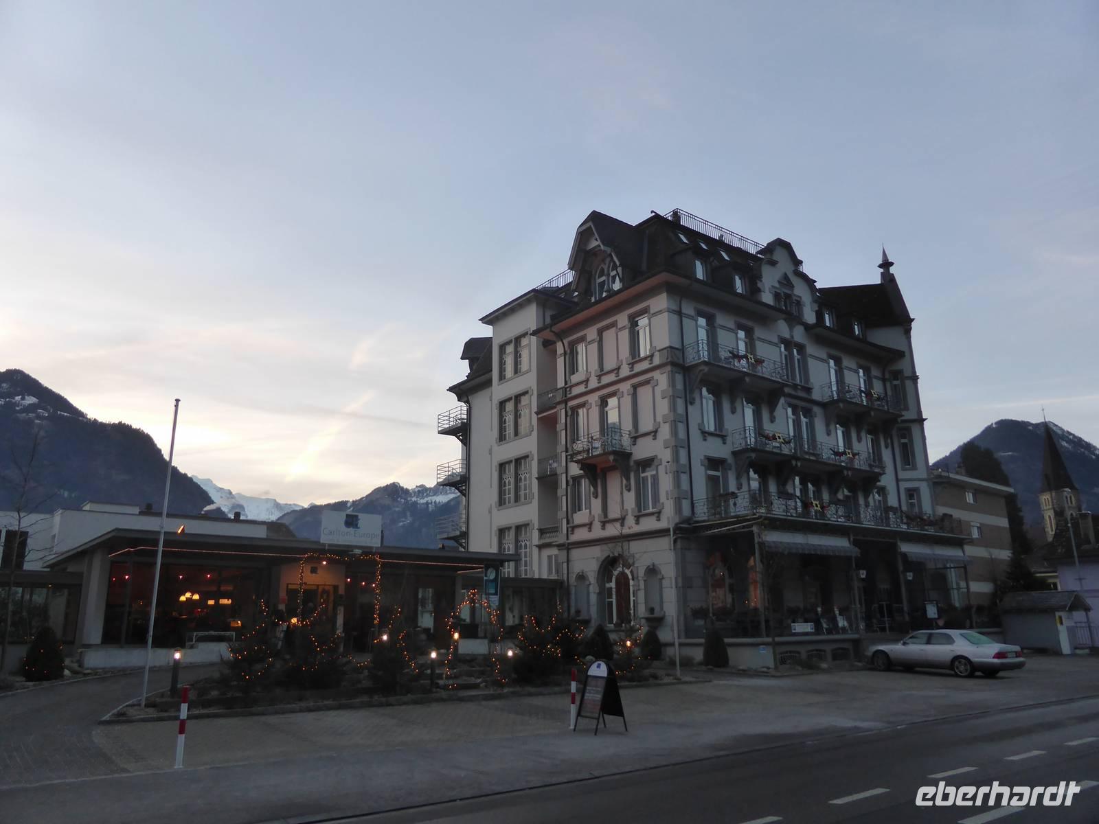 In Dresden starteten die ersten Gäste zur Weihnachtsreise von Eberhardt Travel im 5 - Sterne - Bus der Firma Wies Faszinatour mit ihrem Chauffeur Bernd Ihle sowie ihrer Reiseleitung Claudia Bernhardt. Wir reisten vorbei an Bayreuth und Nürnberg nach Ulm, wo die Reisegruppe mit 18 Personen vollzählig war. Die Weiterreise führte uns bei schönstem Wetter durch das Appenzeller sowie Glarner Land vorbei am Walen- und Zürichsee Richtung Luzern. Nachdem wir den Brünigpass passiert hatten, erreichten wir unser Domizil für die kommenden Tage - das Hotel Carlton Europe in Interlaken. Sehr herzlich wurden wir durch das Hotelpersonal empfangen und bezogen unsere Zimmer. Zum Abendessen vervollständigte sich dann unsere Reisegruppe mit unserem Gast aus Hamburg.