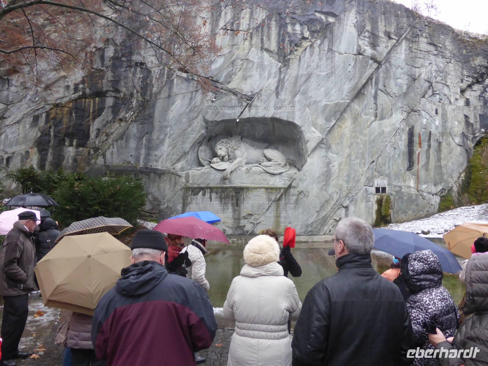 Durch eine Winterlandschaft reisten wir über den Brünigpass vorbei am Lungern See und am Sarner See nach Luzern. Aus den weißen Flocken wurden leider Regentropfen, die nicht nachlassen wollten. Wir ließen uns davon nicht beeindrucken und starteten mit unserer örtlichen Reiseleitung Susy Hofstätter zur Stadtführung. Mit dem Bus fuhren wir zum Löwendenkmal und Susy erzählte uns die Geschichte zur Entstehung des Denkmals. Kurzen Unterschlupf vor dem Regen fanden wir im Bourbaki Museum. Während des Stadtrundgangs sahen wir die bemalten Häuser der Luzerner Altstadt, zahlreiche Brunnen, die Kapellbrücke sowie die Jesuitenkirche. Während unserer Freizeit konnten wir durch Luzern ohne Regen bummeln. Nach einiger Zeit zur freien Verfügung kehrten wir in das mittlerweile winterliche Interlaken zurück.