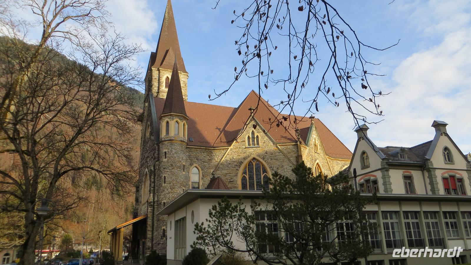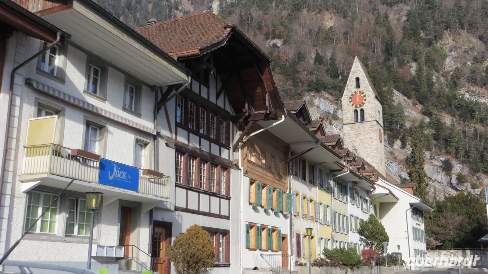 Nach dem späten Frühstück erwartete uns unsere Ortsführerin zu einem sehr informativen Rundgang durch Interlaken und Unterseen. Bei wiederum herrlichstem Wetter spazierten wir zunächst zum ehemaligen Kloster und schauten in die evangelische Kirche. Unsere Ortsführerin erzählte uns viele Episoden aus der wechselvollen Geschichte des Klosters. Weiter führte uns der Rundgang über den Höheweg vorbei an der Höhematte. Diese große Wiese hatten 1864 weitsichtige Hoteliers und Bürger aus Interlaken vom Kanton Bern abgekauft und ein ewiges Bauverbot in das Grundbuch eintragen lassen. Dadurch war gewährleistet, dass eine uneingeschränkte Sicht auf die Jungfrau bis heute möglich ist. Nun zeigte uns unsere Ortsführerin den Kursaal und den alten Ort Unterseen. Diese alte Zähringerstadt besticht noch heute mit den schönen alten Häusern. Den Nachmittag verbrachten wir ganz individuell in Interlaken. Es war viel los im Ort. Ein Open-Air-Konzert sorgte für Stimmung und wir sahen Alphornbläser und eine Guggemusi-Gruppe.