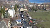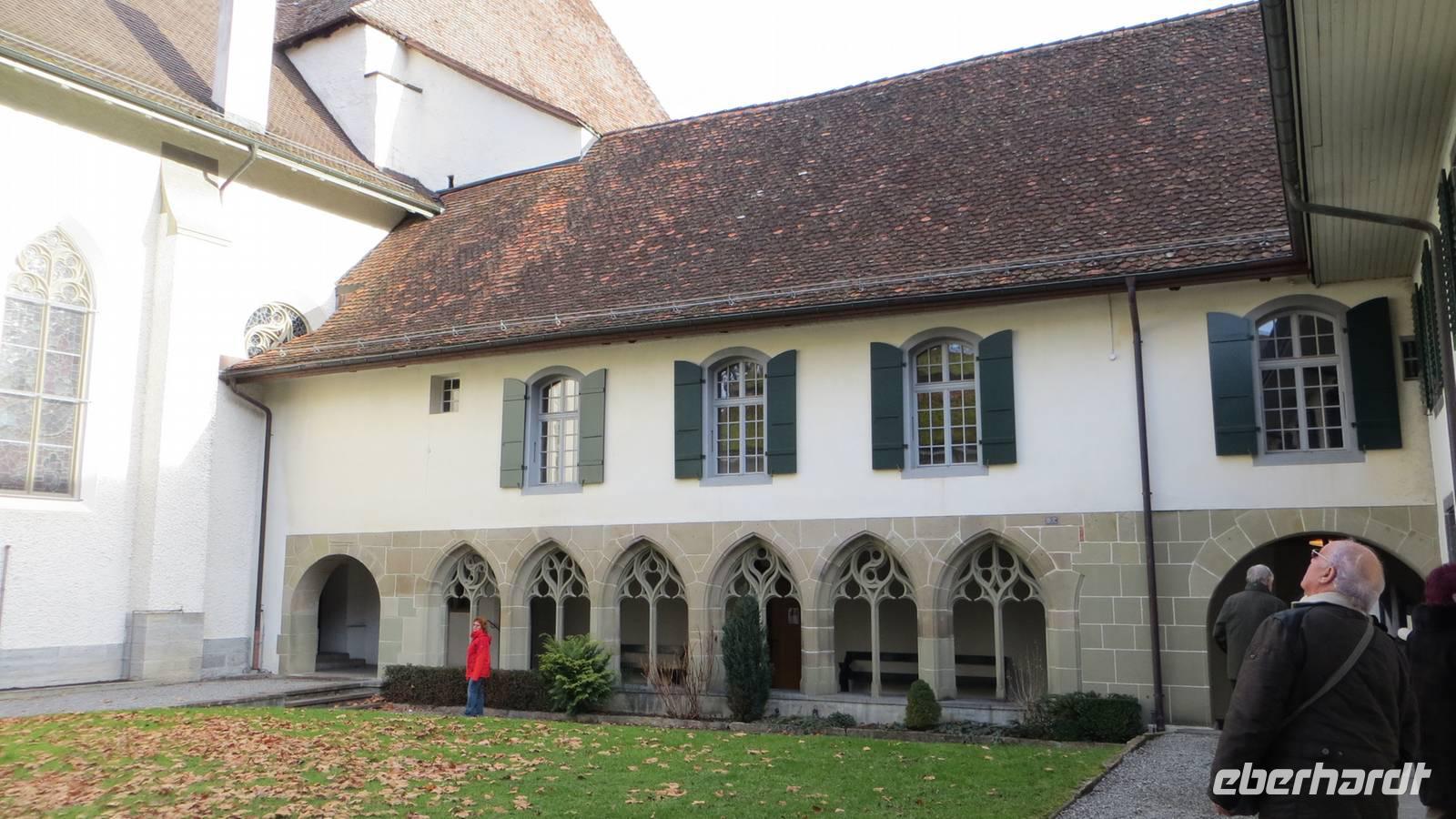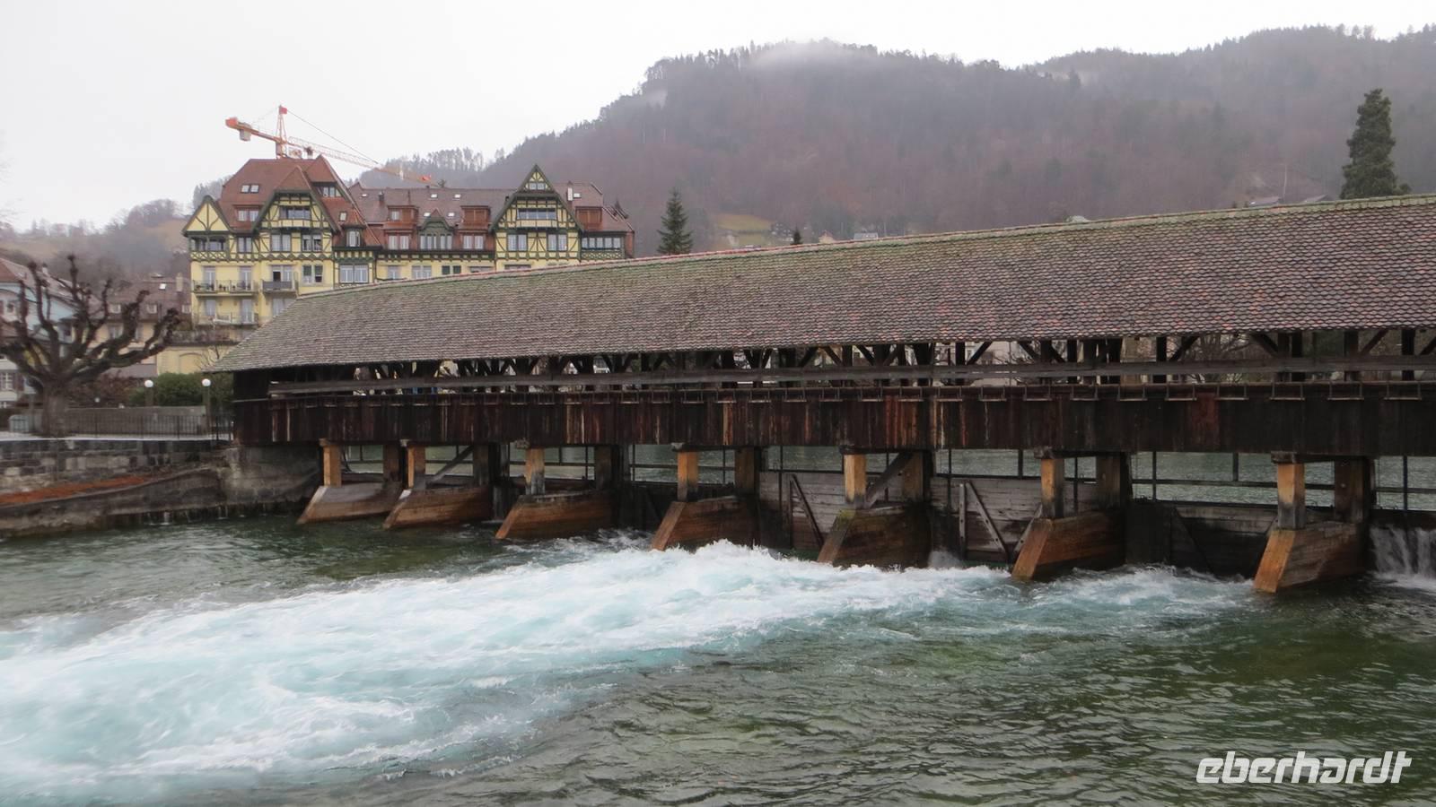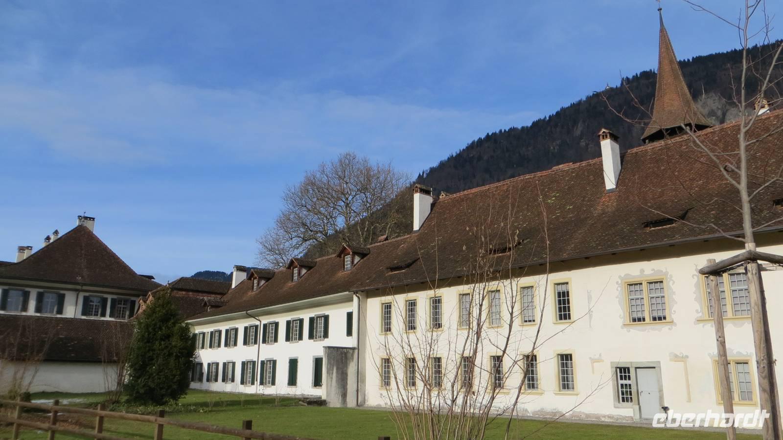 Nach dem Frühstück fuhren nach Thun. Leider regnete es sehr stark. Am Bahnhof in Thun erwarteten unsere Stadtführerinnen. Sie vermittelten uns sehr anschaulich die Geschichte der alten Zähringerstadt. Wir spazierten in zwei Gruppen durch die schöne Altstadt. Wir sahen die Hauptgasse mit den Laubengängen, den Rathausplatz mit den majestätischen Bürgerhäusern. Eine Gruppe stieg zum Schloss hinauf und besuchte die Stadtkirche. Am Mühlenplatz erfuhren wir die Geschichte der alten Mühlen. Nun waren wir ordentlich durchgefroren, denn der Regen hatte zwar aufgehört aber inzwischen blies ein ganz kalter Wind. Günther erwartete uns bereits mit Glühwein am Bus. Entlang des Nordufers des Thuner Sees kehrten wir nach Interlaken zurück. Am Nachmittag fand in Interlaken ein besonderes Spektakel statt: die Harder-Potschete. Dieser alte Brauch geht zum einen auf die Sage vom Hadermannl zurück. Demnach soll ein Mönch aus dem Kloster Interlaken einem jungen Mädchen, welches auf dem Hader Holz sammelte, nachgestellt sein. In ihrer Not sprang das Mädchen in die Tiefe. Zur Strafe wurde der Mönch zu Stein und muss nun für immer auf den Ort seiner Schandtat hinabschauen. In der Felswand am Hader kann man das Gesicht des Hadermännli erkennen. Diese Sage und heidnische Bräuche zum Neuen Jahr bildeten die Grundlage für die heutige Harder-Potschete. Mit kunstvoll geschnitzten Masken und Kostümen aus Fellen und Naturmaterialien zog das Hardermännli mit seinem Wybl begleitet von Kindern mit selbst gebastelten Masken und Kostümen durch Interlaken. Trychler-Gruppen und Gugge-Musi begleiteten den Zug. Auf dem Marktplatz wurden die Gruppen nochmal präsentiert. Wir konnten Brauchtum und die Begeisterung dafür hautnah erleben. Am späten Nachmittag unternahmen wir entlang der Ache einen gemütlichen Fackelspaziergang. Ganz romantisch tauchten die Berge und der Ort ins Dämmerlicht bis es endgültig dunkel wurde. Im Hotel wärmten wir uns bei Glühwein und Punsch auf, bevor uns wieder ein ausgezeichnetes Abendessen gereicht wurde.