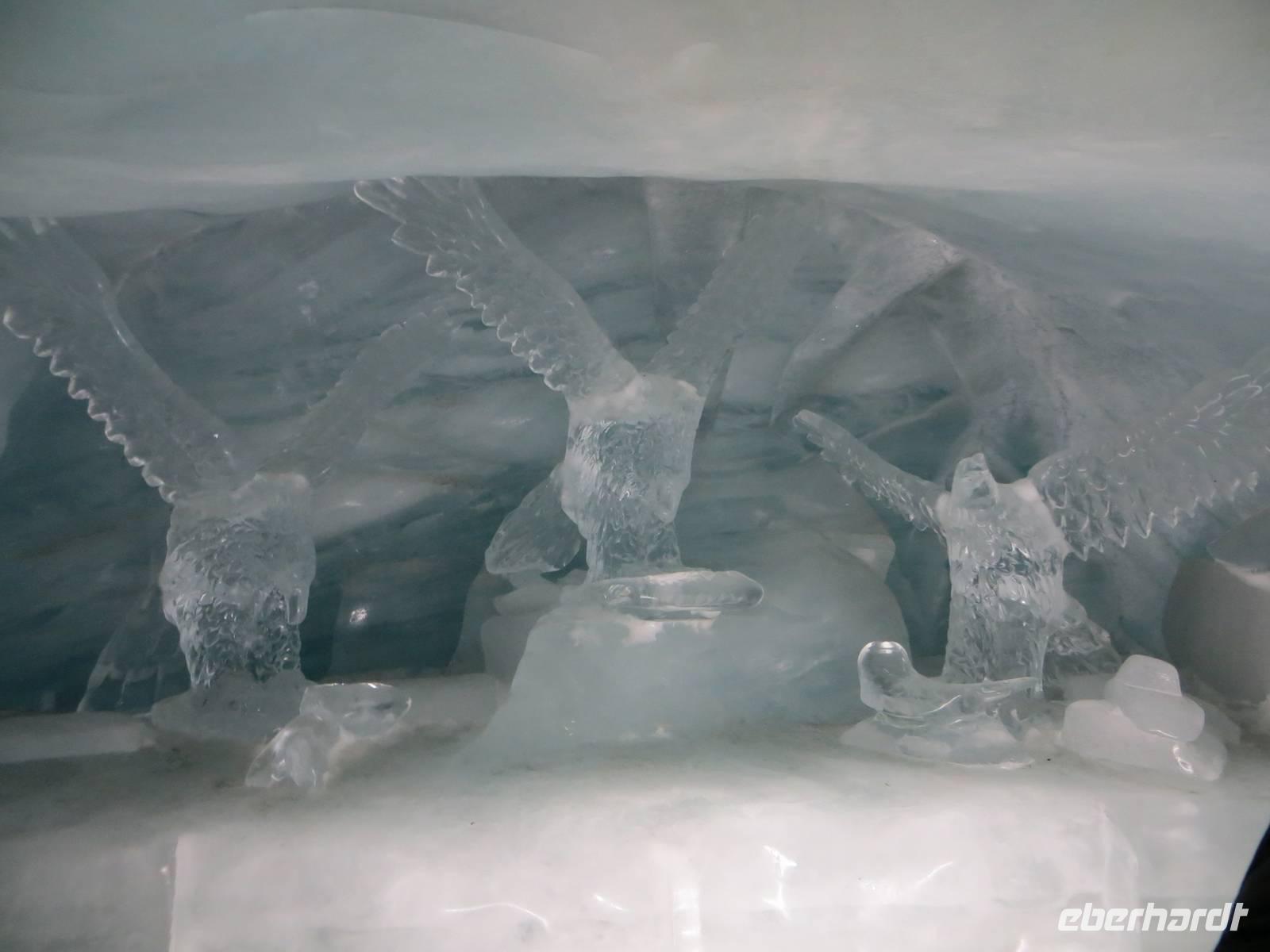 Nach dem Frühstück begannen wir unseren Ausflug auf das Jungfraujoch. Wir fuhren zunächst mit dem Bus nach Grindelwald-Grund. Mit der Jungfraubahn fuhren wir durch ein wirkliches Winterwunderland auf die Kleine Scheidegg. Dabei boten sich uns immer wieder schöne Blicke in die tief verschneite Landschaft. Leider waren die Berge jedoch in dicken Wolken versteckt. Auf der Kleinen Scheidegg stiegen wir in die Bahn Richtung Jungfraujoch. Nun ging es durch den Eiger hinauf in den ewigen Schnee. Unterwegs legte die Bahn einen Stopp in der Eigerwand und am Eismeer ein. Im Felsen sind große Fester eingebaut, durch die wir einen Blick in die Eiger-Nordwand und auf den Gletscherabbruch des Eismeeres werfen konnten. Allerdings verdeckte uns auch hier wieder Schneetreiben und Nebel die klare Sicht. Auf dem Jungfraujoch in 3.454 Metern Höhe angekommen, blieb uns leider die Sicht auf Jungrfau, Mönch und die anderen Berge bis ins Wallis versagt. Wir ließen uns kurz den Wind um die Nase blasen auf der Aussichtsplattform der Sphinx in 3.571 Metern Höhe. In der Alpinen Sensation konnten wir die Geschichte des Baues der Jungfraubahn von der Idee durch Adolf Geyer-Zeller bis zur Fertigstellung 1912 erleben. Auf dem Plateau blies der Wind den Schnee so stark durch die Luft, dass man Mühe hatte, überhaupt stehen zu können. Deshalb hielten wir uns hier auch nicht lange auf. Also setzten wir unseren Rundgang im Eispalast fort. Hier fühlten wir den Gletscher hautnah und sahen die schönen Eisplastiken. Dabei machten wir eine interessante Entdeckung: im klaren Eis sahen wir eine Schicht Sägespäne. Diese waren 1947 als Schutz vor der starken Sonneneinstrahlung auf den Gletscher aufgebracht worden. Jetzt ist diese Schicht 40 Meter unter der Gletscheroberfläche im Eispalast wieder zu sehen. Mit einzigartigen Eindrücken fuhren wir mit Zug zurück auf die Kleine Scheidegg und nach Lauterbrunnen. Am Bus erwartete uns Peter, unser Chauffeur, bereits mit einem Becher Glühwein. Anschließend kehrten wir nach Interlaken zurück.