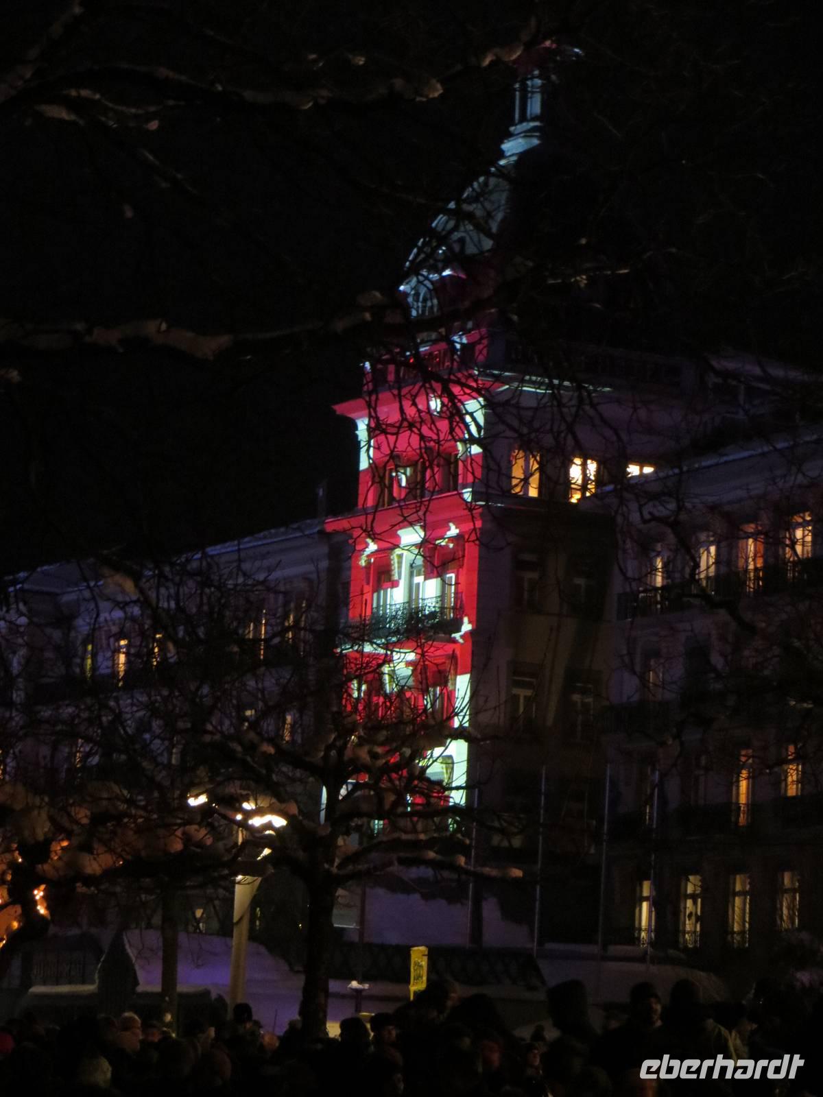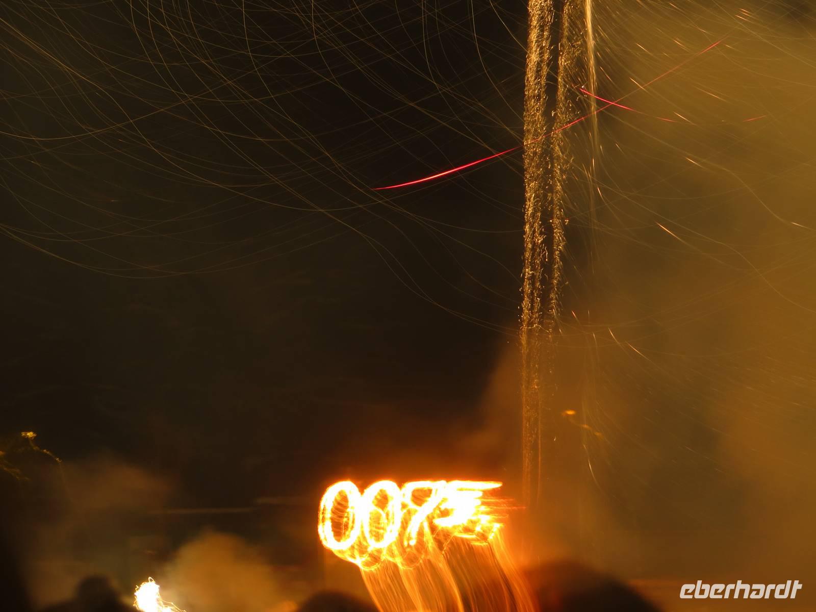Das Abendessen nahmen wir etwas früher als sonst ein. Anschließend bummelten wir zur Höhematte im Zentrum von Interlaken. Dort fand ein fantastisches Höhenfeuerwerk als Pyromusical statt. Es stand unter dem Motto „James Bond 007". Begleitet von bekannten Melodien aus den Filmen stiegen atemberaubende Farbenspiele in den Neujahrshimmel auf. Mit diesem Spektakel begrüßten Interlaken-Tourismus und die Schilthornbahn ihre Gäste im Neuen Jahr.