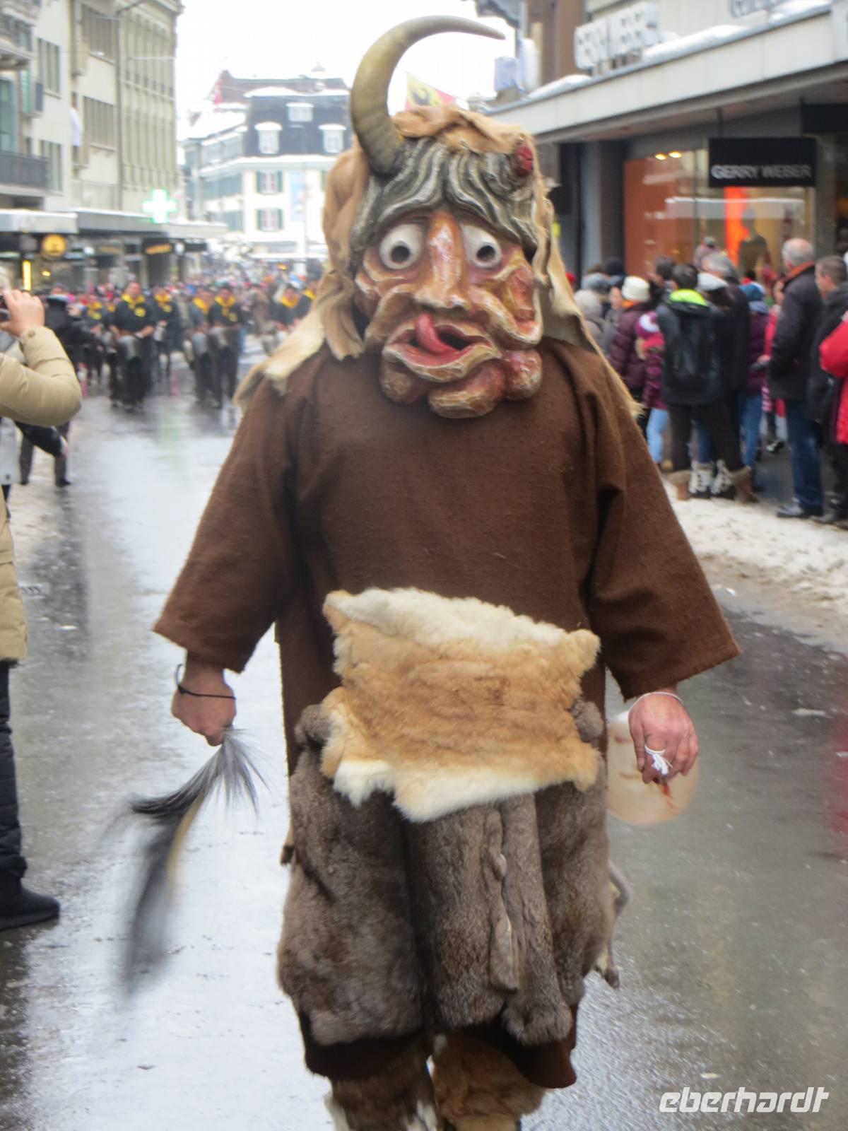 Nach dem Frühstück fuhren nach Grindelwald. In Interlaken lag noch der Nebel im Tal, aber in Grindelwald begrüßte uns bereits die Sonne. Einige Gäste spazierten durch den Wintersportort und erstanden noch das eine oder andere Mitbringsel. Ein Großteil der Gäste entschied sich für die Fahrt mit der Gondelbahn auf den First in 2.168 Metern Höhe. Während der 25minütigen Bahnfahrt sahen wir Gämsen und konnten bereits die herrliche Landschaft genießen. Auf dem First angekommen bot sich uns ein traumhaftes Panorama der Berner Alpen. Wir sahen den Eiger mit seiner imposanten Nordwand, die Jungfrau, das Schreckhorn, das Wetterhorn und viele weitere herrliche Berge. Wir konnten die vielen Skifahrer beobachten und die herrliche Winterlandschaft genießen. Anschließend fuhren wir nach Interlaken zurück. Am Nachmittag fand hier ein besonderes Spektakel statt: die Harder-Potschete. Der alte Brauch geht zum einen auf die Sage vom Hadermannl zurück. Demnach soll ein Mönch aus dem Kloster in Interlaken einem jungen Mädchen, welches auf dem Hader Holz sammelte, nachgestellt haben. In ihrer Not sprang das Mädchen über den Abgrund in die Tiefe. Zur Strafe wurde der Mönch zu Stein und soll nun für immer auf den Ort seiner Schandtat hinabschauen. In der Felswand am Hader kann man das Gesicht des Hadermannl sehen. Diese Sage und heidnische Bräuche zum Neuen Jahr sind der Ursprung für die heutige Harder-Potschete. Mit kunstvoll aus Holz geschnitzten Masken und Kostümen aus Fellen und Naturmaterialien zog das Hardermannl mit seinem Wybl begleitet von Kindern mit selbst gebastelten Masken und Kostümen durch Interlaken. Trychler-Gruppen mit ihren großen Trychlern - Glocken - und Gugge-Musi-Kapellen begleiteten den Zug. Wir konnten Brauchtum und die Begeisterung dafür, mit welcher die Tradition heute noch gepflegt wird, hautnah erleben. Am späten Nachmittag wollten wir entlang der Ache einen gemütlichen Fackelspaziergang unternehmen. Leider fiel dieser im wahrsten Sinne des Wortes ins Wasser, denn es hatte angefangen zu regnen. So entschieden wir uns, nicht aufzubrechen, denn es drohte auch wieder glatt zu werden. Vor dem Abendessen lud uns das Hotelpersonal zu einem Apero mit Weißwein und leckerem hausgemachten Punsch und Plätzchen ein. In gemütlicher Runde plauderten wir miteinander und ließen die letzten Tage nochmals Revue passieren.
