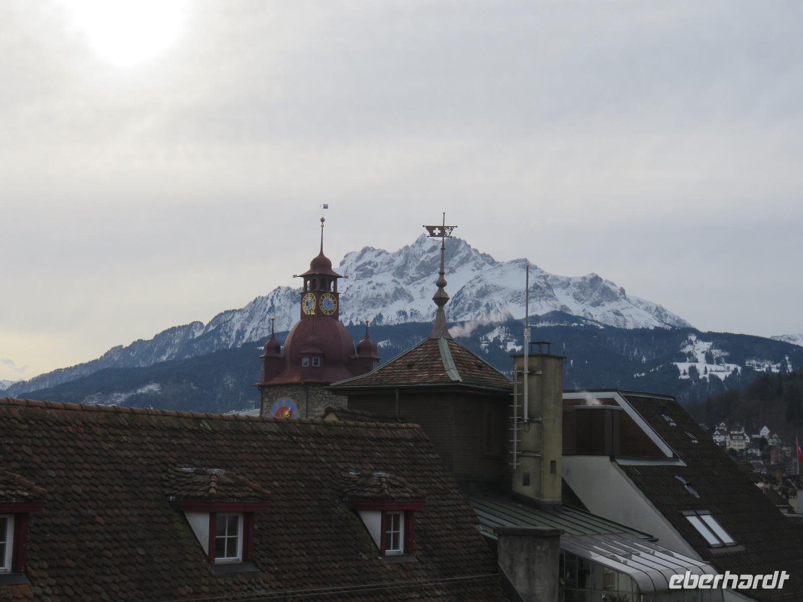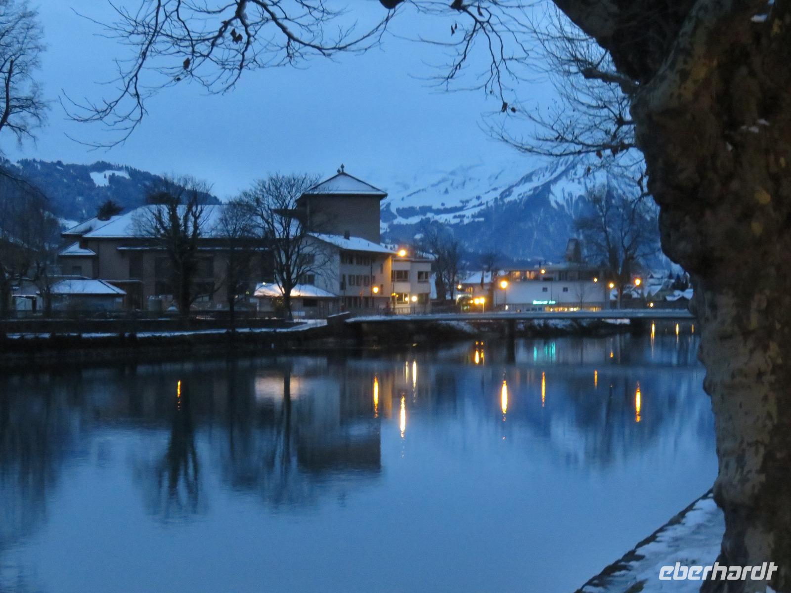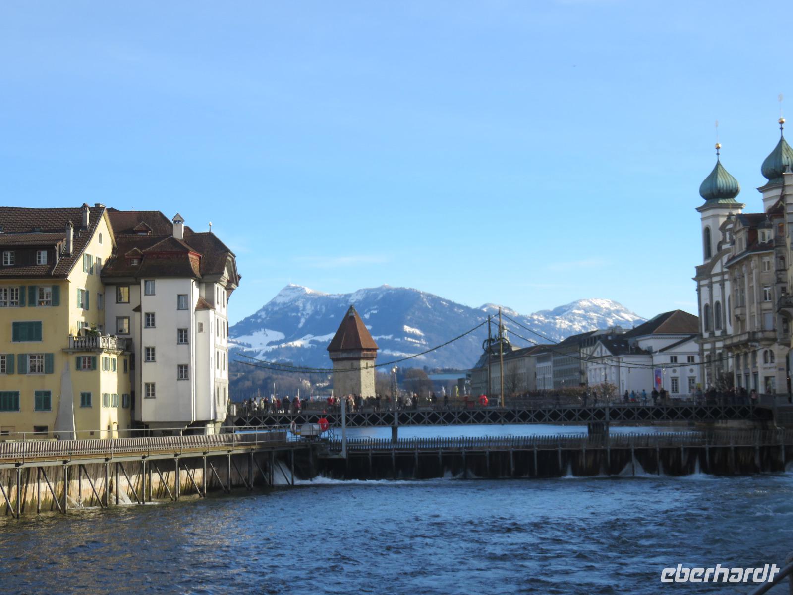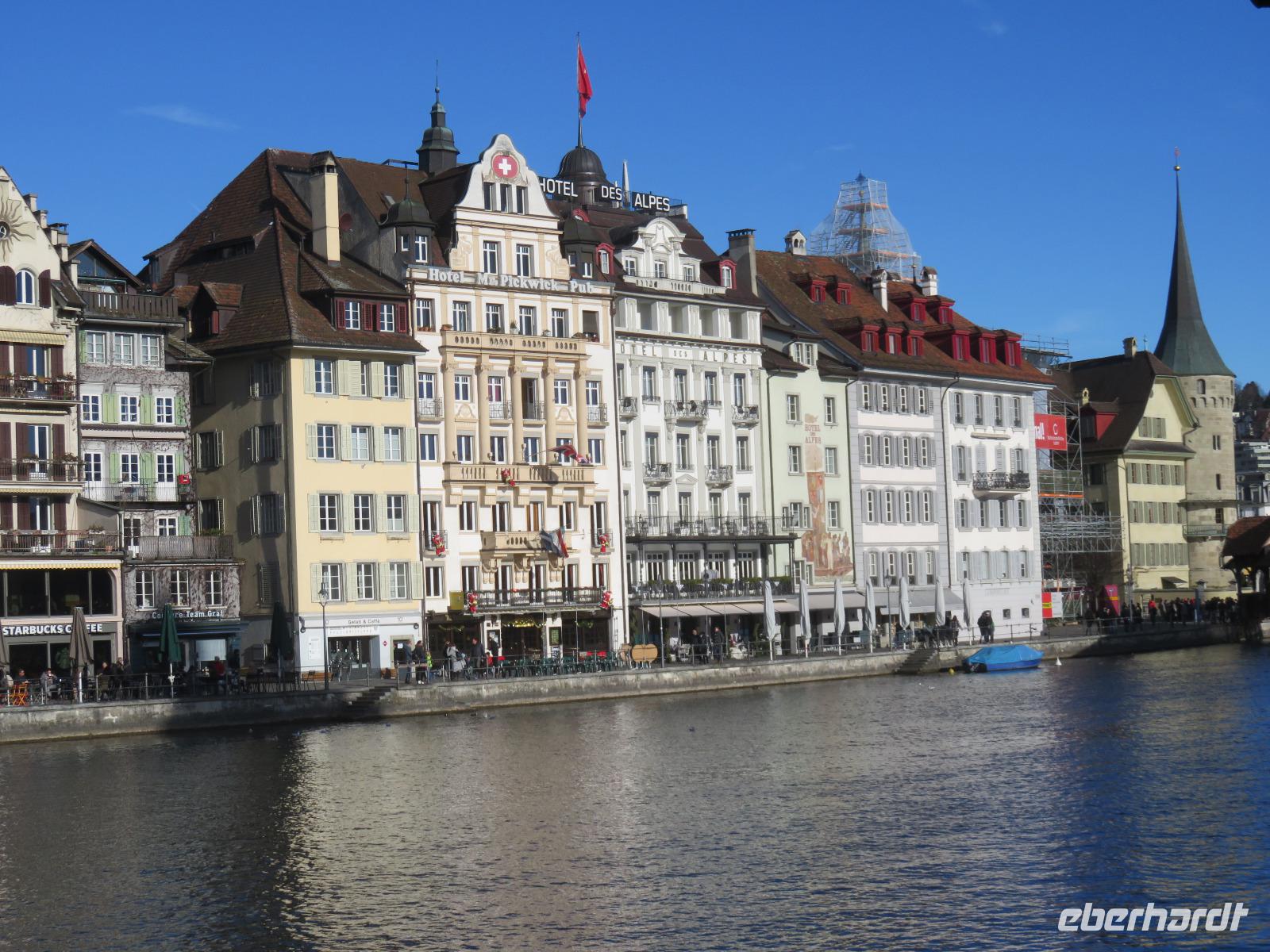 Als wir heute erwachen, begrüßt uns die Sonne. Wir beginnen gut gelaunt unseren Ausflug nach Luzern. Zunächst fahren wir vorbei am Brienzersee und durch das Haslital entlang der Aare Richtung Brünigstraße. Nun heißt es für unseren Bus wieder klettern. Die schneebedeckten Berge liegen im strahlenden Morgenlicht. Ein faszinierender Anblick der uns begeistert. Auf der anderen Seite des 1.007 Meter hohen Brünigpaßes fahren wir wieder hinab nach Lungern. Uns bietet sich ein toller Blick auf den Lungernsee. Entlang des Sarnersees geht es vorbei am Pilatus mit der steilsten Zahnradbahn der Welt und am Stanserhorn mit der Cabrio-Bahn nach Luzern. Hier erwartet uns Susy, unsere Stadtführerin. In den nächsten gut zwei Stunden führt sie uns auf ihre herzerfrischende Art durch Ihre Heimatstadt. Wir sehen zunächst das Löwendenkmal, die wunderschönen teilweise bunt bemalten Bürgerhäuser und das Wahrzeichen der Stadt, die Kapellbrücke. In der Jesuitenkirche staunen wir über die reiche Verzierung des Innenraumes und lauschen einer Probe einer Streichergruppe und der imposanten Orgel. Wir spazieren vorbei am einzigartigen Nadelwehr, welches den Wasserstand des gesamten Vierwaldstättersees reguliert. Über die Spreuerbrücke mit den jahrhunderte alten Giebelbildern laufen wir weiter durch die romantischen Gassen zum Rathaus und dem Schwanenplatz. Anschließend bleibt für alle noch genügend Zeit für individuelle Erkundungen in der Stadt. Für die Rückfahrt wählen wir die Route entlang des Nordufers des Brienzersees. Wir legen in Brienz noch einen Stopp ein. Am Nachmittag erreichen wir wieder Interlaken. Nun erwartet uns ein romantischer Fackelspaziergang. Entlang der Aare gehen wir nach Unterseen. Wir erfreuen uns an dem wunderschön weihnachtlich beleuchteten Marktplatz. Über den Höheweg, vorbei an der Höhematte mit der riesigen Ice-Magic, einer gigantische Eisbahn führt uns der Weg zurück zum Hotel. Einen erlebnisreichen Tag beenden wir wieder mit einem typisch Schweizer Abendessen.