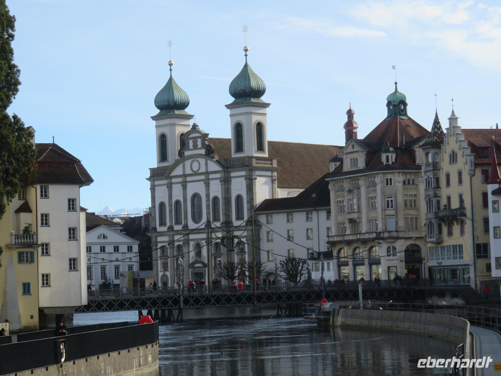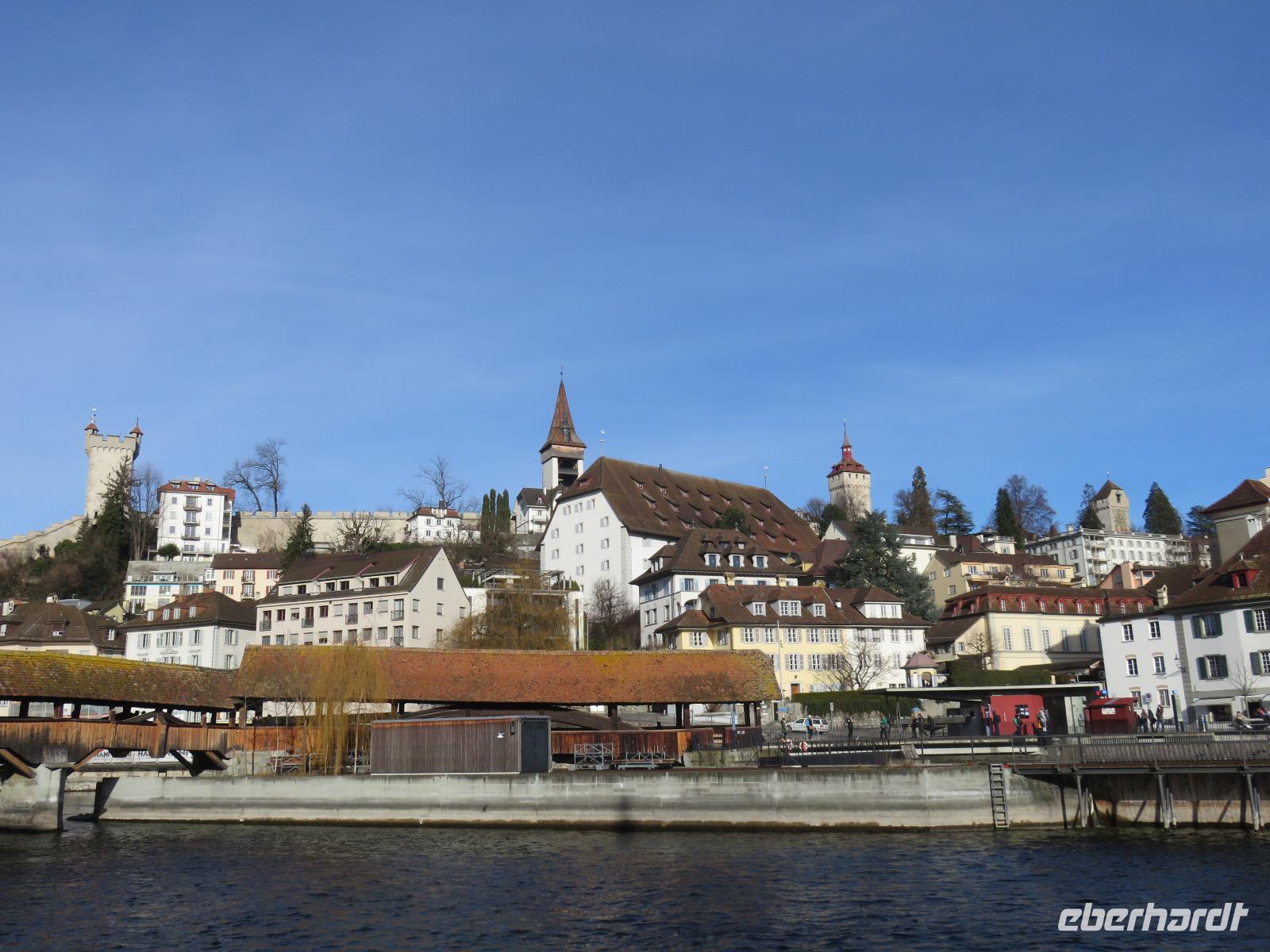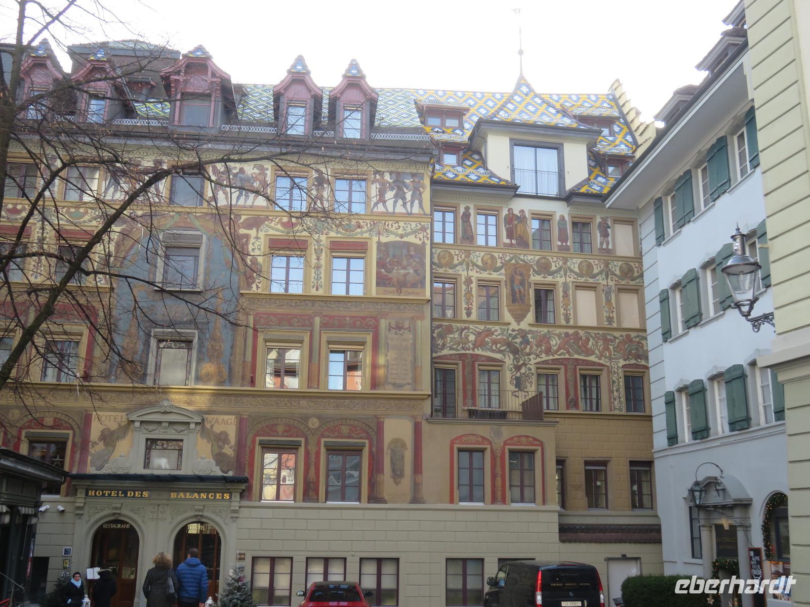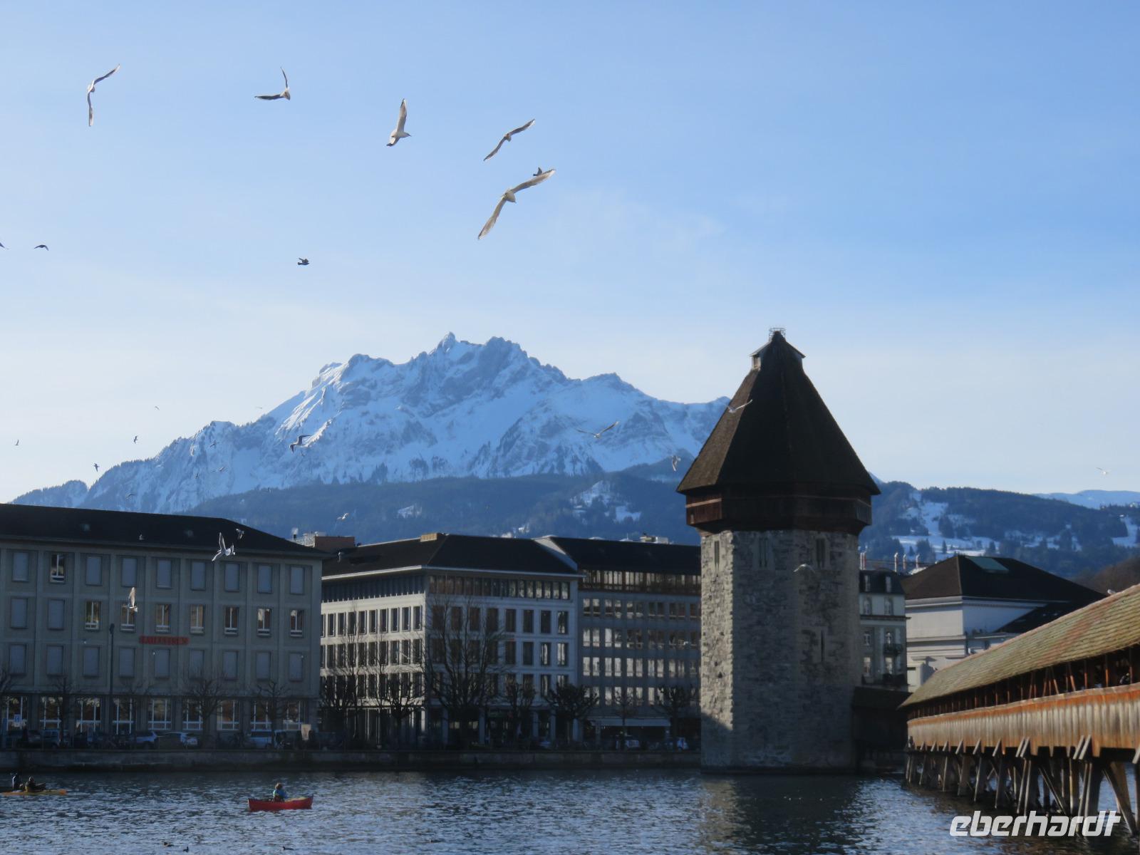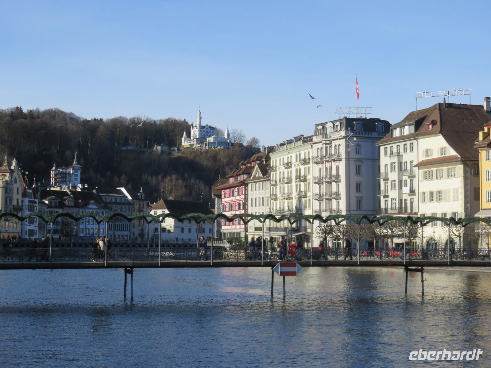 Als wir heute erwachen, begrüßt uns die Sonne. Wir beginnen gut gelaunt unseren Ausflug nach Luzern. Zunächst fahren wir vorbei am Brienzersee und durch das Haslital entlang der Aare Richtung Brünigstraße. Nun heißt es für unseren Bus wieder klettern. Die schneebedeckten Berge liegen im strahlenden Morgenlicht. Ein faszinierender Anblick der uns begeistert. Auf der anderen Seite des 1.007 Meter hohen Brünigpaßes fahren wir wieder hinab nach Lungern. Uns bietet sich ein toller Blick auf den Lungernsee. Entlang des Sarnersees geht es vorbei am Pilatus mit der steilsten Zahnradbahn der Welt und am Stanserhorn mit der Cabrio-Bahn nach Luzern. Hier erwartet uns Susy, unsere Stadtführerin. In den nächsten gut zwei Stunden führt sie uns auf ihre herzerfrischende Art durch Ihre Heimatstadt. Wir sehen zunächst das Löwendenkmal, die wunderschönen teilweise bunt bemalten Bürgerhäuser und das Wahrzeichen der Stadt, die Kapellbrücke. In der Jesuitenkirche staunen wir über die reiche Verzierung des Innenraumes und lauschen einer Probe einer Streichergruppe und der imposanten Orgel. Wir spazieren vorbei am einzigartigen Nadelwehr, welches den Wasserstand des gesamten Vierwaldstättersees reguliert. Über die Spreuerbrücke mit den jahrhunderte alten Giebelbildern laufen wir weiter durch die romantischen Gassen zum Rathaus und dem Schwanenplatz. Anschließend bleibt für alle noch genügend Zeit für individuelle Erkundungen in der Stadt. Für die Rückfahrt wählen wir die Route entlang des Nordufers des Brienzersees. Wir legen in Brienz noch einen Stopp ein. Am Nachmittag erreichen wir wieder Interlaken. Nun erwartet uns ein romantischer Fackelspaziergang. Entlang der Aare gehen wir nach Unterseen. Wir erfreuen uns an dem wunderschön weihnachtlich beleuchteten Marktplatz. Über den Höheweg, vorbei an der Höhematte mit der riesigen Ice-Magic, einer gigantische Eisbahn führt uns der Weg zurück zum Hotel. Einen erlebnisreichen Tag beenden wir wieder mit einem typisch Schweizer Abendessen.