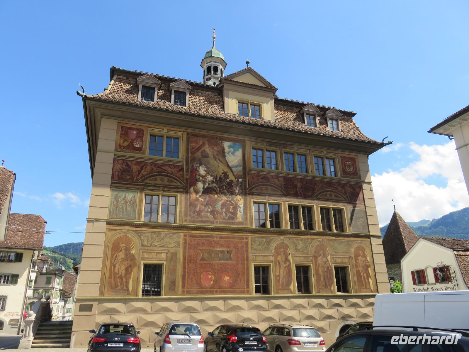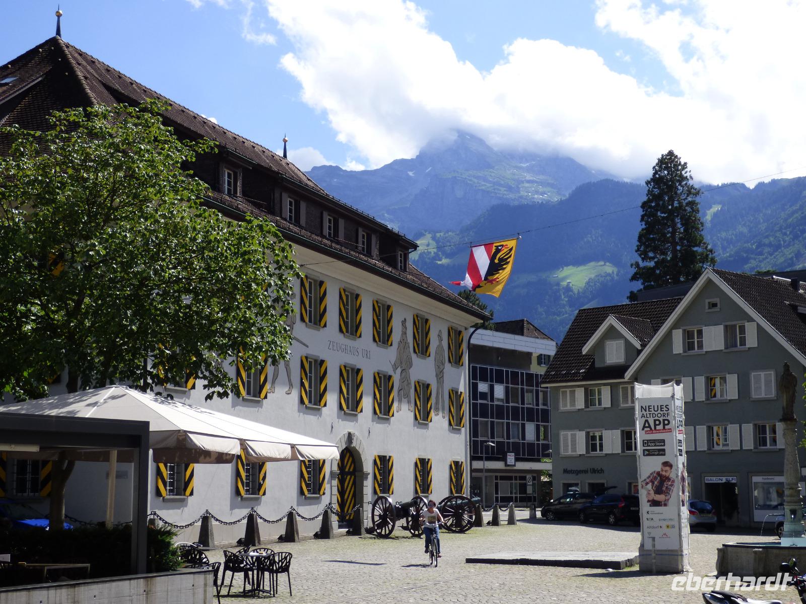 Nach einer sehr angenehmen Nacht in der völligen Ruhe der einmaligen Bergwelt genießen wir das ausgezeichnete Frühstück vom Buffet. Anschließend starten wir mit dem Bus zu unserem ersten Ausflug nach Schwyz zur Talstation der Standseilbahn auf den Stoos. Die historische Standseilbahn bringt uns zunächst auf den Stoos in 1.300 Metern Höhe. Leider begrüßt uns hier dicker Nebel. Also spazieren wir zur Talstation des Sesselliftes. Wir fahren mit dem Lift zunächst durch die Wolken auf 1.922 Meter Höhe zum Fronalpstock. Hier oben reißen die dicken Wolken dann doch immer wieder auf und wir genießen vom imposanten Aussichtspunkt einen herrlichen Blick über den Vierwaldstättersee mit den ihn umgebenden unzählige Berggipfel. Wir sehen senkrecht hinunter nach Brunnen und zum Rütli , der kleinen Wiese, wo 1291 durch den Rütlischwur die Schweiz gegründet wurde. An den berühmten Dichter erinnert der Schillerstein am Urnersee. Wir haben genügend Zeit und wandern über den schönen Panorama-Spazierweg. Wir sehen unzählige herrliche Bergblumen, wie die Teufelskralle, das Kabenkraut oder Enzian in der wunderschönen Natur. Im Bergrestaurant wird uns anschließend ein schmackhaftes Mittagessen serviert. Es gibt ein typisches Schweizer Bergbauerngericht - die Älplermagraonen. Kartoffeln und Makkaroni werden gemeinsam gekocht und mit einer gehaltvollen Sauce aus Käse und Sahne vermengt. Mit Röstzwiebeln und Apfelmus verfeinert, ist es ein sehr gehaltvolles Gericht. Anschließend fahren wir mit dem Lift zunächst auf den Stoos zurück. Hier unternehmen wir noch einen kurzen Abstecher zur Baustelle der neuen Standseilbahn. Mit der alten Standseilbahn geht es wieder zur Talstation, wo uns Evjigeni mit dem Bus erwartet. Wir fahren nach Schwyz und legen einen klurzen Fotostopp am Rathausplatz ein. Anschließend bringt uns der Bus nach Altdorf. Wir spazieren durch den Ort mit dem Tellspielhaus und dem Tell-Denkmals vor dem mittelalterlichen Wohnturm. Einighe besteigen den Turm und genießen die Aussicht. Am späten Nachmittag kehren wir nach Flüeli-Ranft zurück.