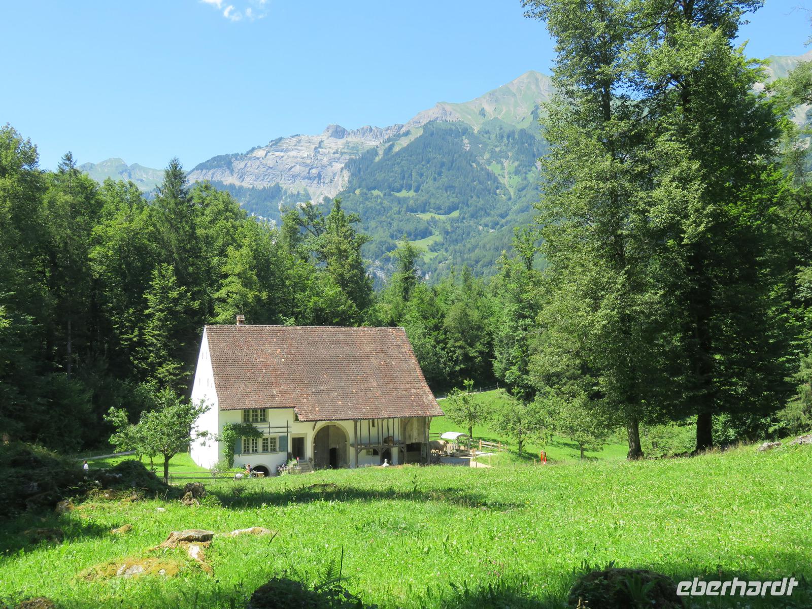 Am Morgen verlassen wir Flüeli-Ranft und das gastfreundliche Hotel Paxmontana. Wir reisen über den Brünigpass in das Berner Oberland. Unterwegs legen wir einen Stopp am Aussichtspunkt hoch über dem Lungernsee ein. Wir genießen die Aussicht in die Berge und über den See. Anschließend besuchen wir das Schweizerische Freilichtmuseum Ballenberg. In der großzügigen Anlage kann man an einem Tag in über 90 originalen, jahrhundertealten Gebäude aus alle Landesteilen die Schweiz erleben. Wir werden von Hans durch die historischen Häuser des Berner Oberlandes geführt. Sehr anschaulich erklärt er uns das Leben vergangener Zeiten und alte Handwerkstechniken in den verschiedenen Häusern und Höfen. In den, nach alten Vorlagen angelegten Gärten und Feldern, entdecken wir eine Vielzahl einheimischer Haus- und Hoftiere in ihrer natürlichen Umgebung. Wir erfahren Sie interessante Details vom schweren Leben der Bauern in der Vergangenheit. Wir schauen der Spinnerin, die diese Handwerkskunst noch ganz traditionell ausführt, über die Schulter. In der Bäckerei wird im Holzofen Brot gebacken. Die leckeren Ballenberg-Würste hängen im Spitzdach eines Hauses im Buchenrauch zum Räuchern. Nach der Führung stärken wir uns im Gasthaus „Alter Bär" bei einem schmackhaften Mittagessen. Nun beliebt noch Zeit, um ganz gemütlich individuell in den Häusern zu schauen und zu staunen. Am Nachmittag fahren wir entlang des Nordufers des Brienzer Sees nach Interlaken. Im Hotel Carlton-Europe werden wir bereits erwartet. Ein schöner Tag geht mit dem Abendessen auf der Terrasse des Hotels mit Blick auf die Jungfrau zu Ende.