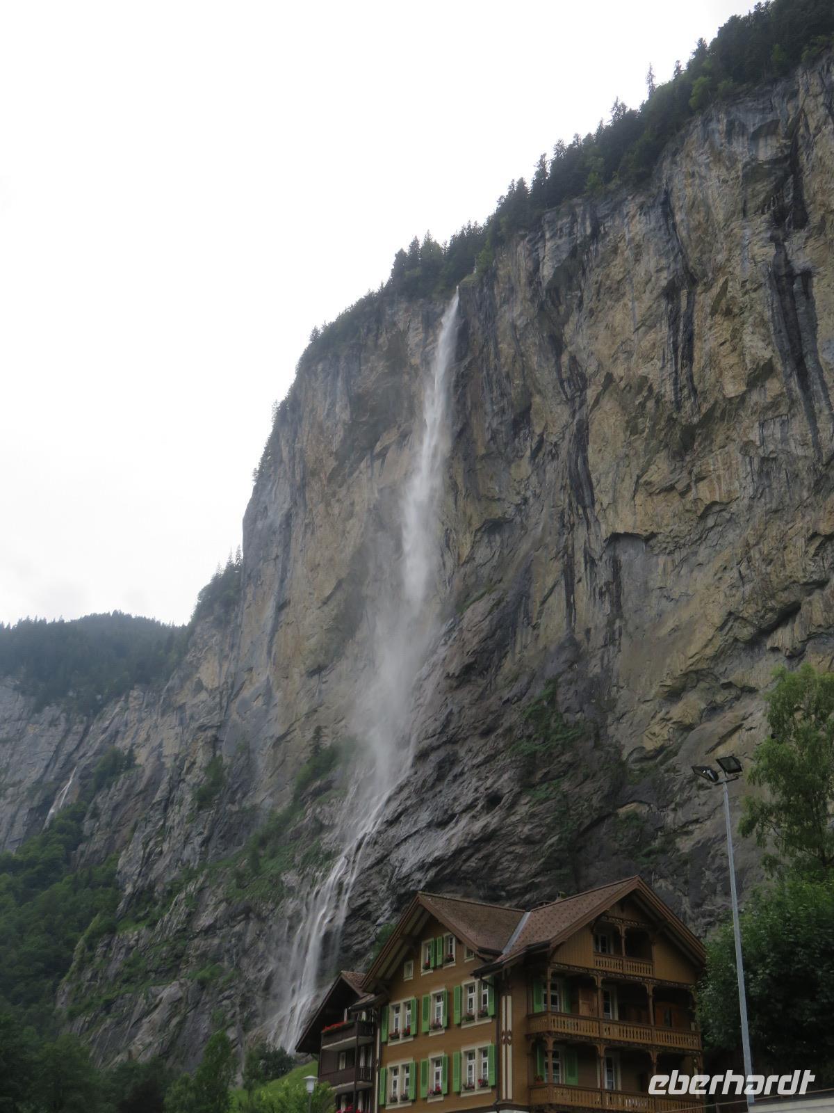 Am Morgen geht es mit dem Bus ins Lauterbrunnental nach Stechelberg. Das Schilthorn ist heute unser Ziel. Auf 2.970 Metern Höhe bringt uns die imposante Fahrt mit 4 Seilbahnen von Stechelberg auf das Schilthorn. Auf der Stecke von Gimmelwald nach Mürren passieren wir eine Strecke von 2.700 Metern, auf der die Bahn ohne Mast frei hängt. Während der Bergfahrt legen wir eine Pause auf Birg auf 2.677 Metern Höhe ein. Wir besuchen den Skywalk - eine Aussichtsplattform aus Glas und Gittern hoch über dem Abgrund mit einem einmaligen Blick auf Eiger, Mönch und Jungfrau. Leider ist der Thrillwalk geschlossen. Direkt an der Felswand über dem Abgrund verspricht dieser Steg aus Glasböden, Gitterplattformen und Seilen eigentlich Nervenkitzel pur. Von Birg bringt uns eine weitere spektakuläre Kabinenbahn auf einer Länge von 1.800 Metern über eine Höhendifferenz von 300 Metern frei hängend ohne Stütze auf das Schilthorn. Seit der James-Bond-Film Im Geheimdienst Ihrer Majestät 1968 auf dem Berg gedreht wurde, hat dieser auch den Beinamen Piz Gloria. In der James-Bond-World und auf dem Walk auf Fame können wir viele Details der Dreharbeiten und zu den Schauspielern des Filmes erfahren. Wir erleben noch das einzigartige 360°-Panorama vom Mont Blanc zum Schwarzwald, von den Berner Alpen ins Mittelland und dazu eine grandiose Aussicht auf Eiger, Mönch und Jungfrau, bevor sich die Wolken zusammenziehen. Nach der Talfahrt, erreichen wir das berühmte Staubachtal mit seinen vielen Wasserfällen. Wir haben noch genug Zeit, also besuchen wir noch die Trümmelbach-Wasserfälle. 10 unterirdische Wasserfälle die durch die Gletscher rund um Eiger, Mönch und Jungfrau gespeist werden donnern in die Tiefe. Wir fahren zunächst bis zur Mitte der Wasserfälle mit dem Schrägaufzug. Weiter steigen wir hinauf zu den oberen Wasserfällen. Beeindruckende Felsformationen mit großen Strudeltöpfen hat das Wasser geschaffen. Jeder der 10 Wasserfälle ist beeindruckend. 20.000 Liter Wasser pro Sekunde donnern ins Tal. Wir sind uns einig, das war ein lohnender Besuch. Am Nachmittag haben wir in Interlaken noch genügend Zeit zum Bummeln und Entspannen.