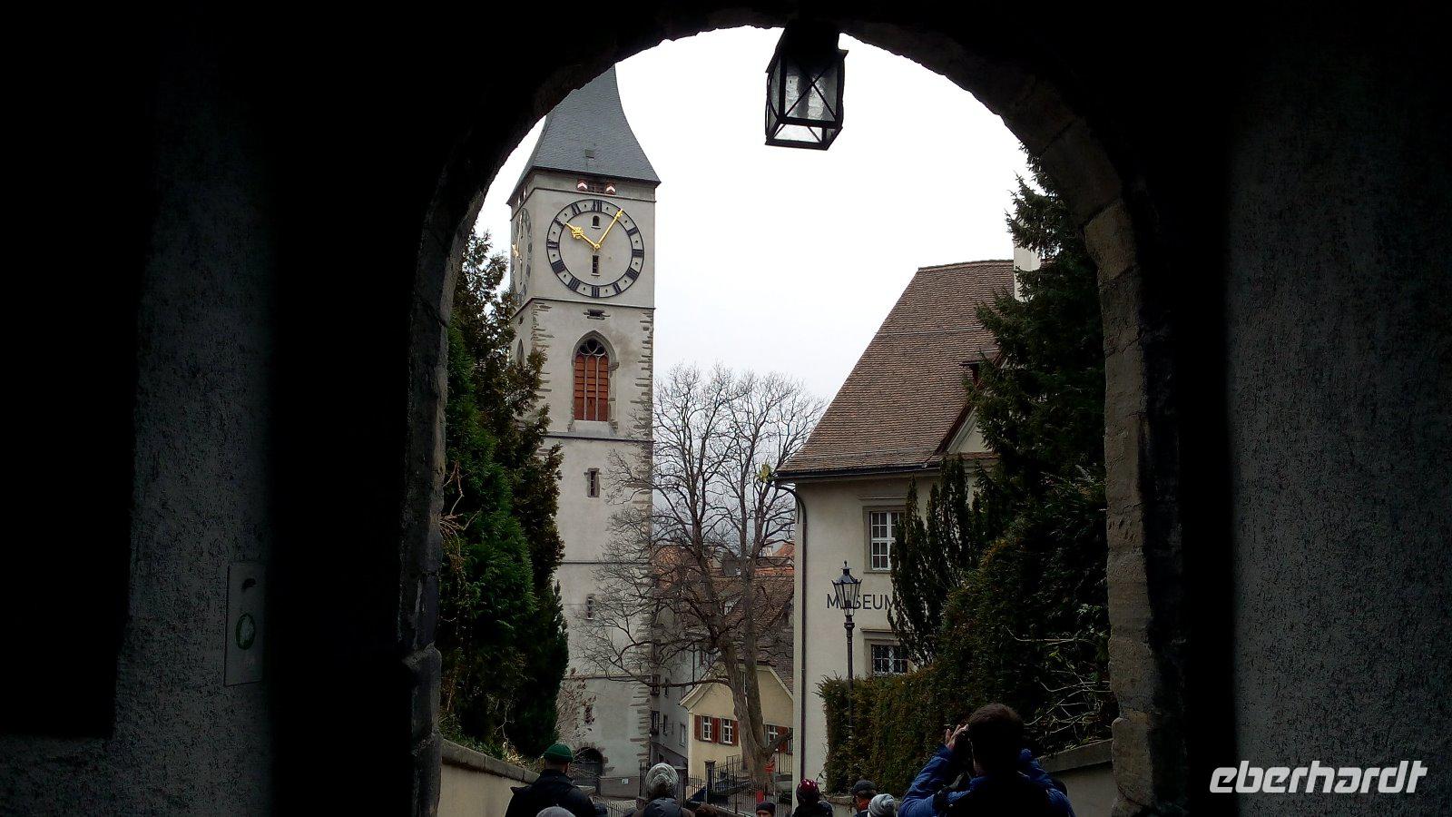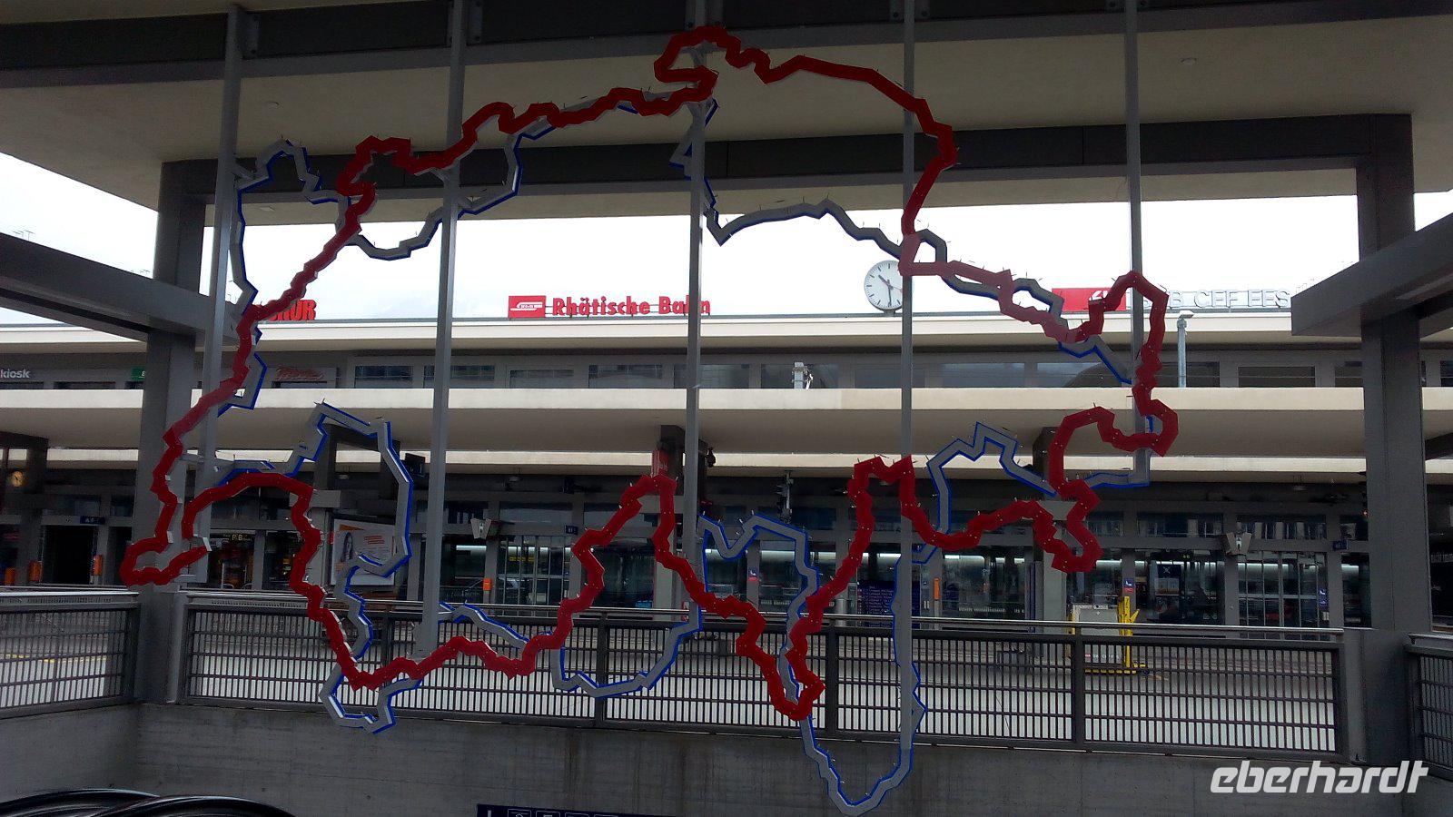 Heute starten wir schon ziemlich zeitig. Unsere erste Bahnfahrt steht heute auf dem Programm. Doch zuvor ist schon für 9.00 Uhr die Stadtführung in Chur geplant. Es läuft nicht alles ganz glatt und wir haben noch Zeit auf dem Marienplatz in der Drogerie den Rötli, ein typischer Graubündner Likör zu kosten. An der Kathedrale treffen wir dann auf unseren Stadtführer. Der uns in der Kathedrale St.Maria Himmelfahrt führt. Wir sehen den wohl schönsten Flügelaltar der Schweizer Spätgotik. Unser Stadtführer vermittelt uns die Geschichte und die Bedeutung der ältesten Stadt der Schweiz sehr anschaulich. Unser Spaziergang führt uns von der Kathedrale zur Kirche St. Martin und über den Platz in die Reichsgasse. Am Rathaus angekommen gibt uns unser Stadtführer noch ein Ständchen in der Gewölbehalle und überzeugt mit seiner guten Stimme. Am Bündner Kunstmuseum vorbei gelangen wir zum Bahnhof. Eine Stadt, die viel zu bieten hat und ein weiterer Besuch notwendig ist, um die einst mächtige Bischofsstadt noch besser kennenzulernen.Vor dem Bahnhof von Chur startet unser Arosa Express und in Erwartung auf die Fahrt wissen wir natürlich, dass auf der Strecke von Chur nach Arosa ein Viadukt der besonderen Art auf uns wartet.