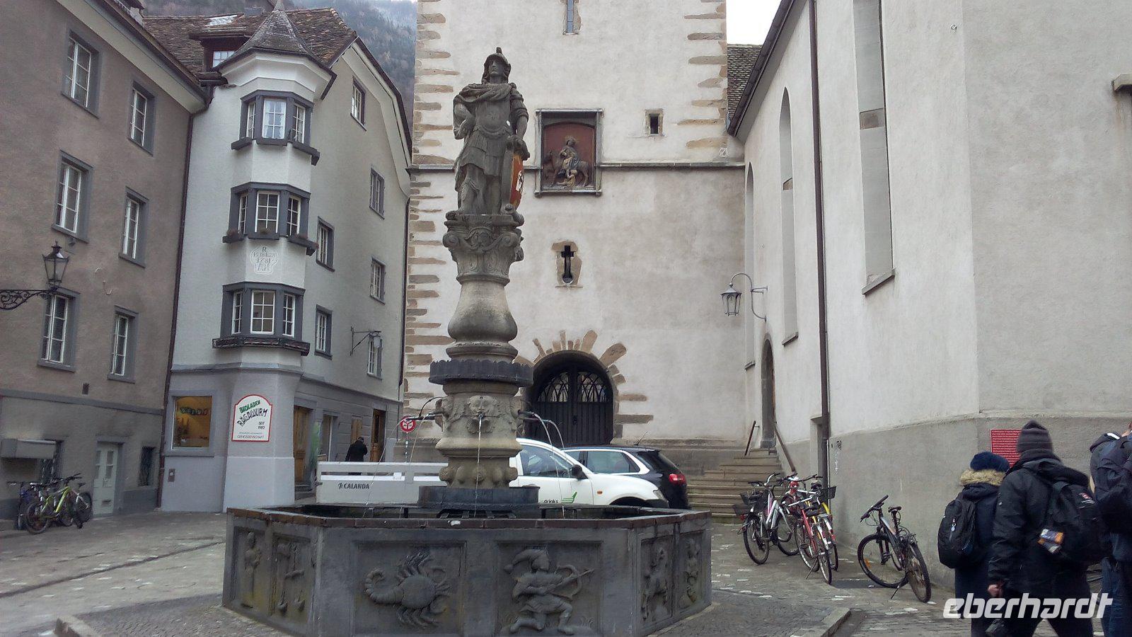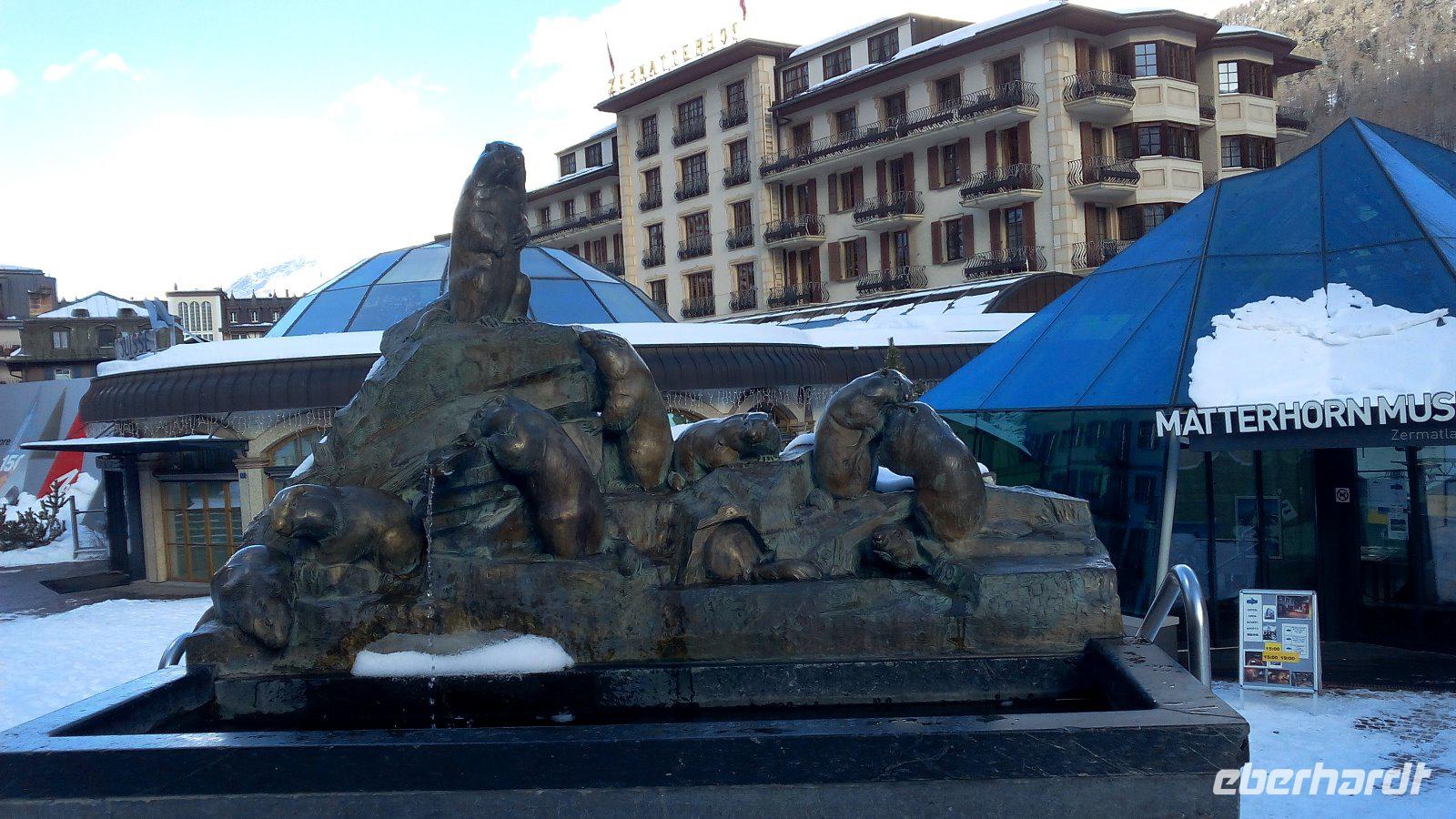 Weiter geht es zum Markt mit dem reizvollen Murmeltierbrunnen, dem Museum und der Kirche St. Mauritius und Bergsteigerfriedhof.