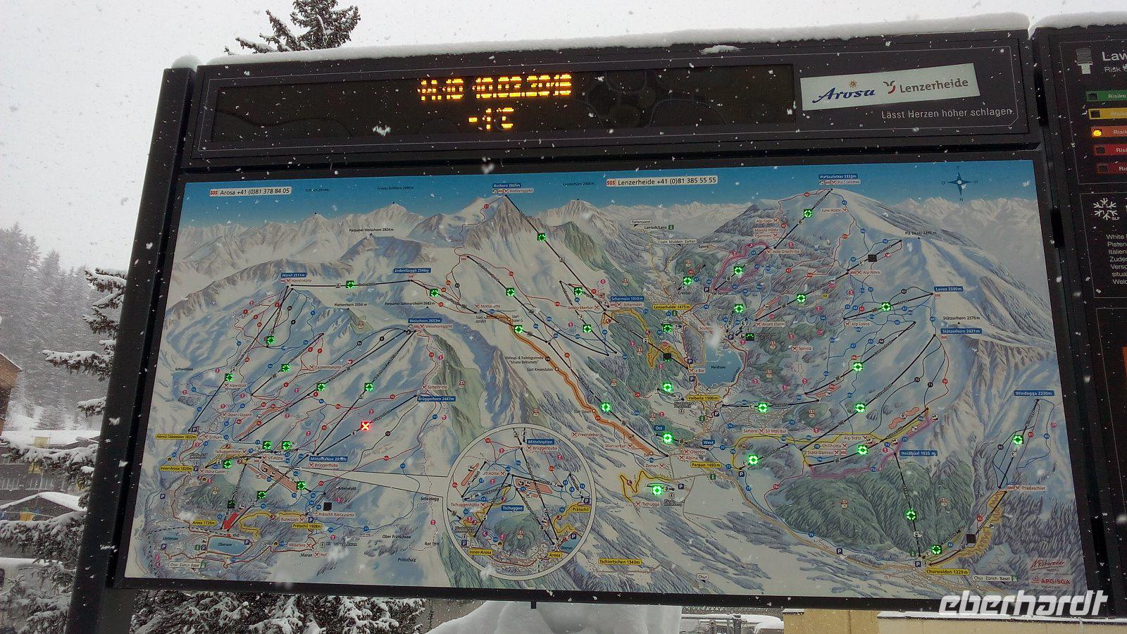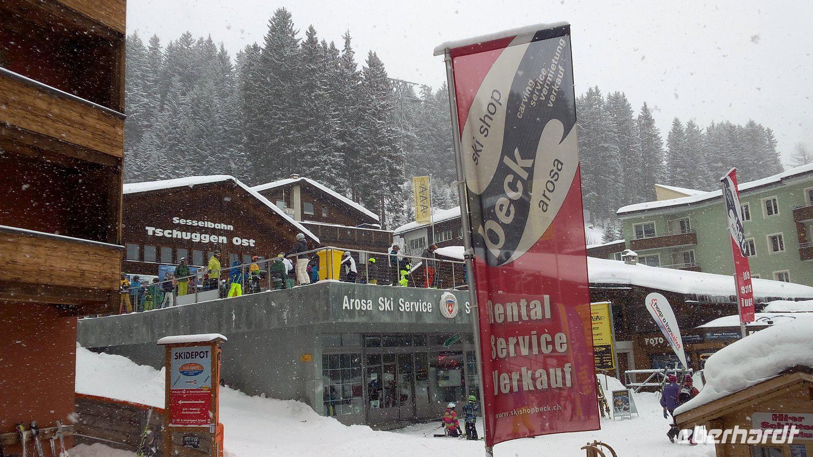 Nach rund einer Stunde Fahrzeit sind wir in Arosa angekommen. Bei Schneeflockenwirbel haben wir mehrere Möglichkeiten unsere Zeit zu gestalten. Ein Teil der Gruppe fährt