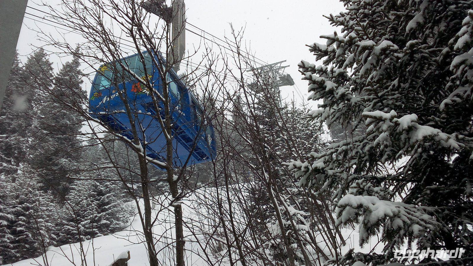 mit der Gondel auf das 2512 m hohe Weisshorn.