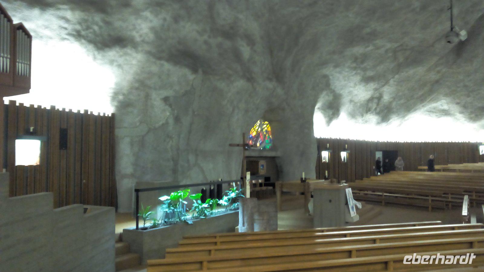 Mit 500 Sitzplätzen ist die Michaelskirche das größte Gotteshaus der Neuzeit, das sich vollumfänglich im Felseninnern befindet. Dieser architektonische Wurf ist einmalig, zumal hier Schönheit und Zweckmäßigkeit, Natur und Kultur, Tradition und Moderne in Harmonie vereint sind. Danach führt uns unsere Strecke
